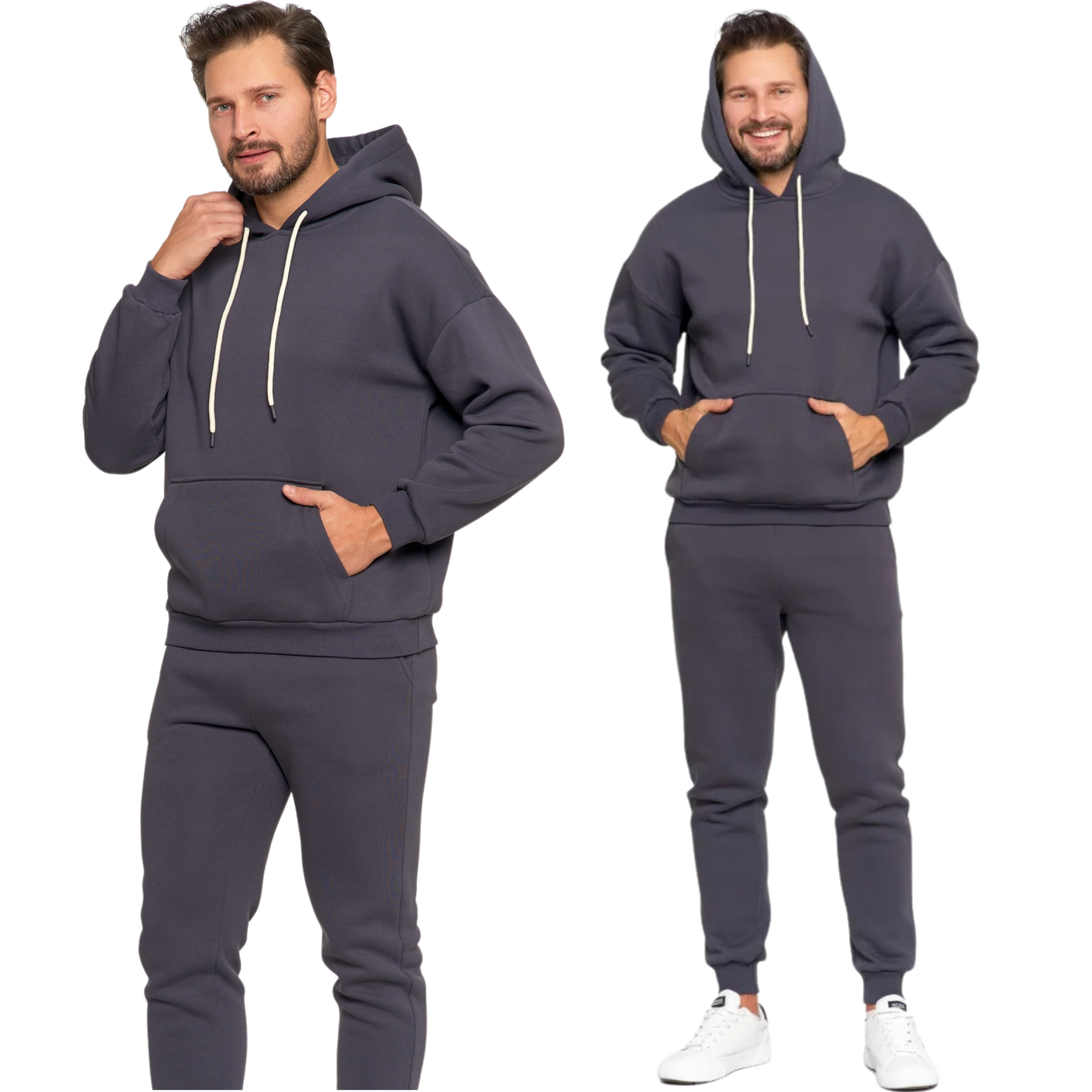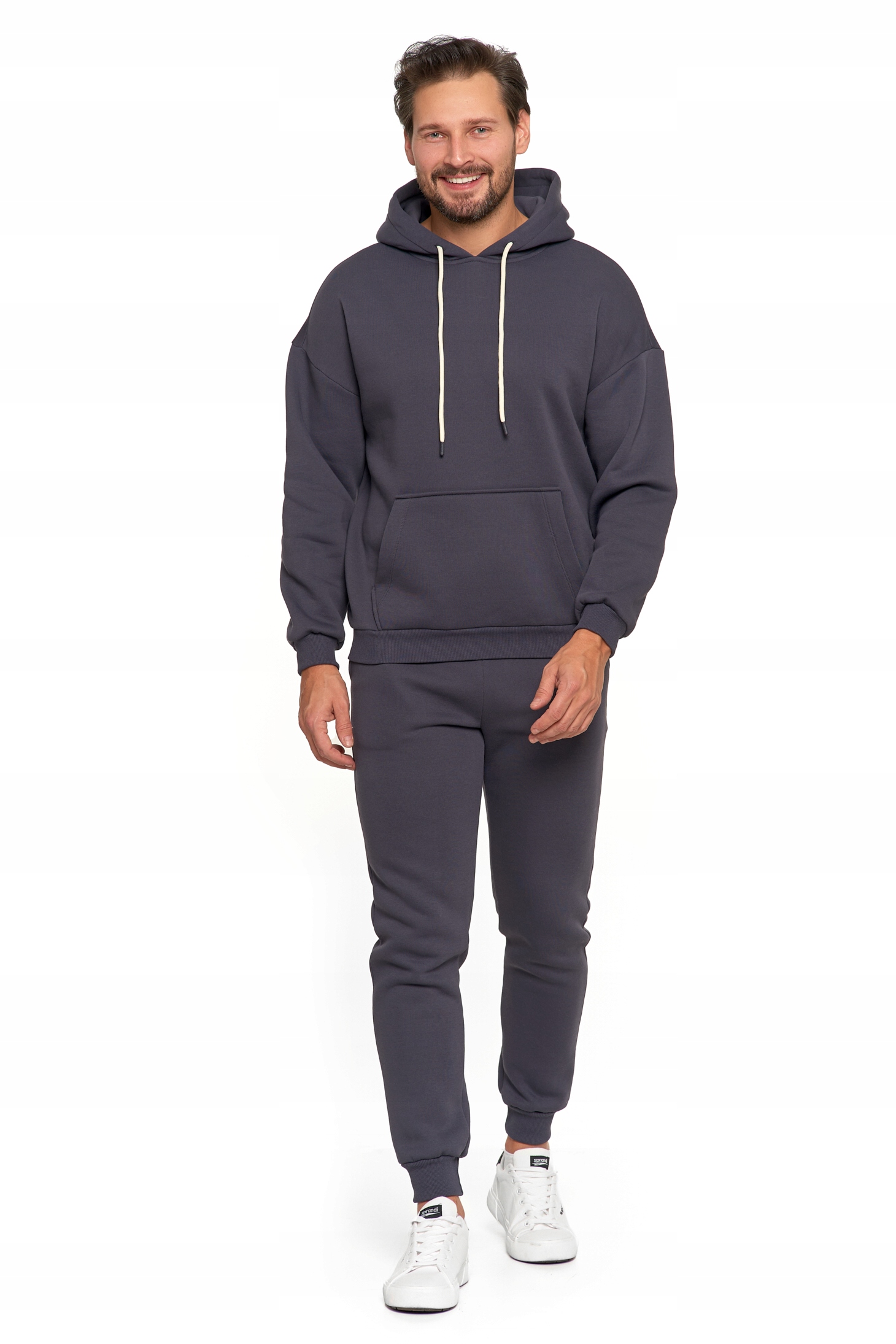 Komplet dresowy męski w kolorze grafitowym to idealny wybór dla mężczyzn, którzy cenią sobie wygodę i styl. Komplet idealnie sprawdzi się zarówno podczas codziennych aktywności, jak i w trakcie relaksu w domu. Zestaw zawiera: