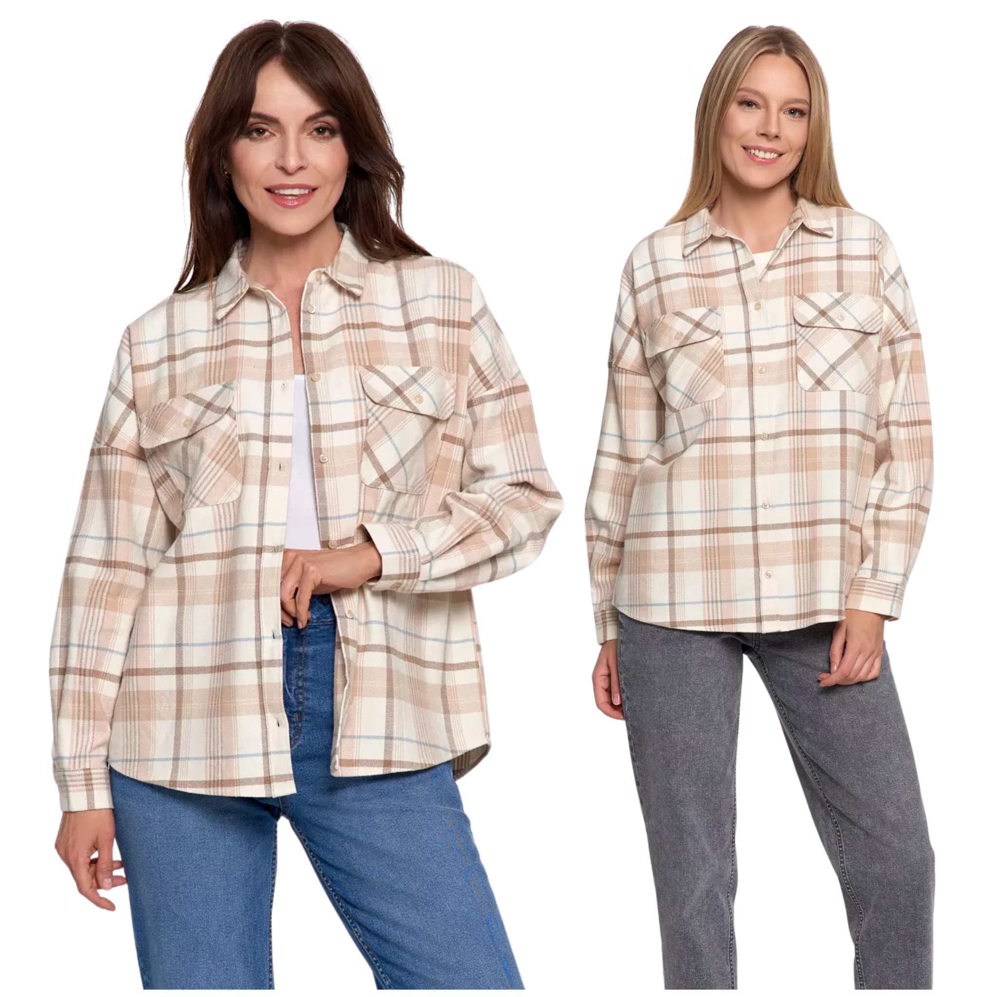 KOSZULA DAMSKA FLANELOWA BAWEŁNIANA W KRATĘ MODNA MIĘKKA MORAJ