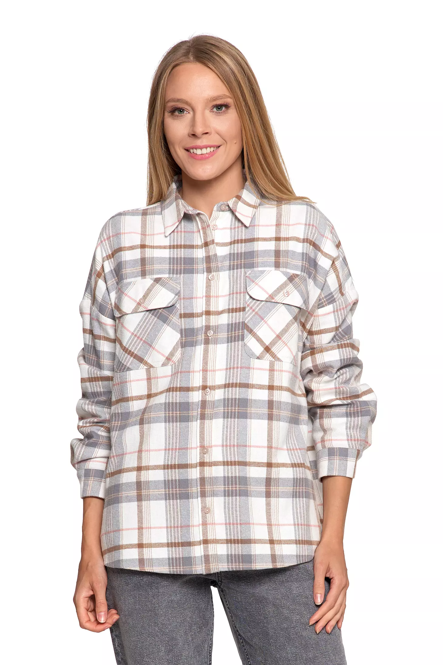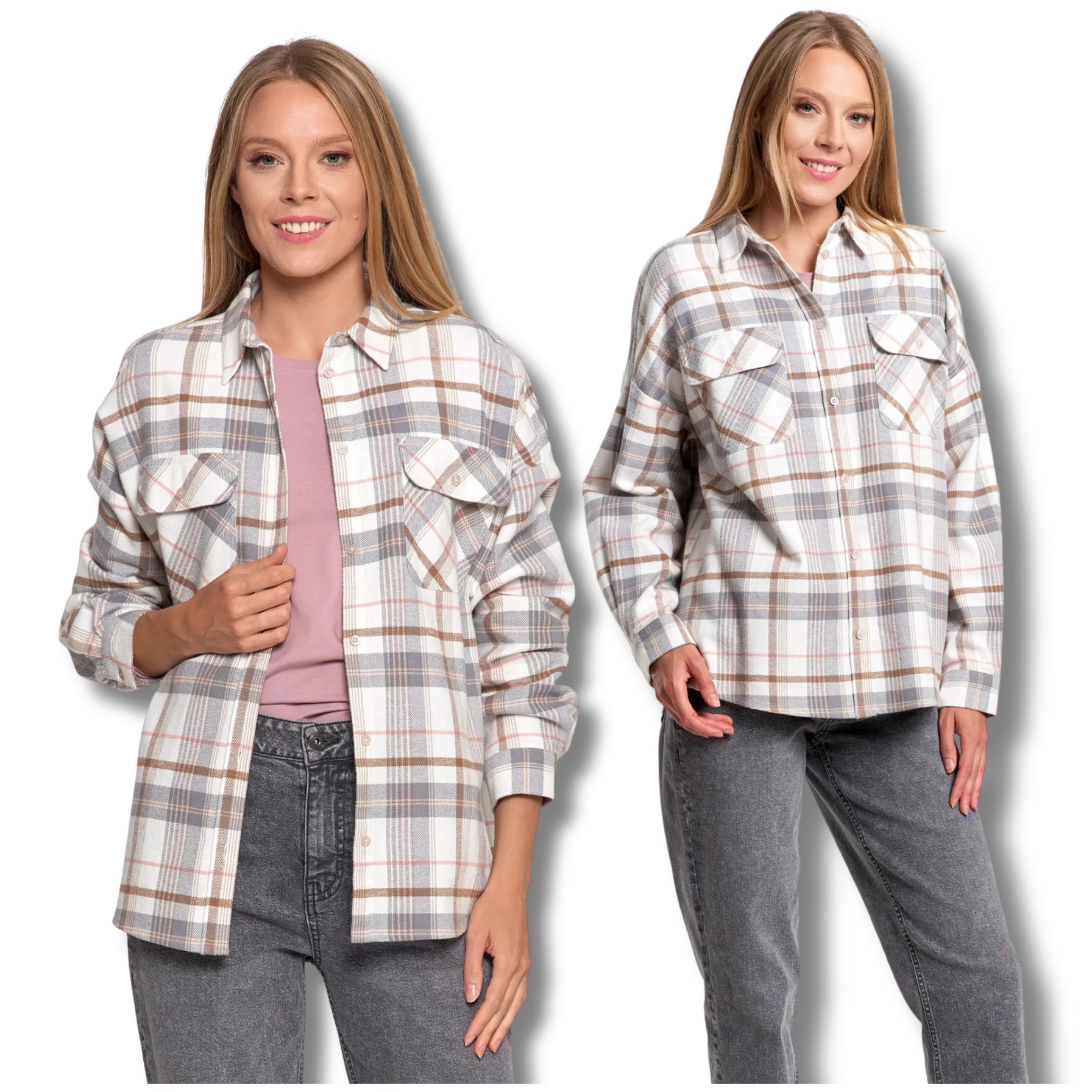 KOSZULA DAMSKA FLANELOWA BAWEŁNIANA W KRATĘ MODNA MIĘKKA MORAJ