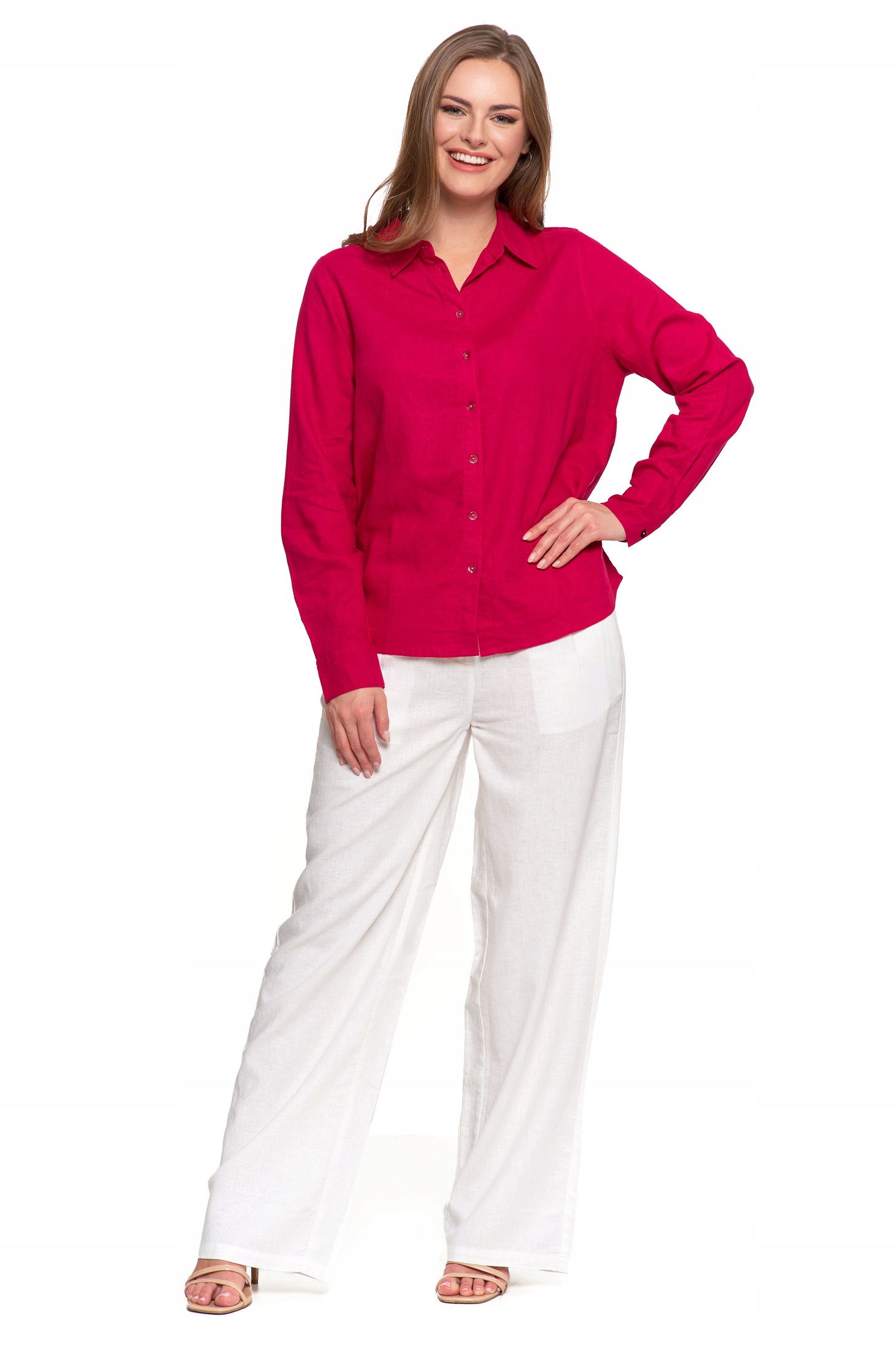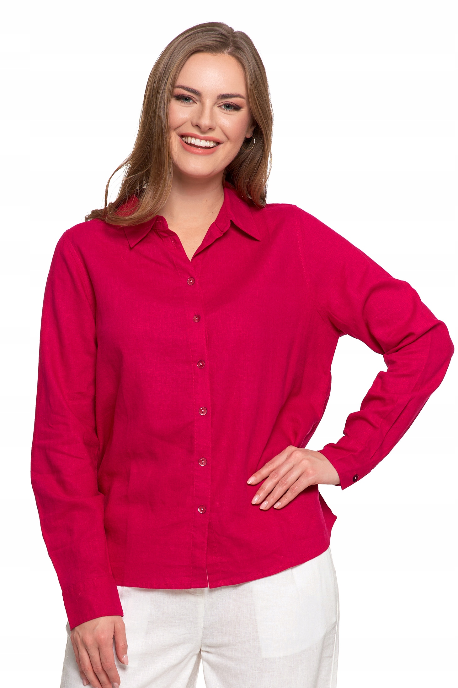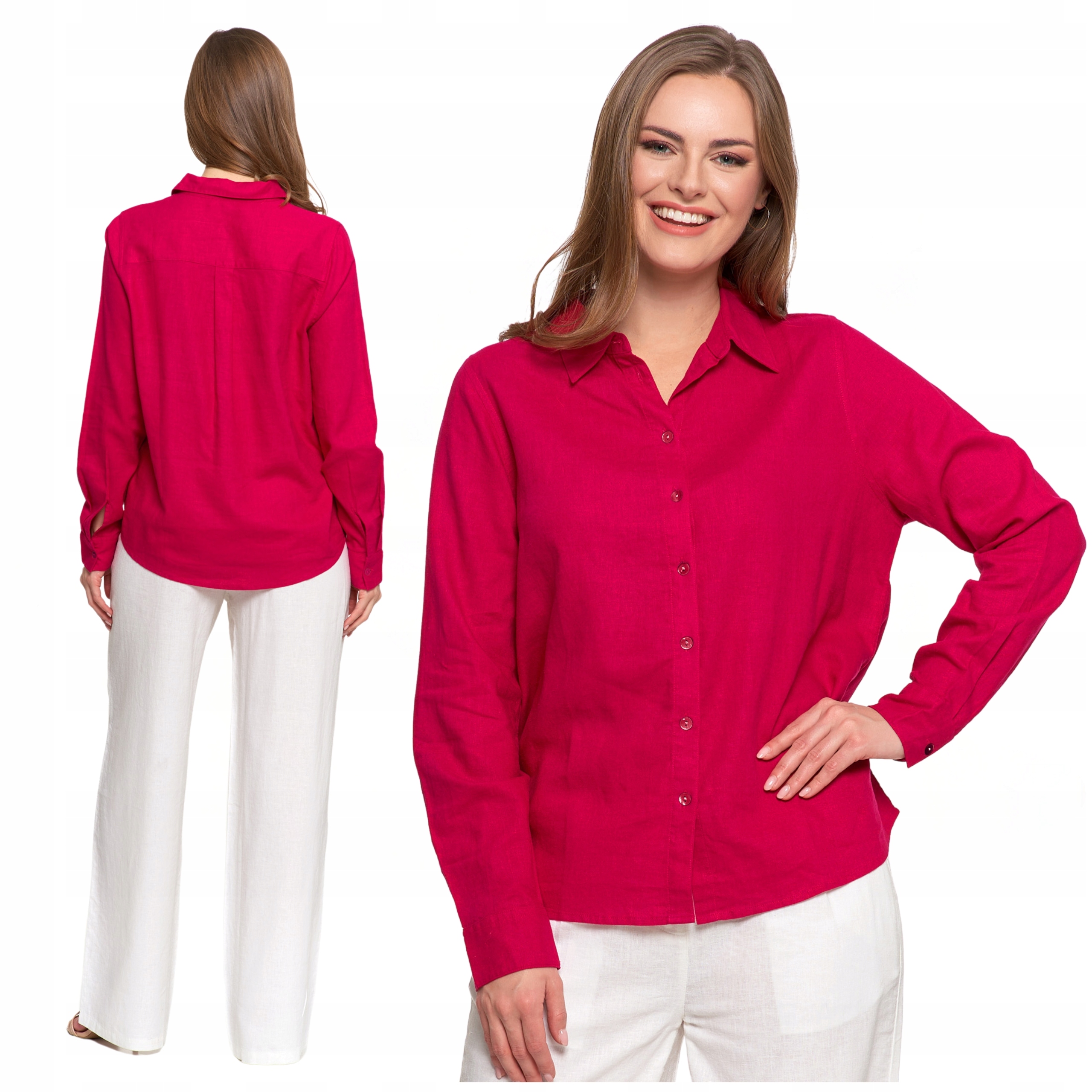 Koszula Damska Lniana Rozpinana z Długim Rękawem Gładka Przewiewna MORAJ