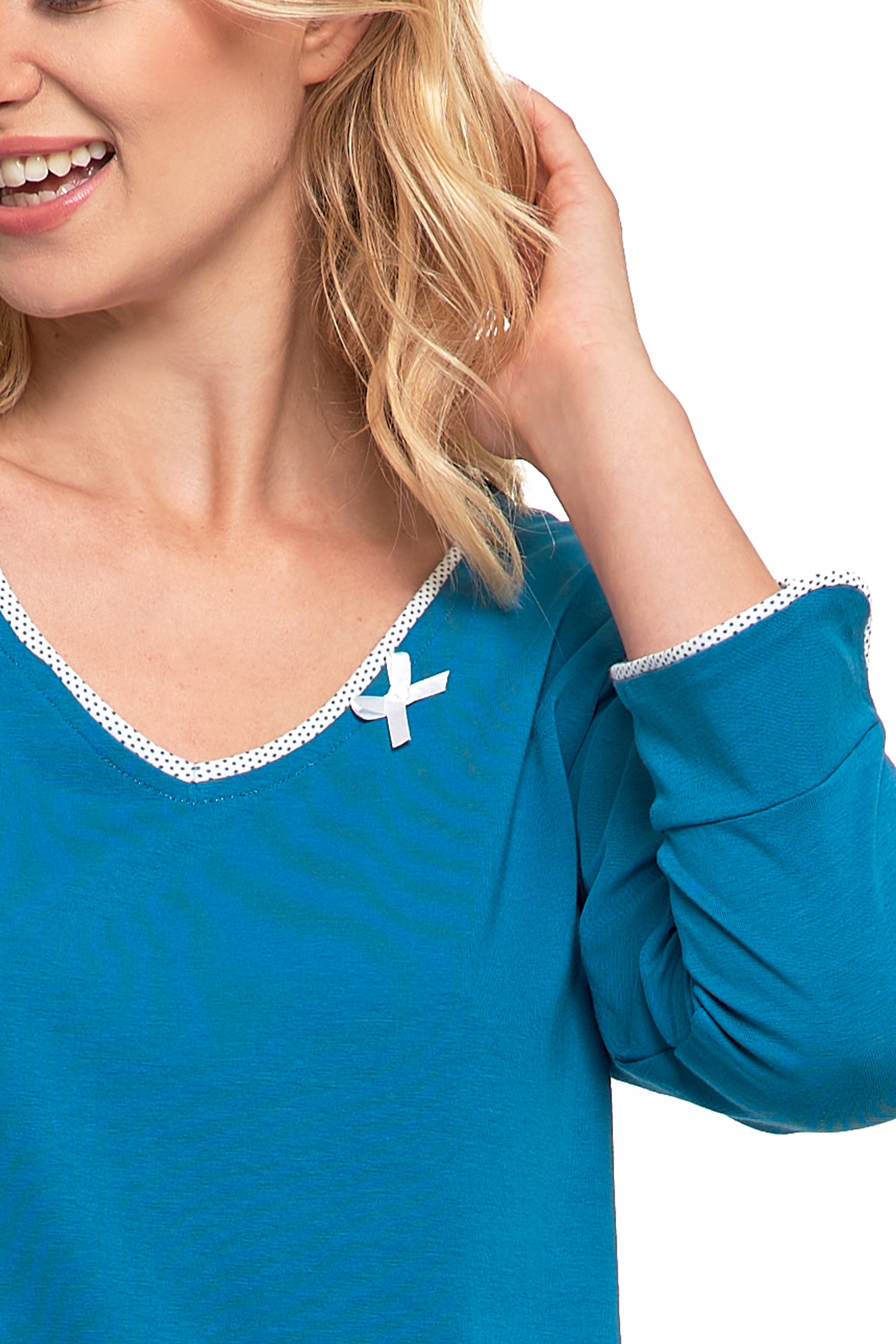 Koszula Damska Nocna Piżama z Kokardką Niebieska Gładka Bawełniana MORAJ