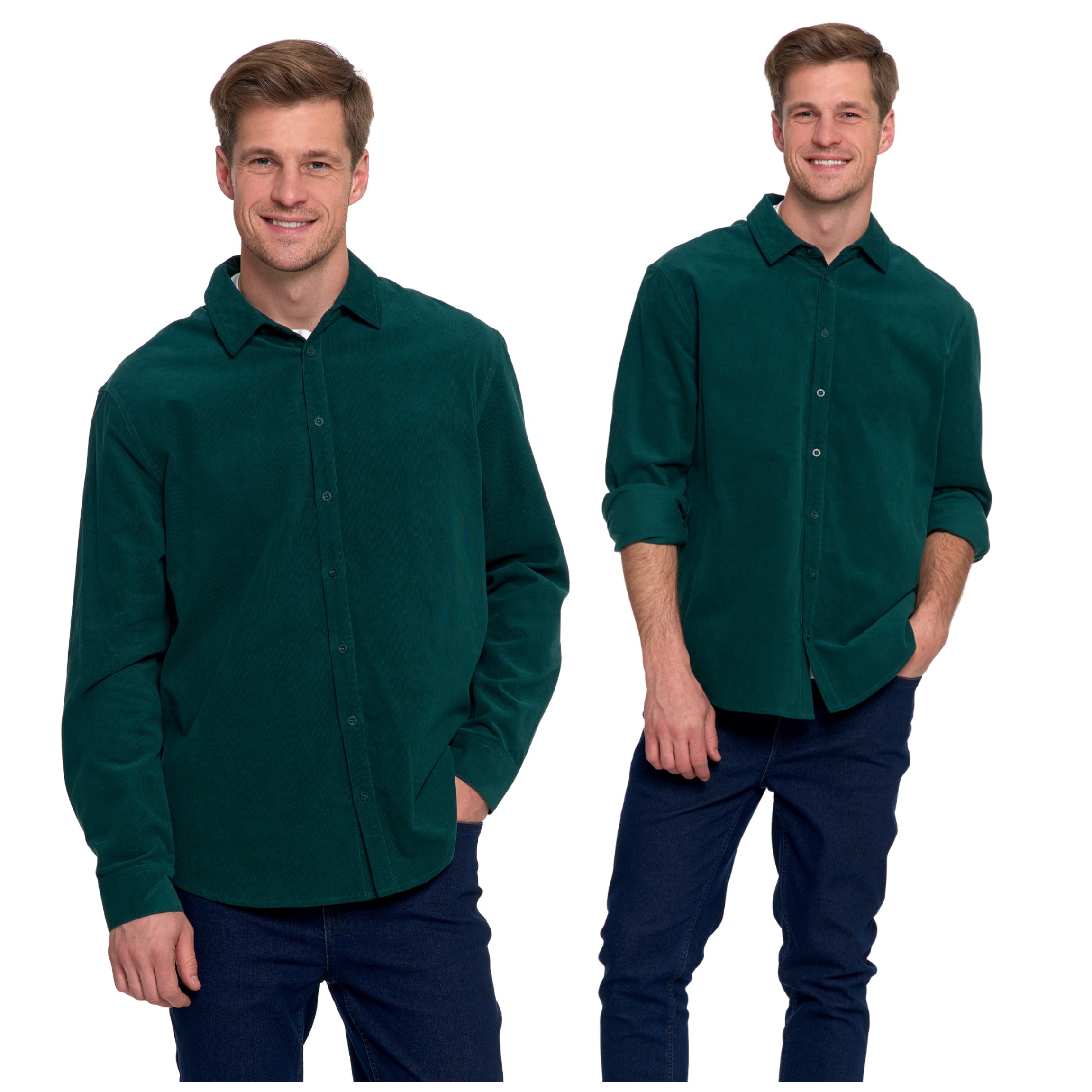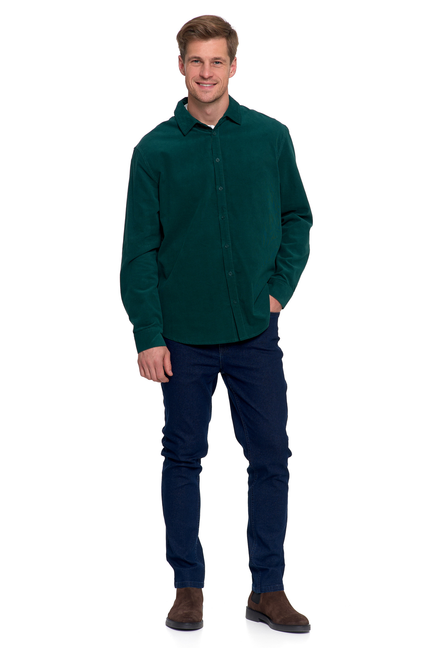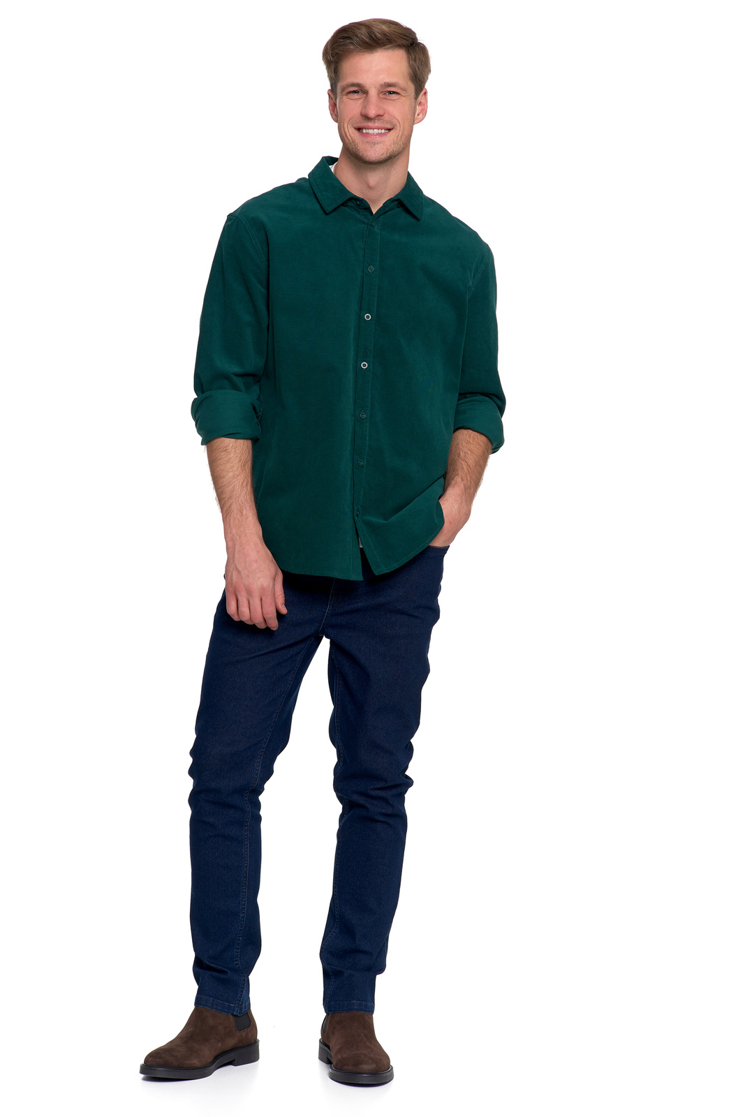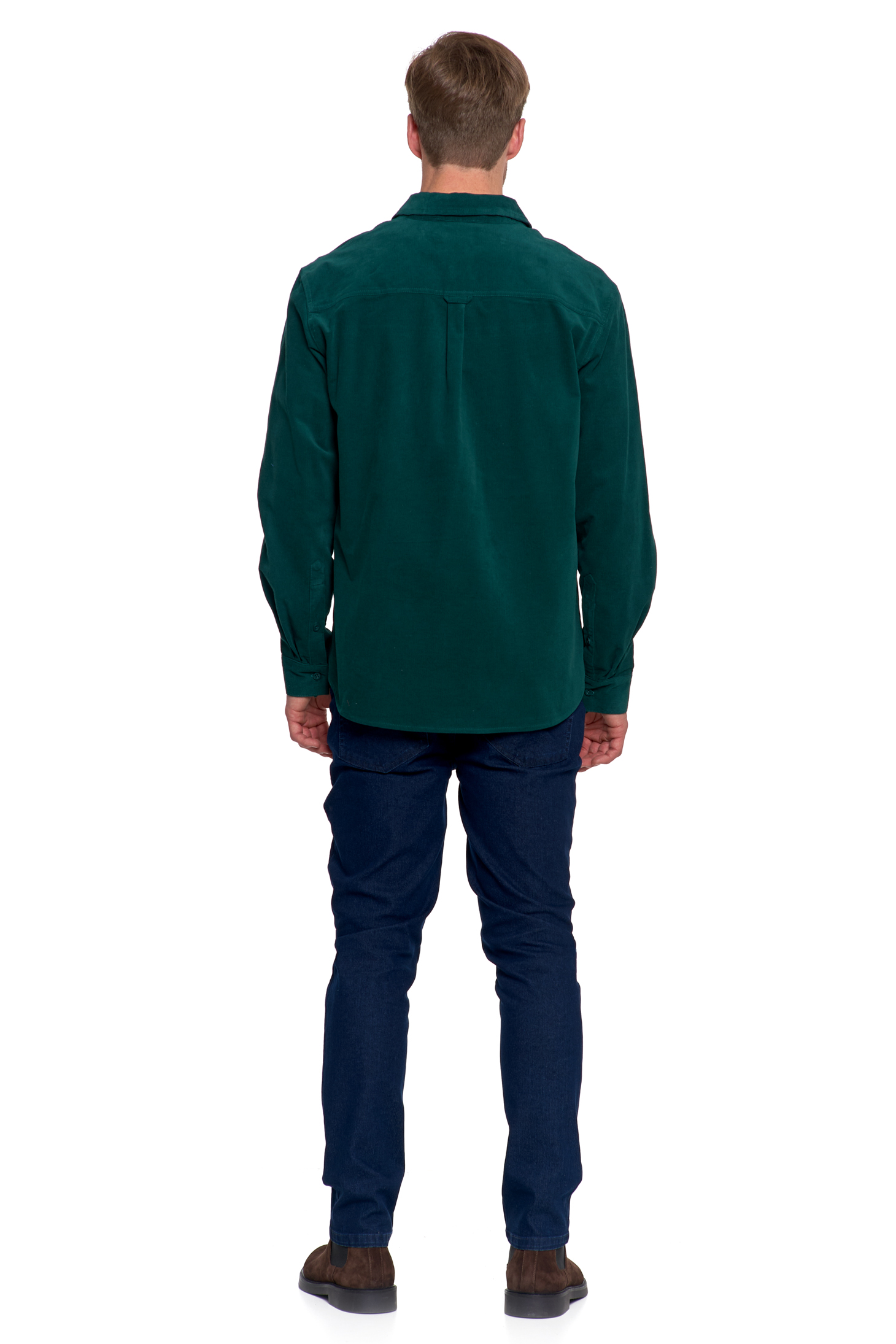 • Faktura: Charakterystyczna, delikatnie prążkowana struktura sztruksu nadaje koszuli wyjątkowego, ponadczasowego charakteru.