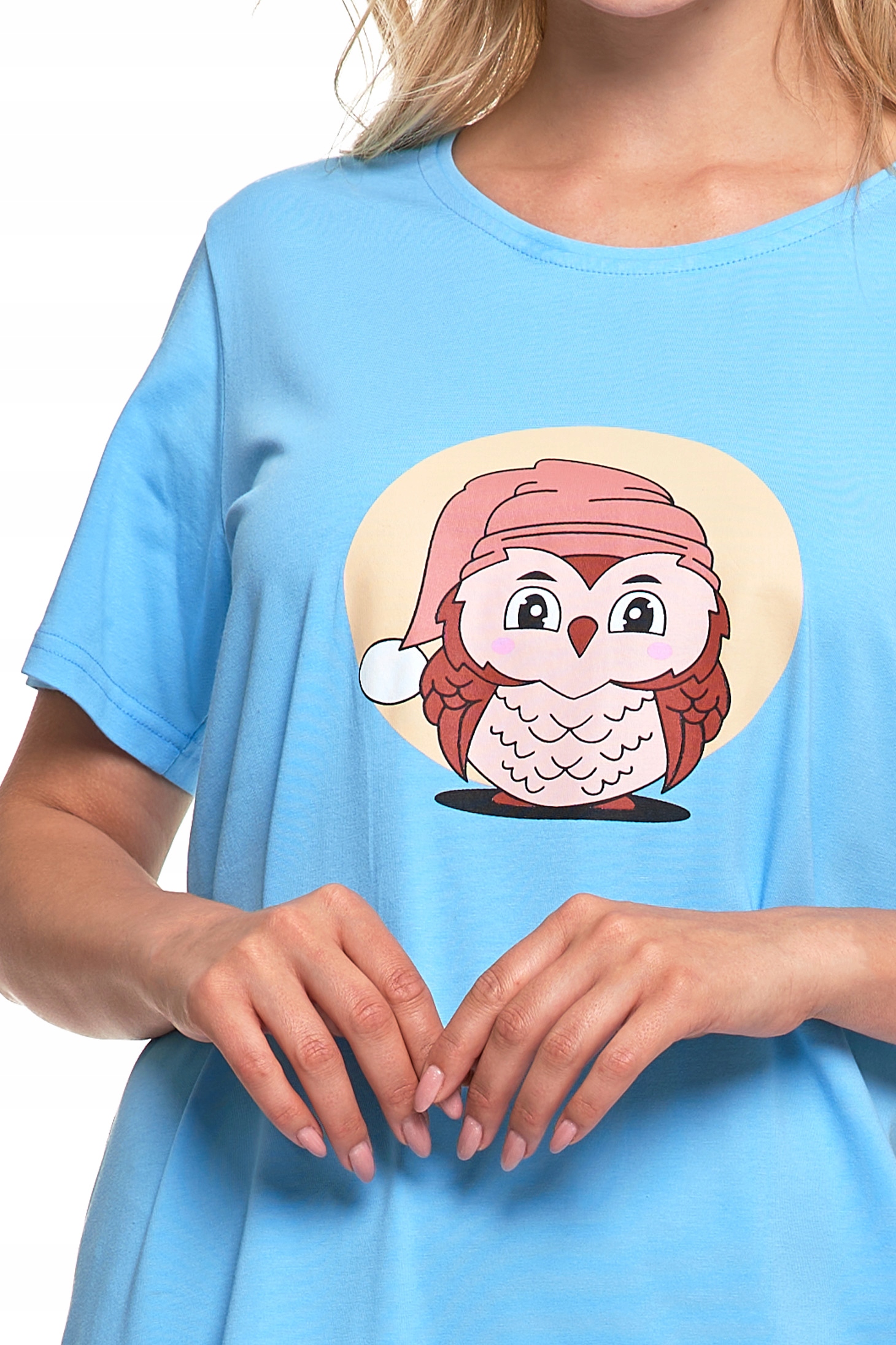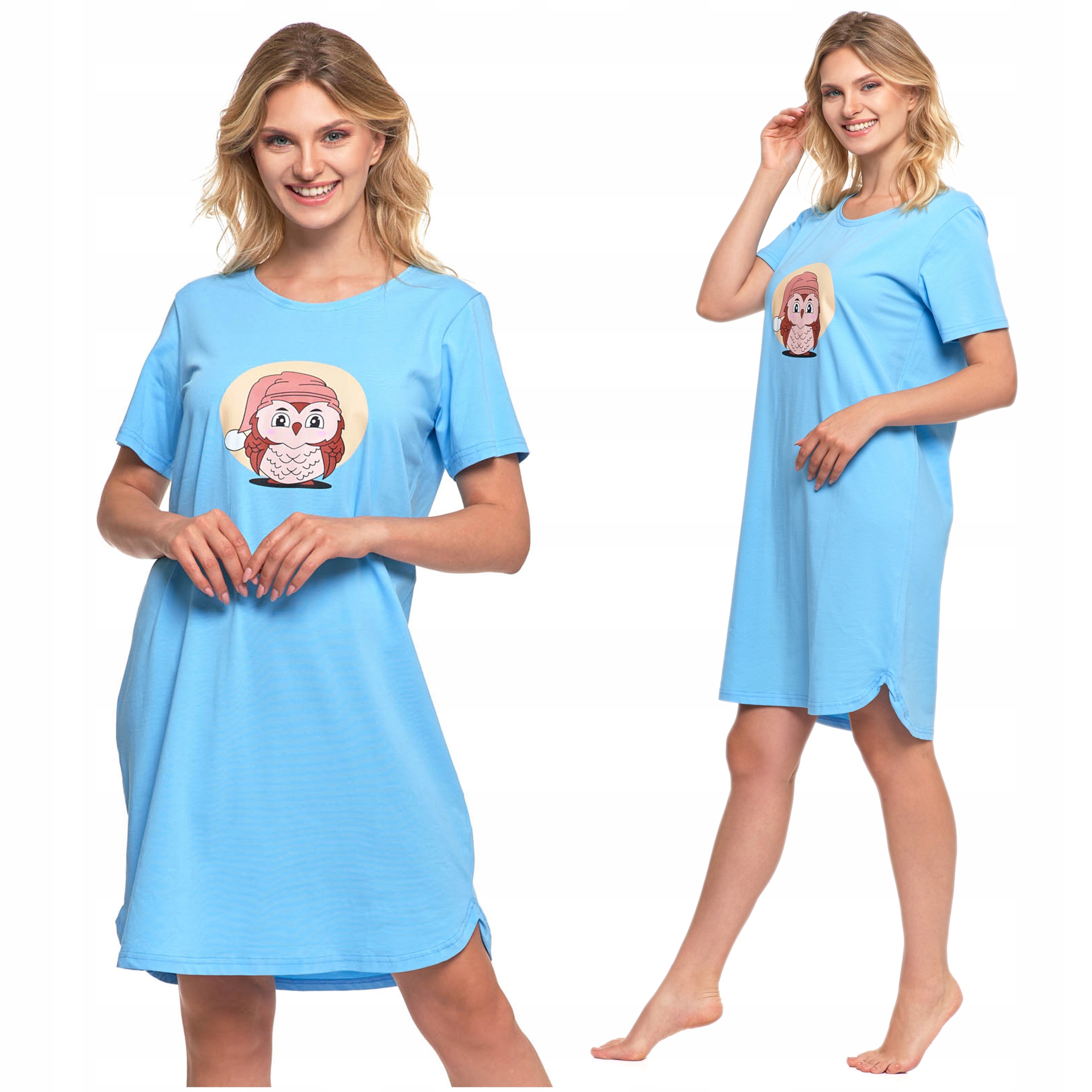 KOSZULA NOCNA DAMSKA Krótki Rękaw Bawełniana Wygodna Urocza Sowa MORAJ