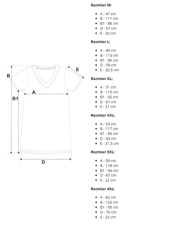 - Swobodny krój, zapewniający pełną wygodę i swobodę ruchów.