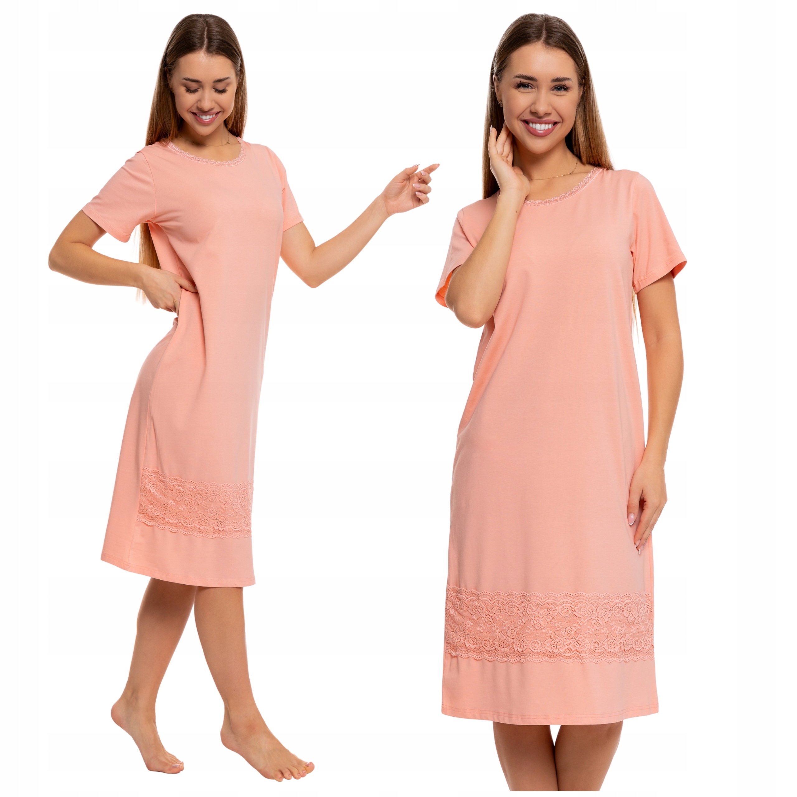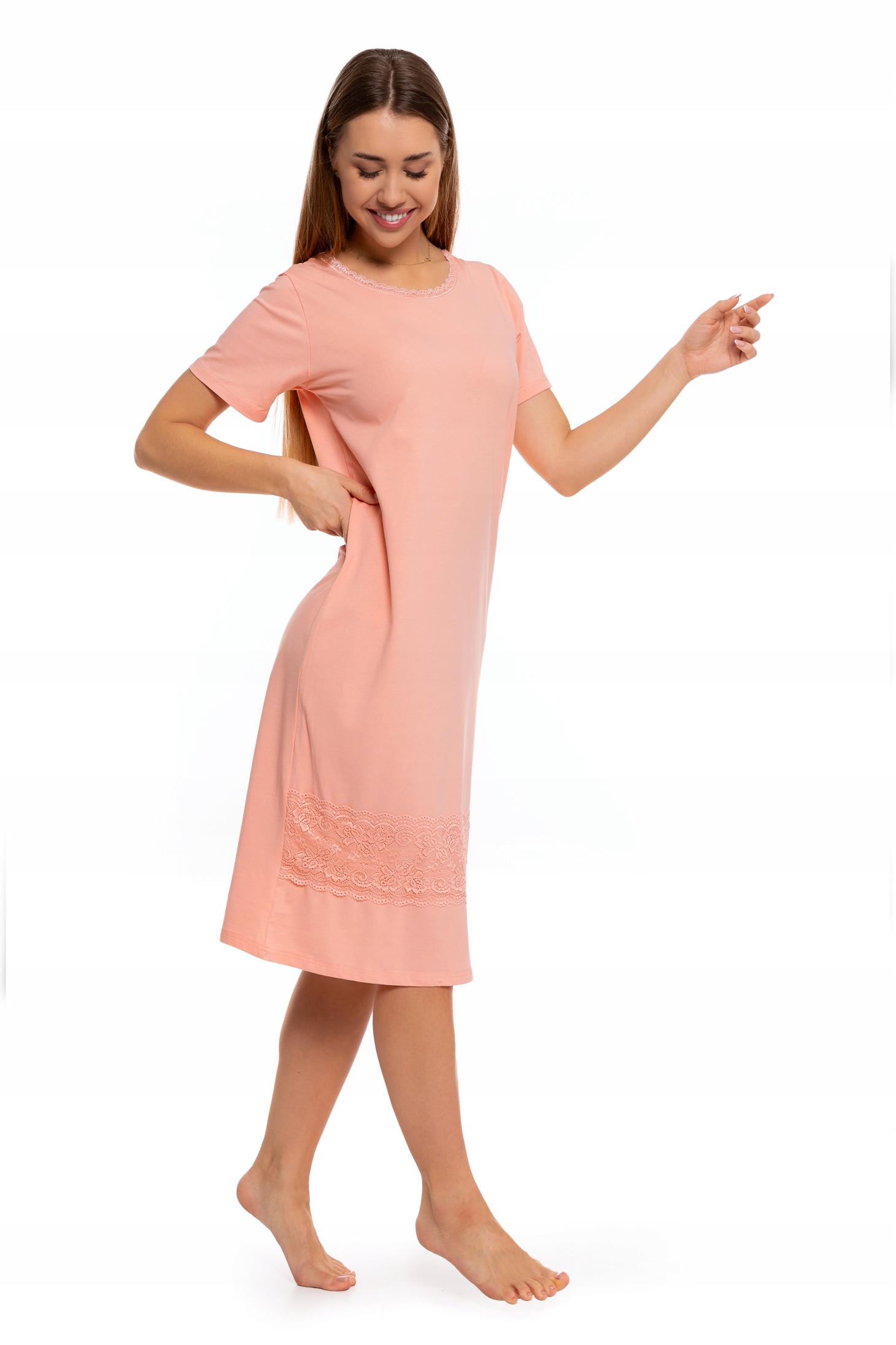 KOSZULA NOCNA DAMSKA MORAJ Piżama z krótkim rękawem bawełniana z koronką