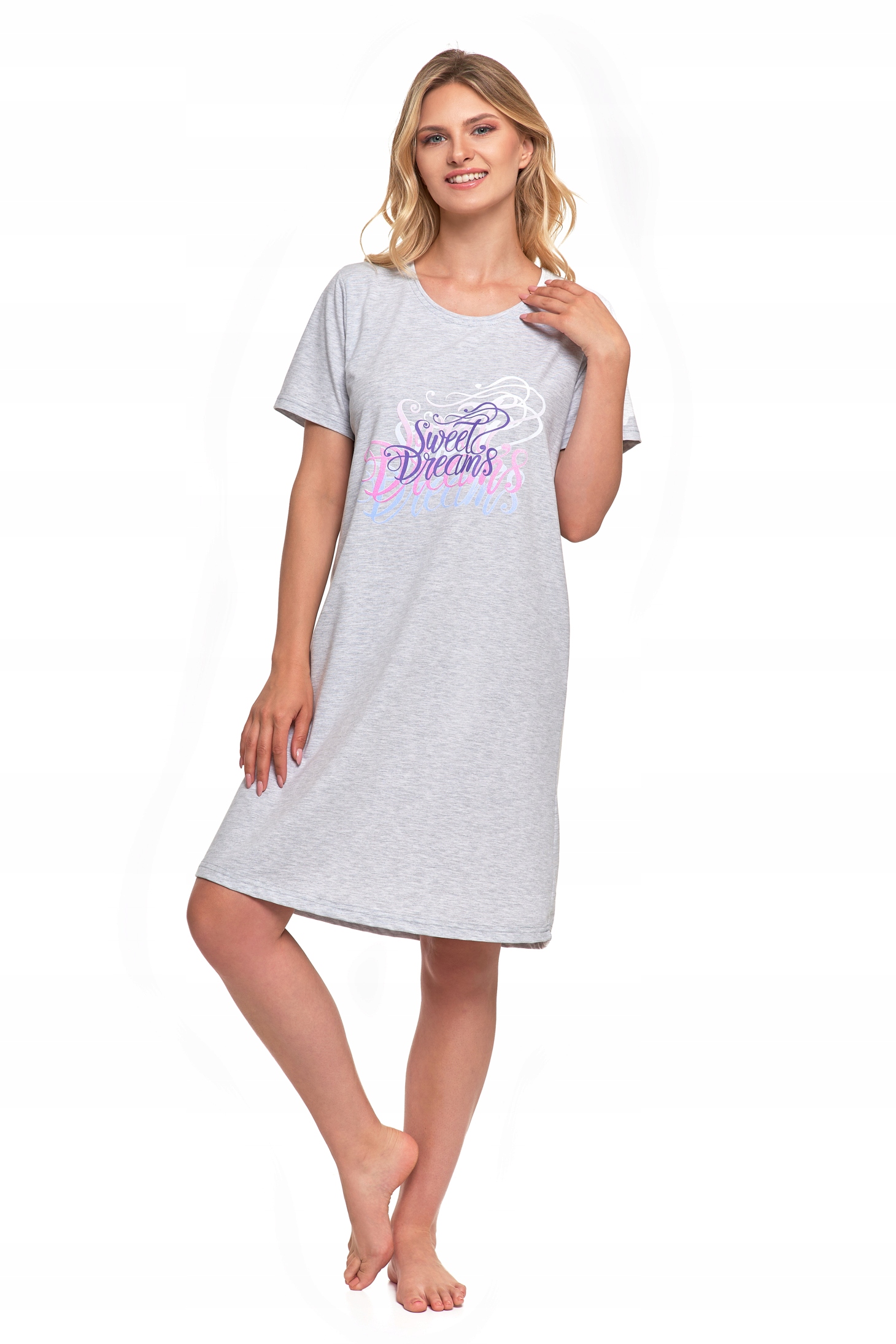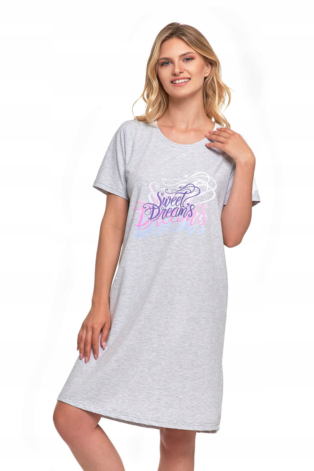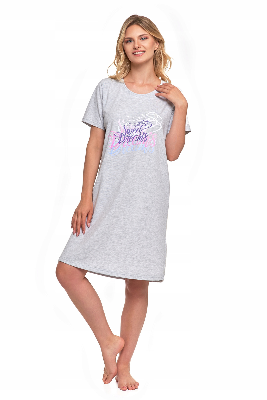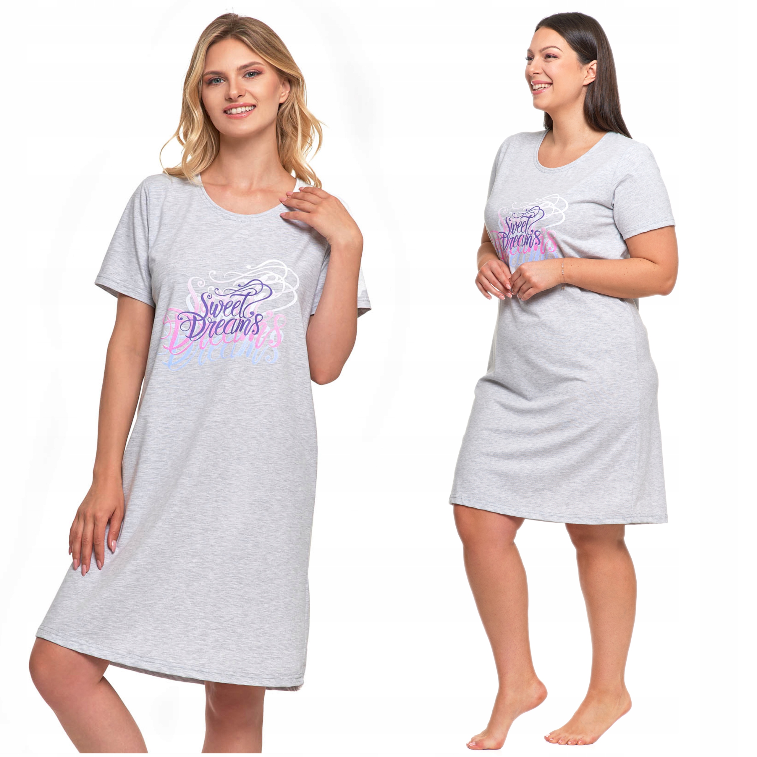 Koszula Nocna Damska Piżama Do Kolan Krótki Rękaw Komfortowa Urocza MORAJ