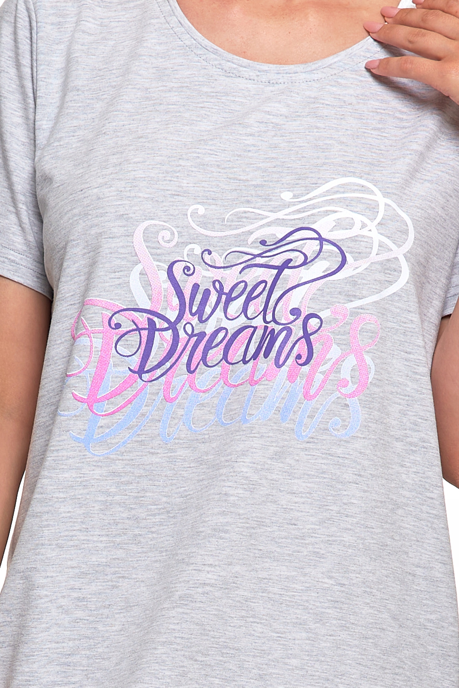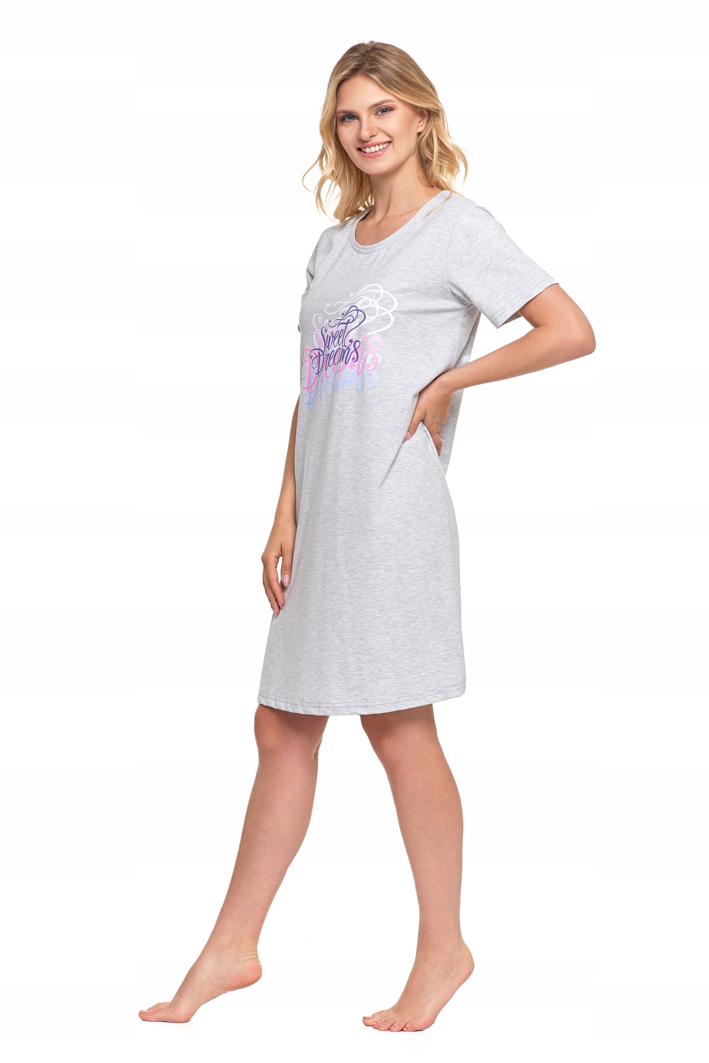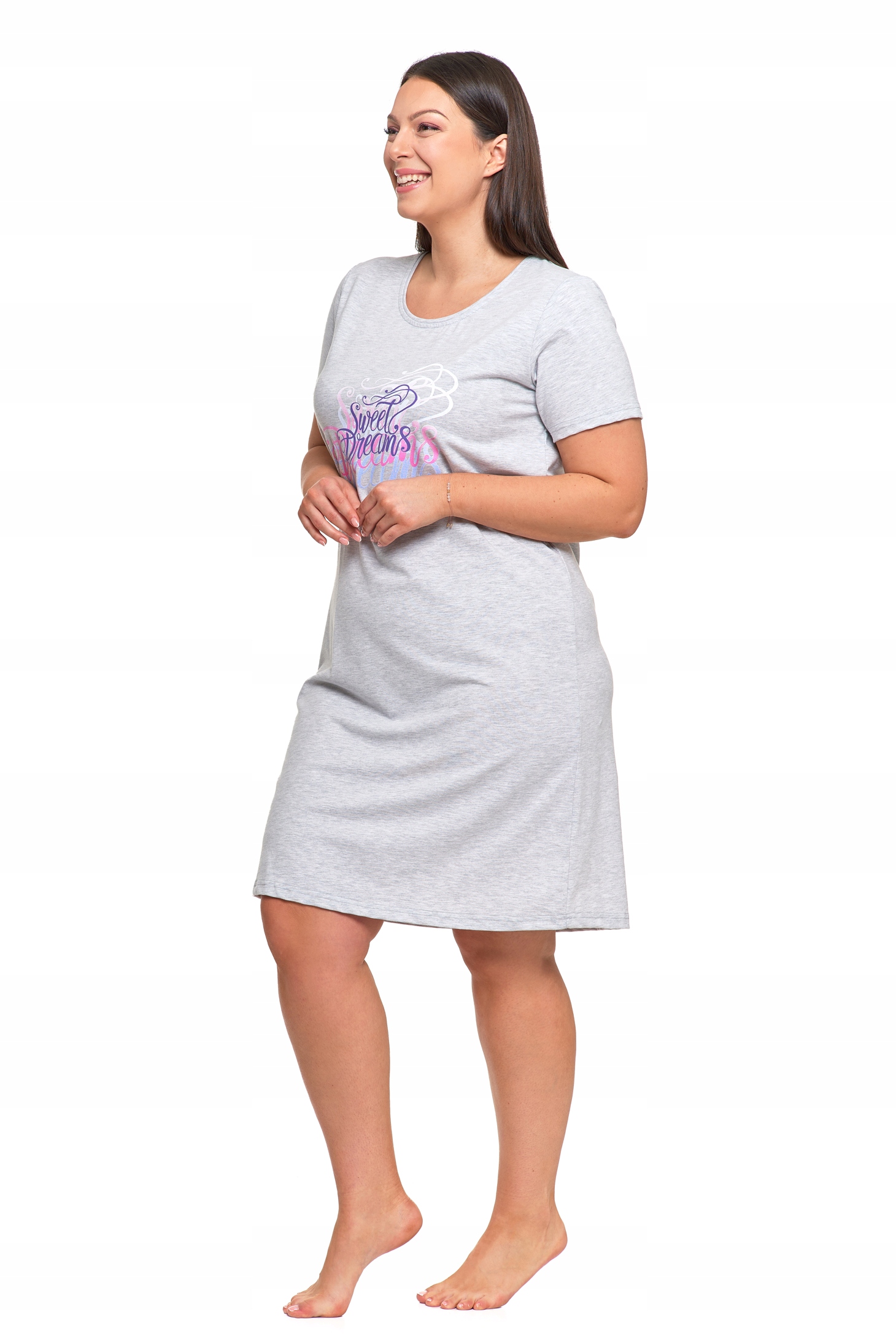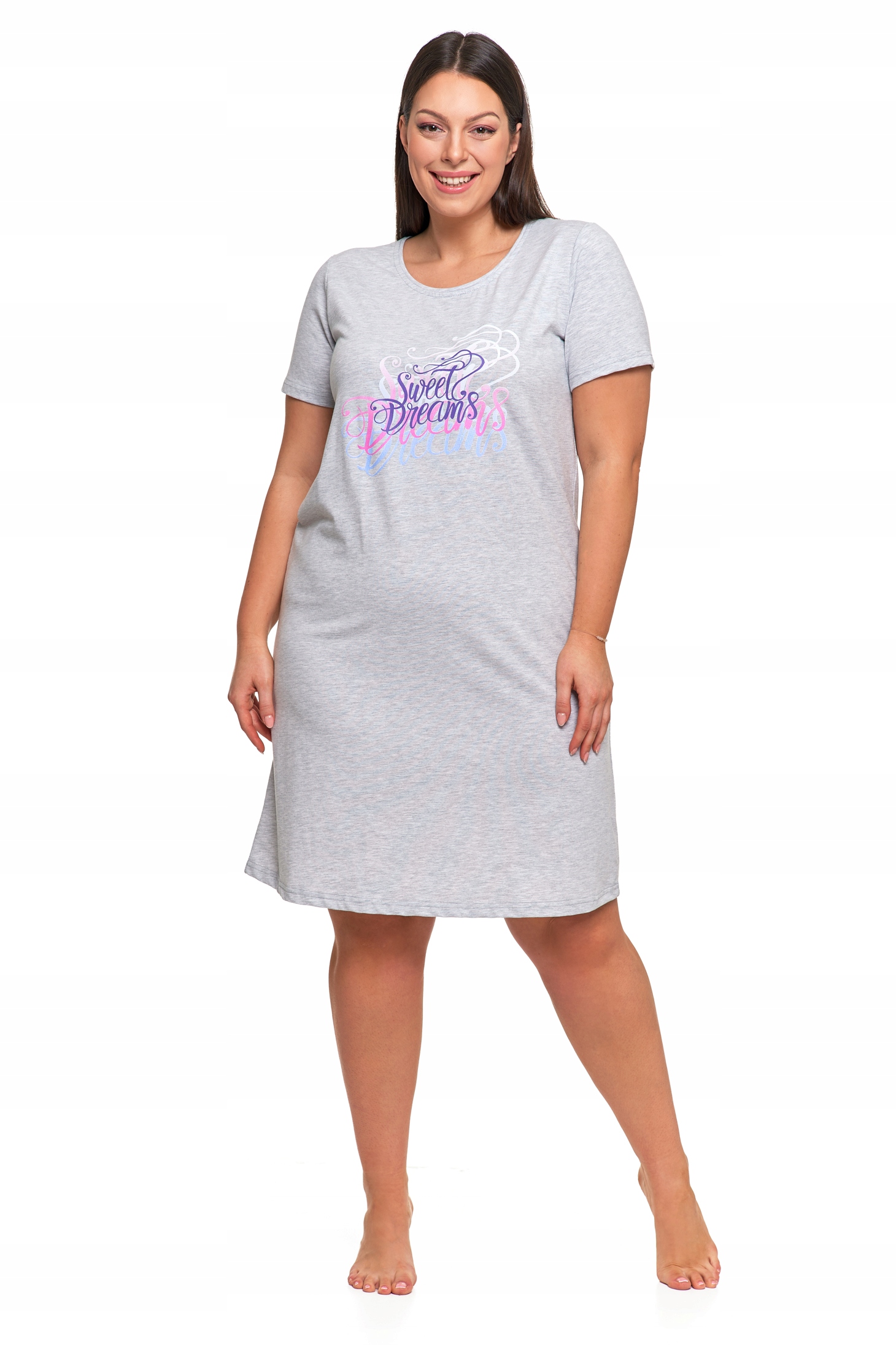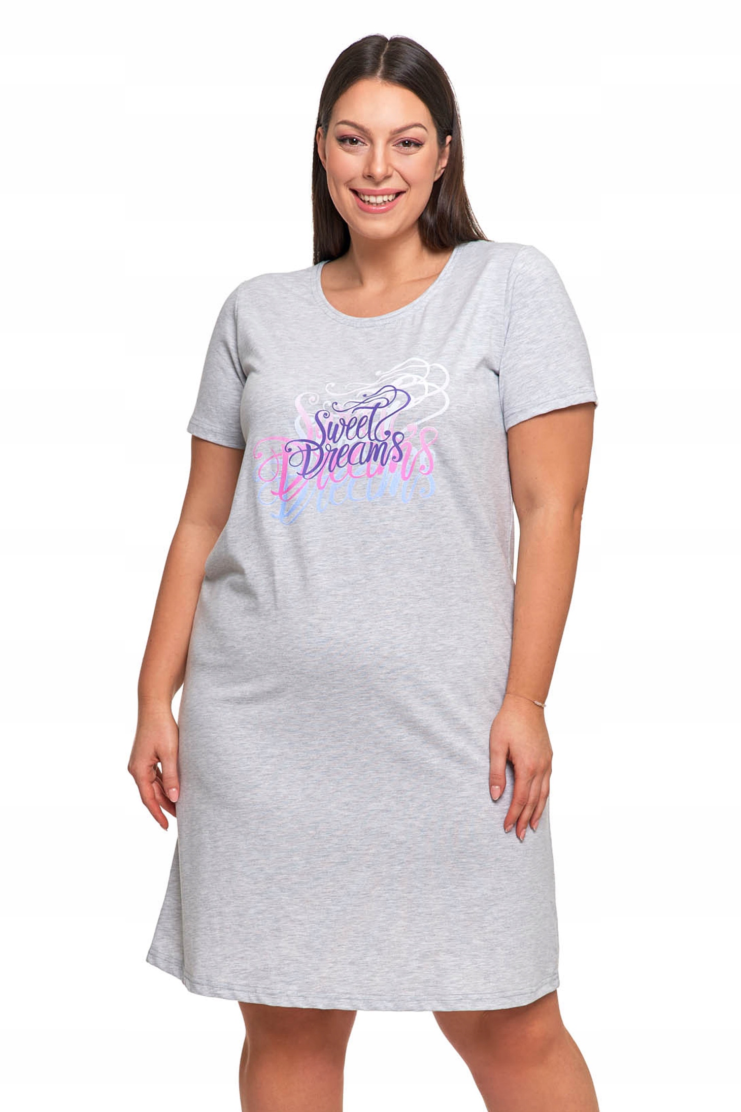 Koszula Nocna Damska Piżama Do Kolan Krótki Rękaw Komfortowa Urocza MORAJ