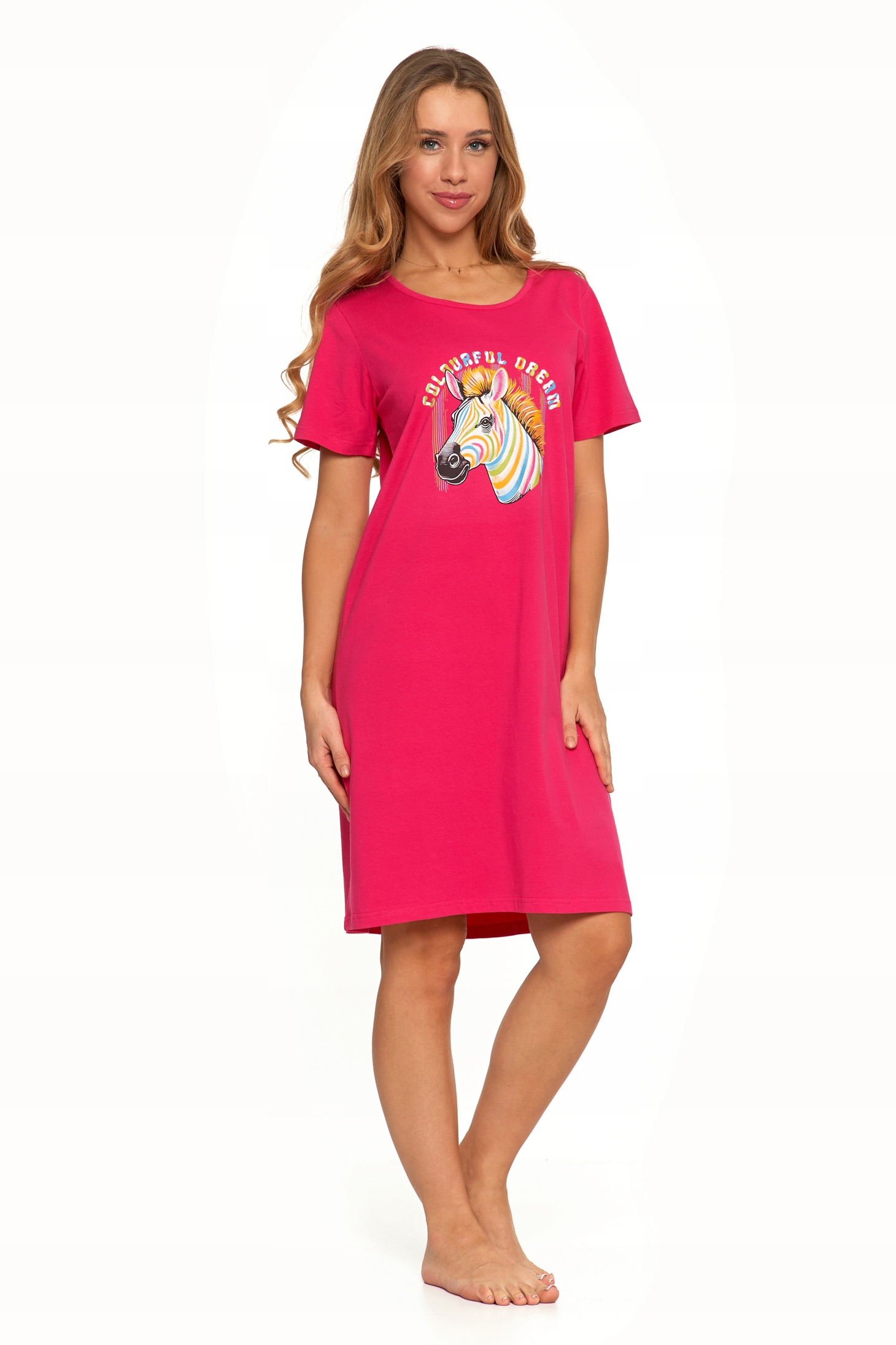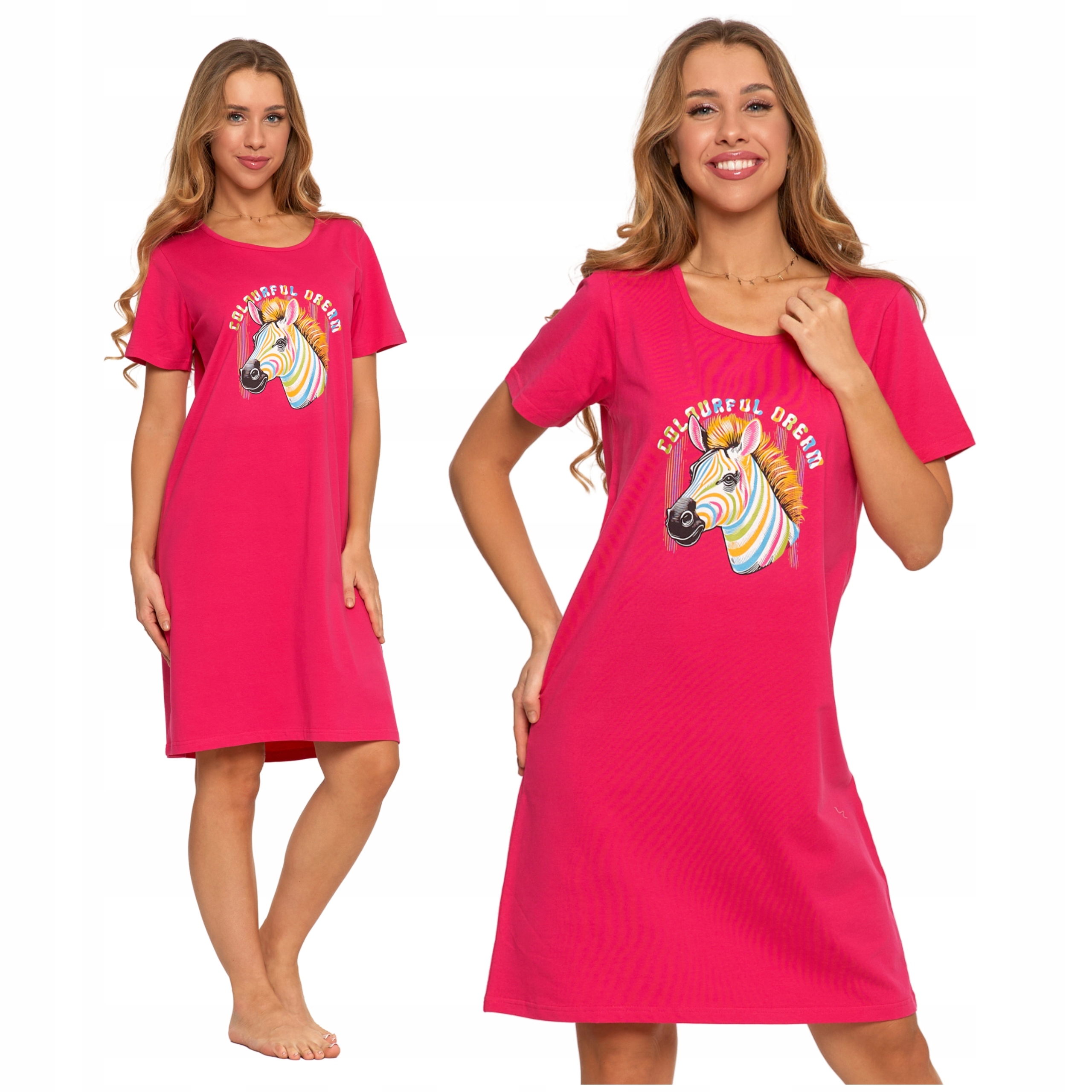 Koszula Nocna Damska Różowa Piżama Urocza Zebra Kolorowa Wygodna MORAJ