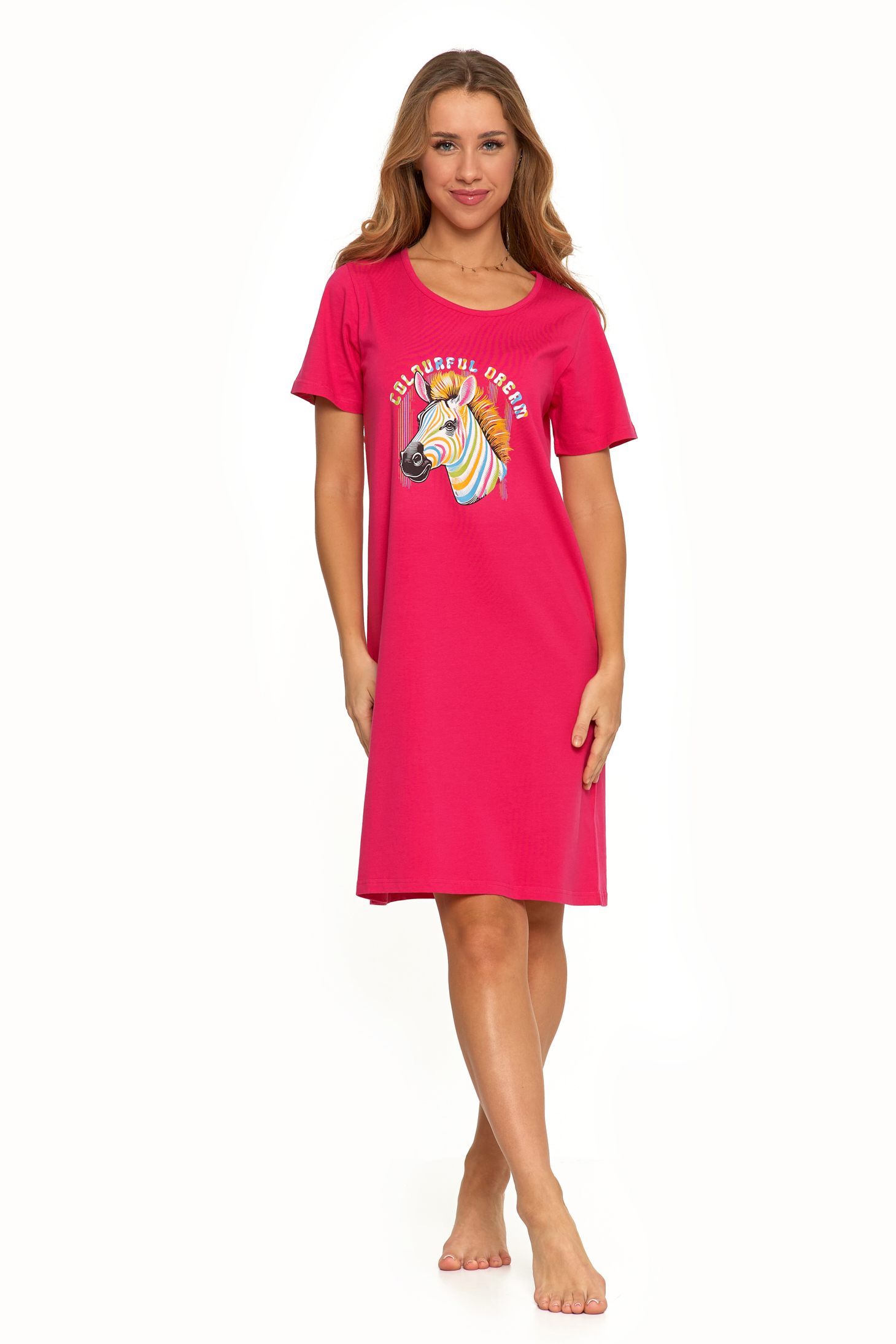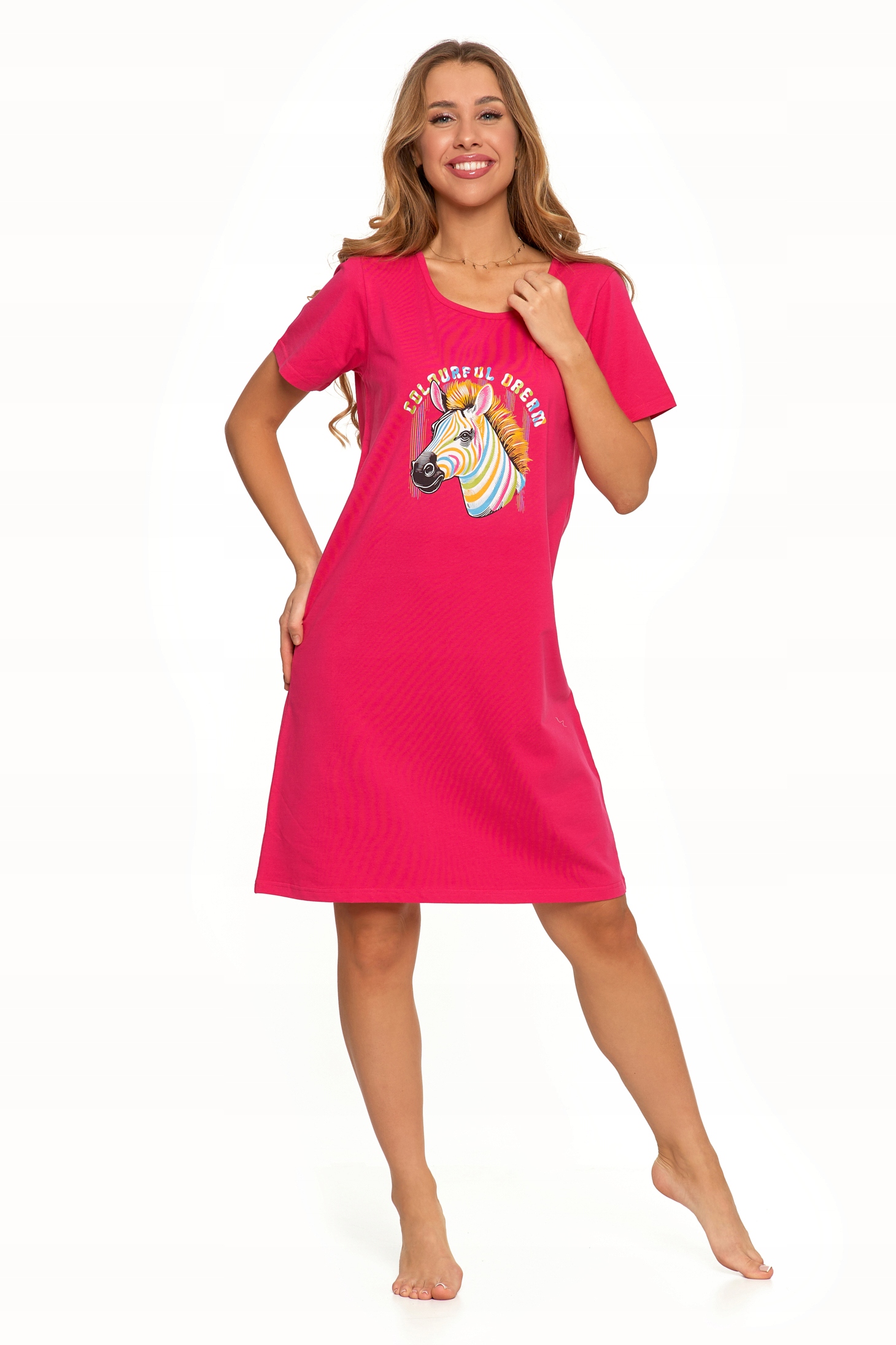 Szukasz nocnej stylizacji, która połączy wygodę, kobiecy urok i pozytywną energię? Damska koszula nocna Colourful Dream w intensywnym odcieniu różu z uroczym nadrukiem tęczowej zebry to strzał w dziesiątkę! To nie tylko element garderoby, ale także sposób na poprawę nastroju i komfortowy wypoczynek – o każdej porze roku.