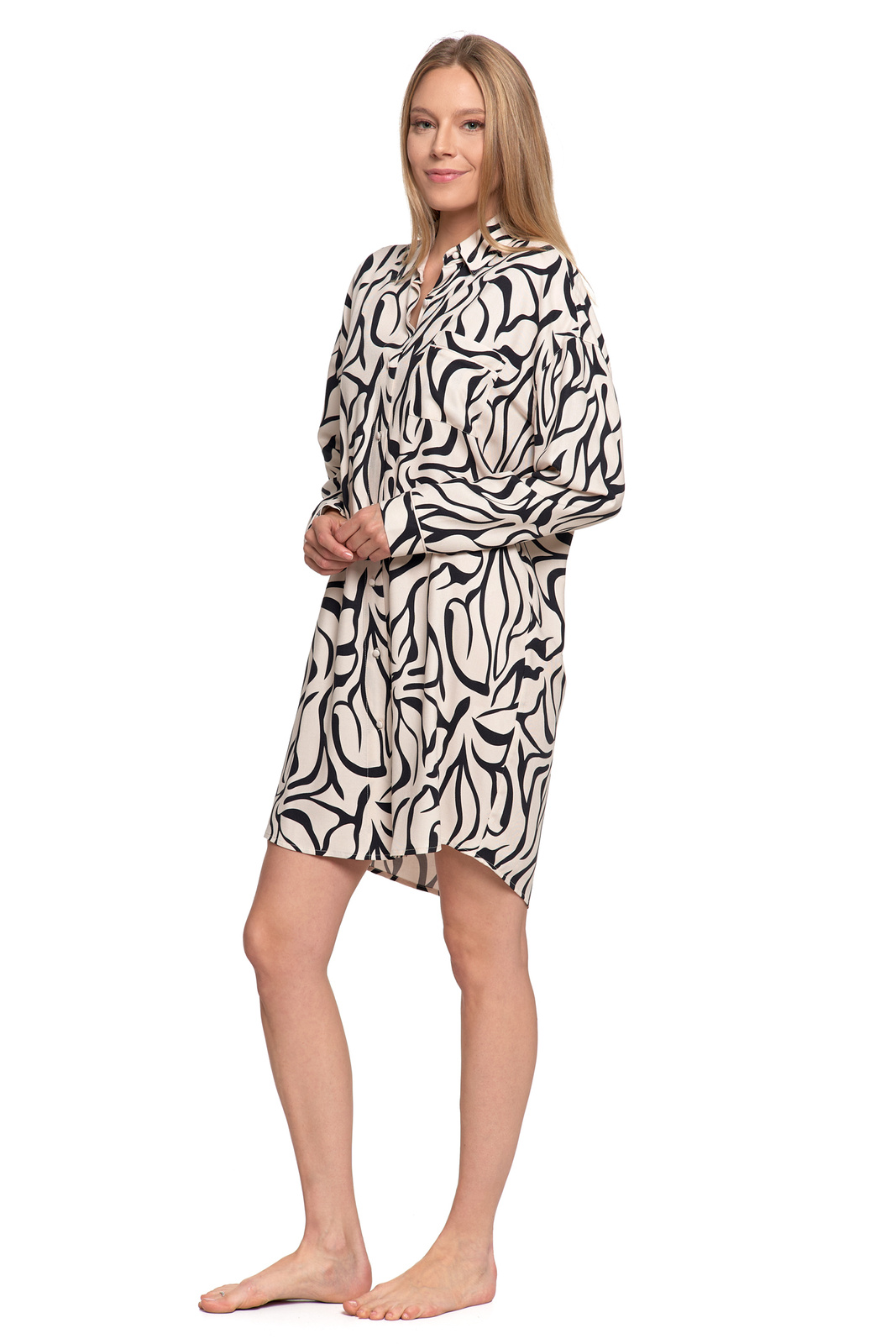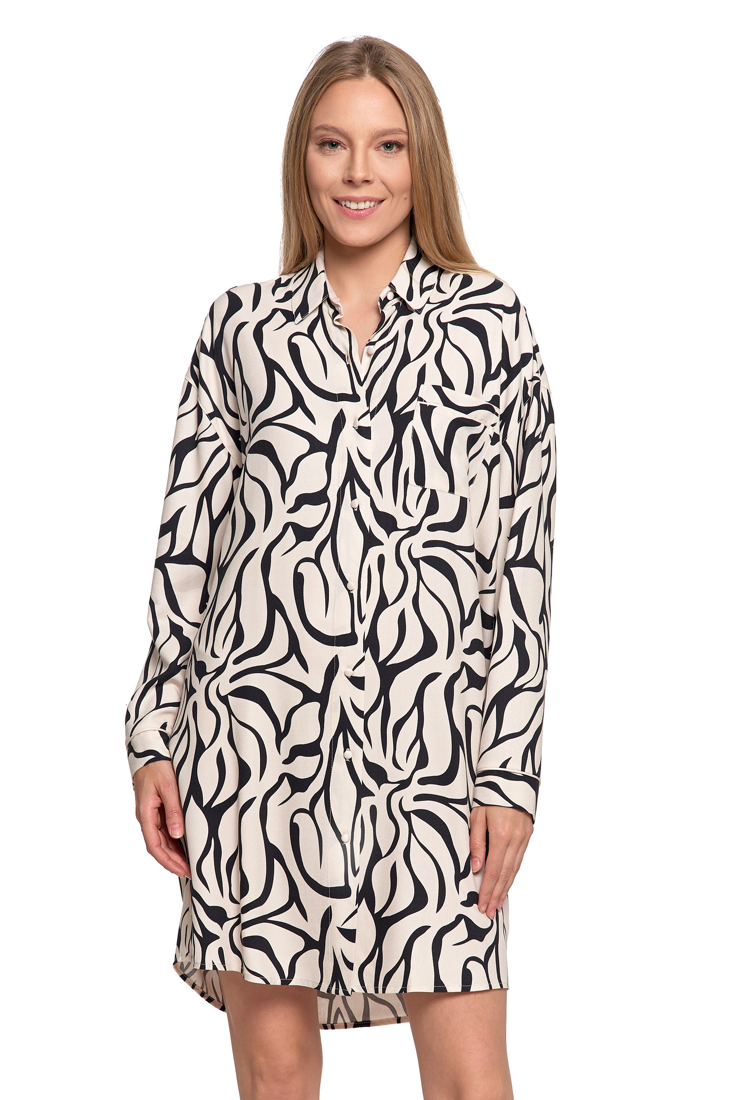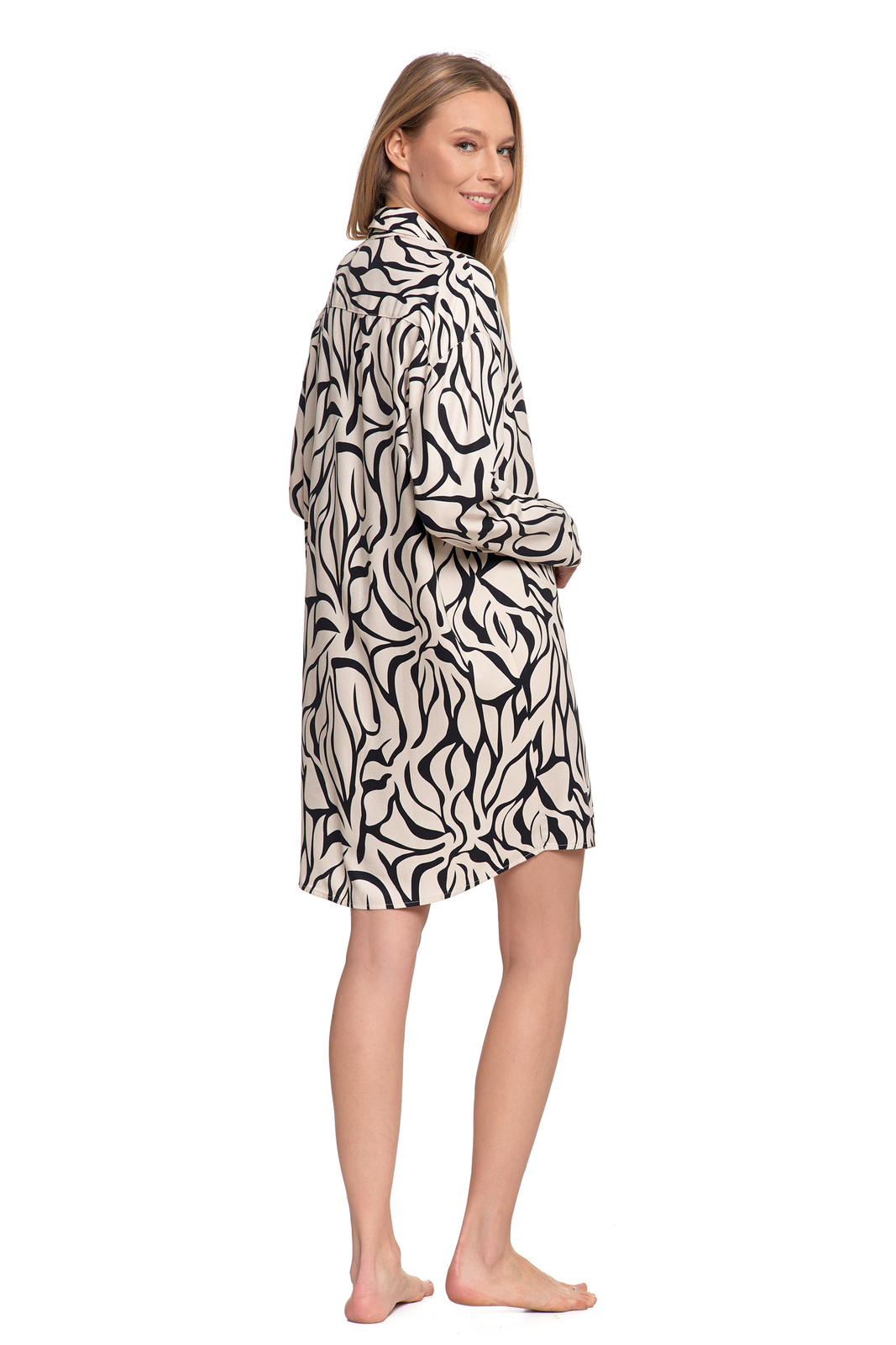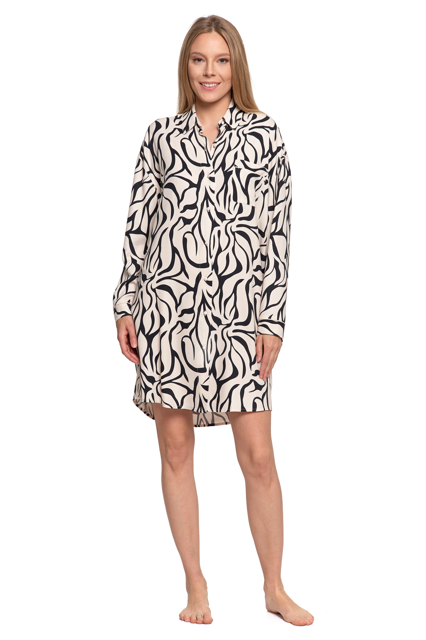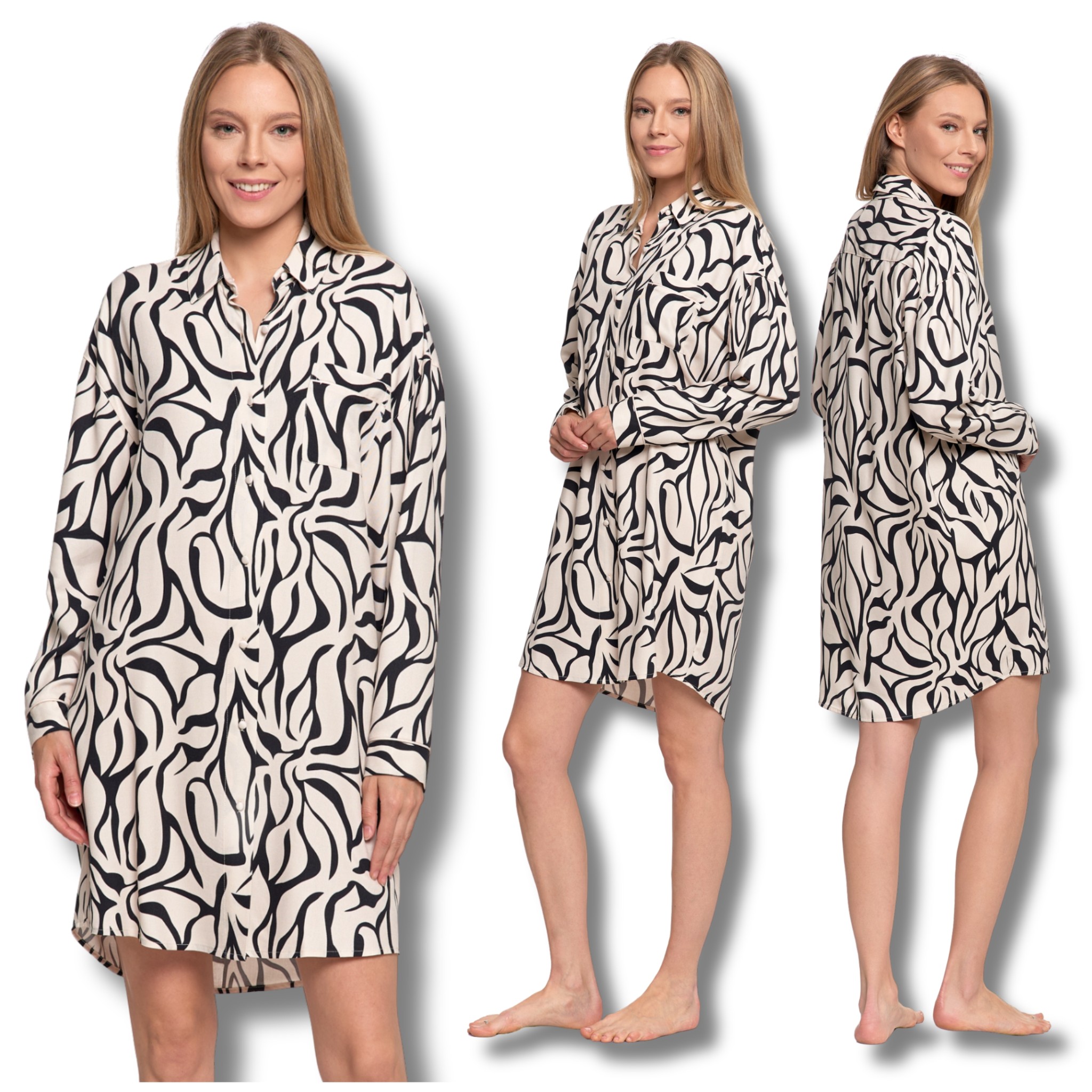 Ta damska koszula nocna to idealne połączenie klasycznej elegancji z niezrównanym komfortem. Wykonana z przewiewnej i miękkiej wiskozy, delikatnie otula ciało, zapewniając swobodę ruchów i przyjemność noszenia przez całą noc.