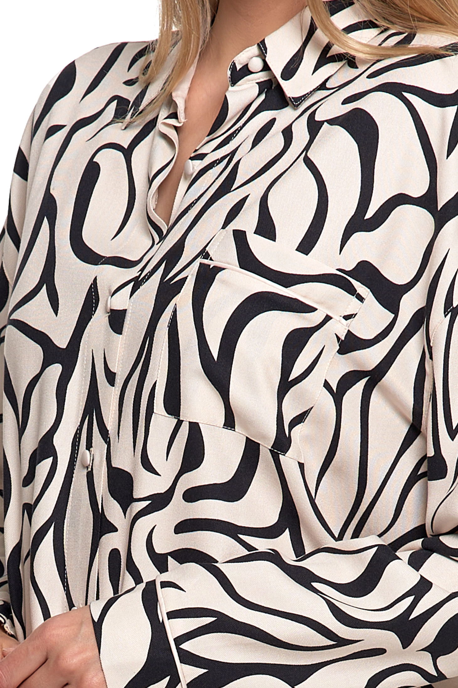 Klasyczny Design: Kołnierzyk oraz zapięcie na guziki nadają jej ponadczasowego, koszulowego charakteru.