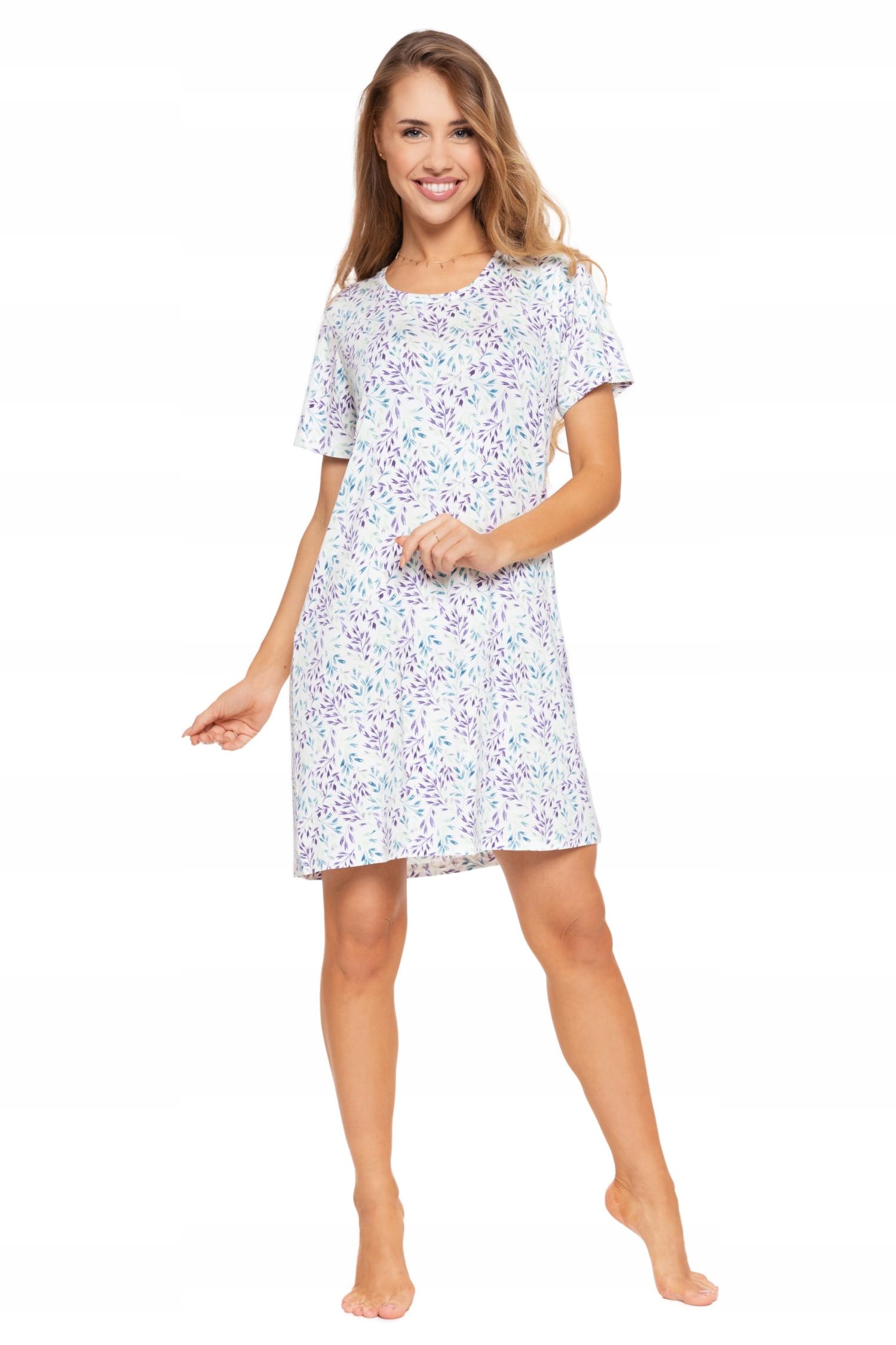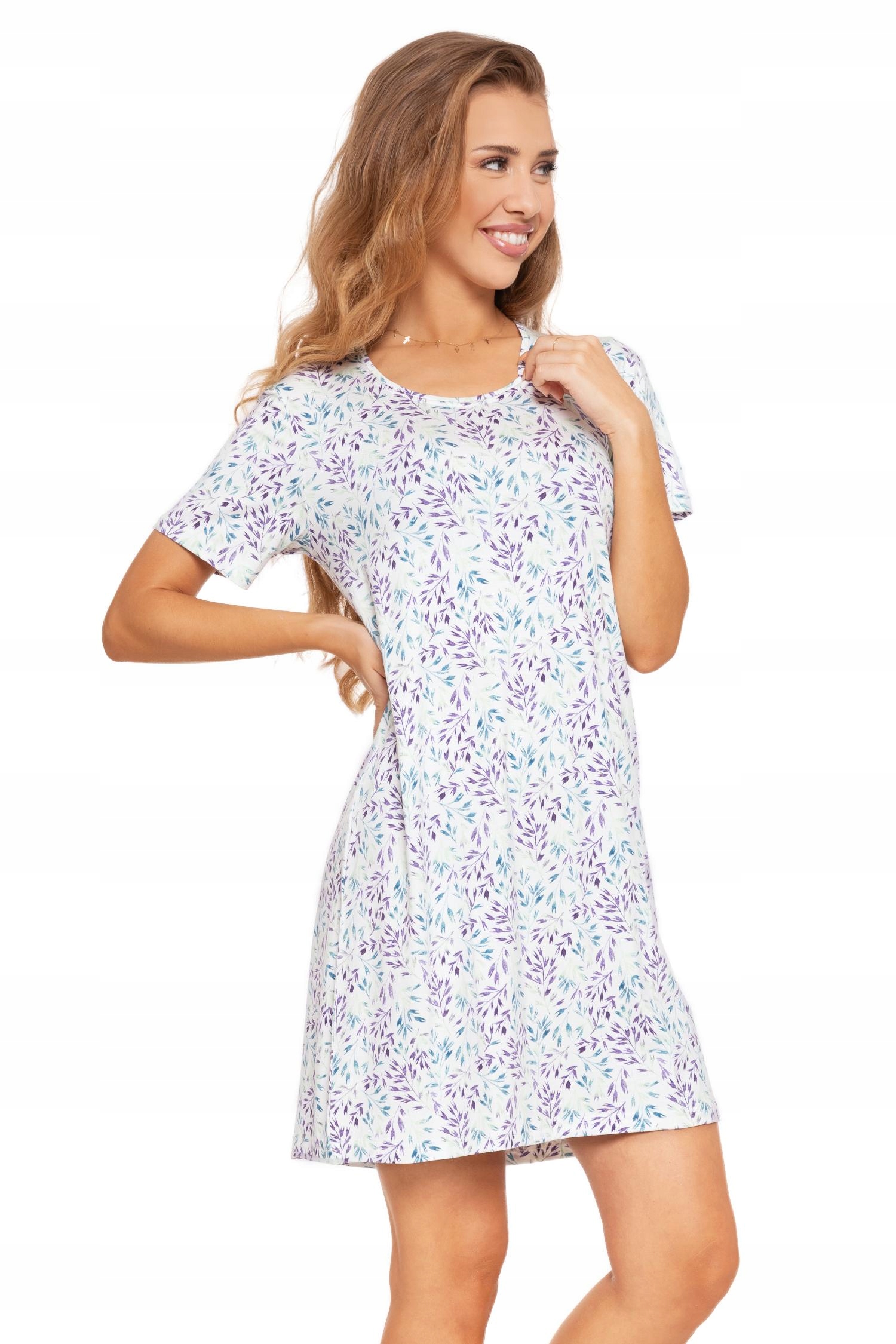 Koszula Nocna Krótki Rękaw PREZENT Piżama Damska Modna Przed Kolano MORAJ