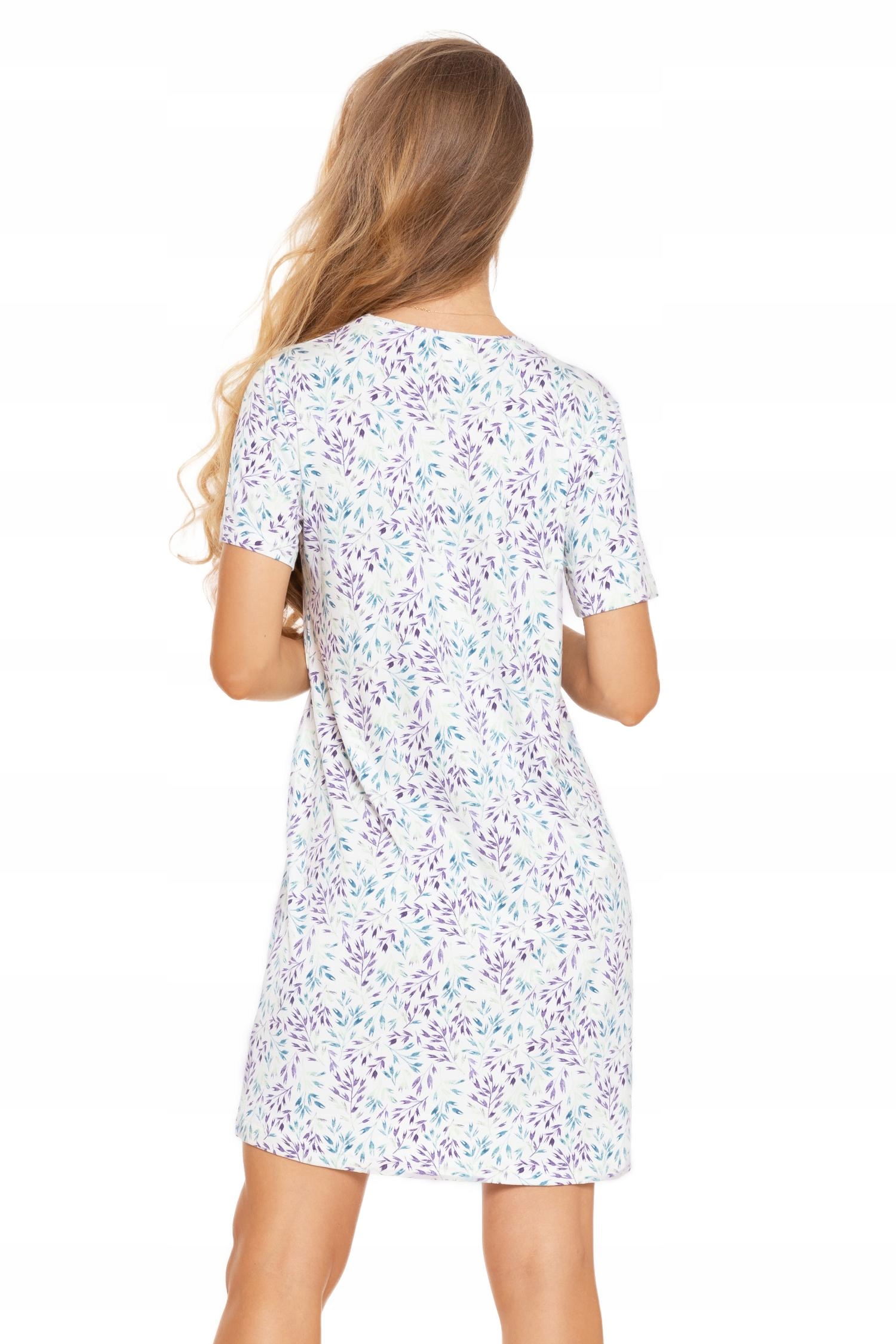 - Wzór w drobny kwiatowy motyw wprowadza do garderoby nocnej nutę romantyzmu. Wyrazisty, lecz jednocześnie subtelny, nadaje koszuli nocnej unikalnego charakteru. Okrągły dekolt podkreśla delikatność dekoltu, nadając całości lekkości i kobiecości.