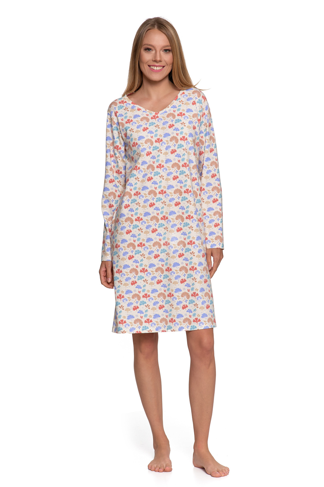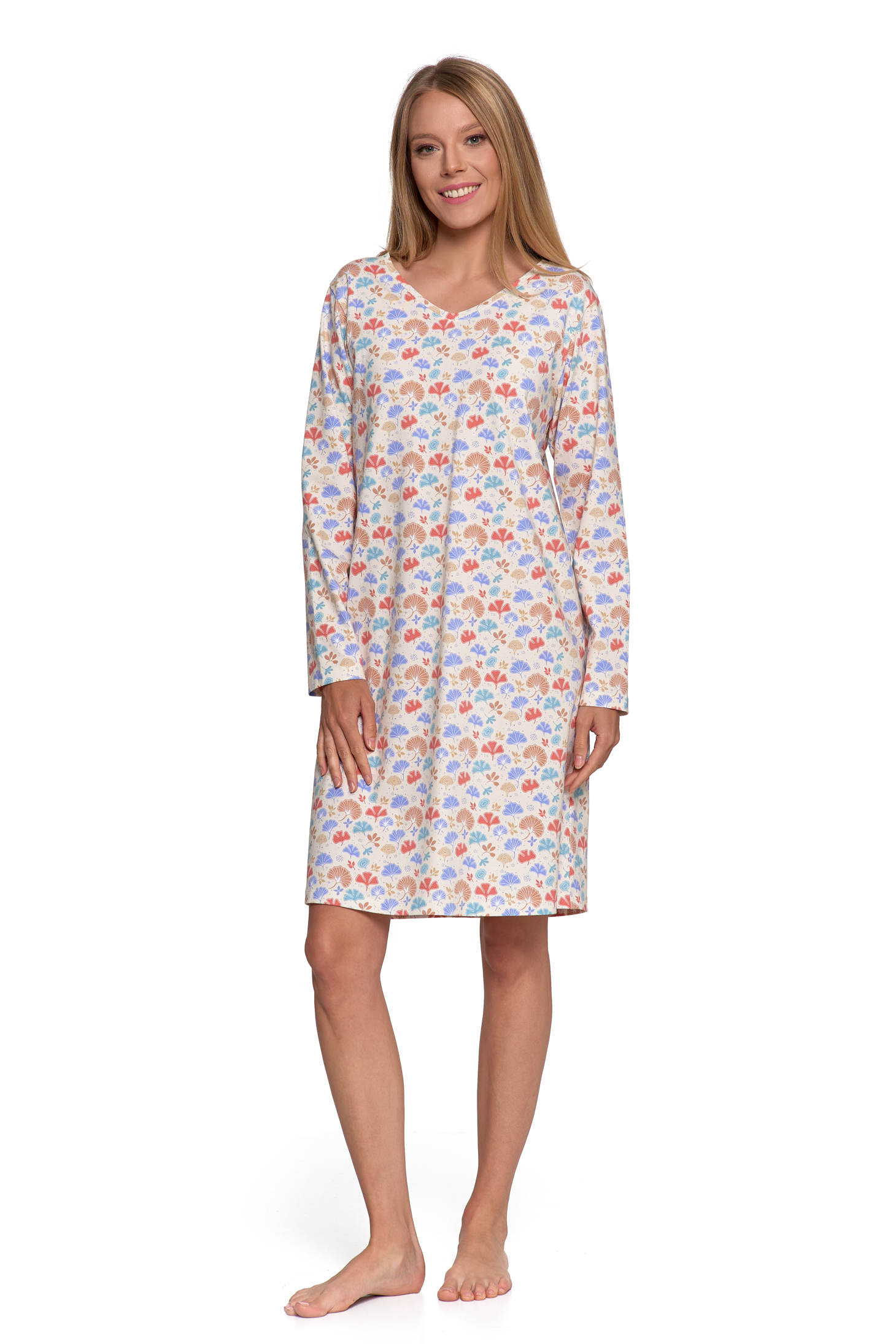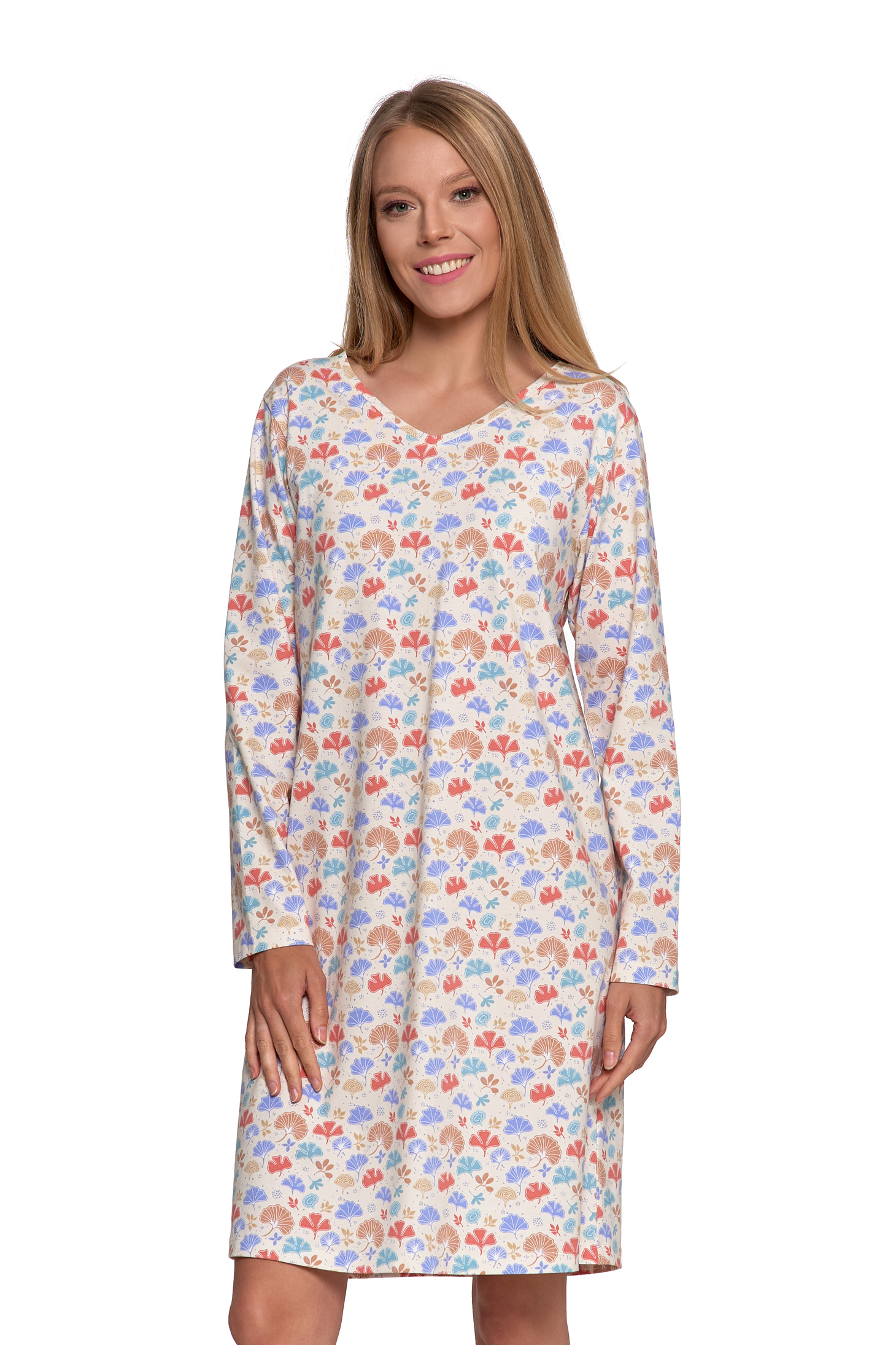 KOSZULA NOCNA PIŻAMA DAMSKA KOLOROWA Z DŁUGIM RĘKAWEM BAWEŁNIANA MORAJ