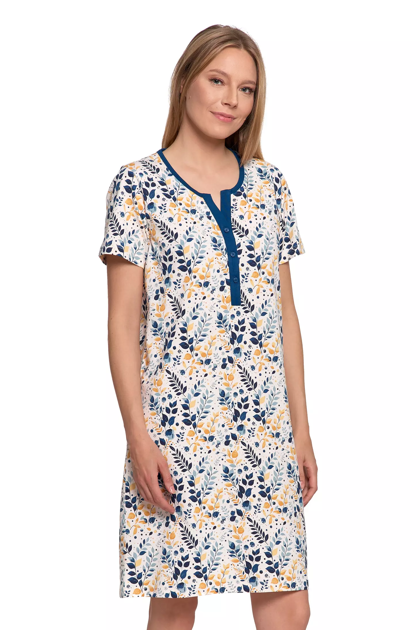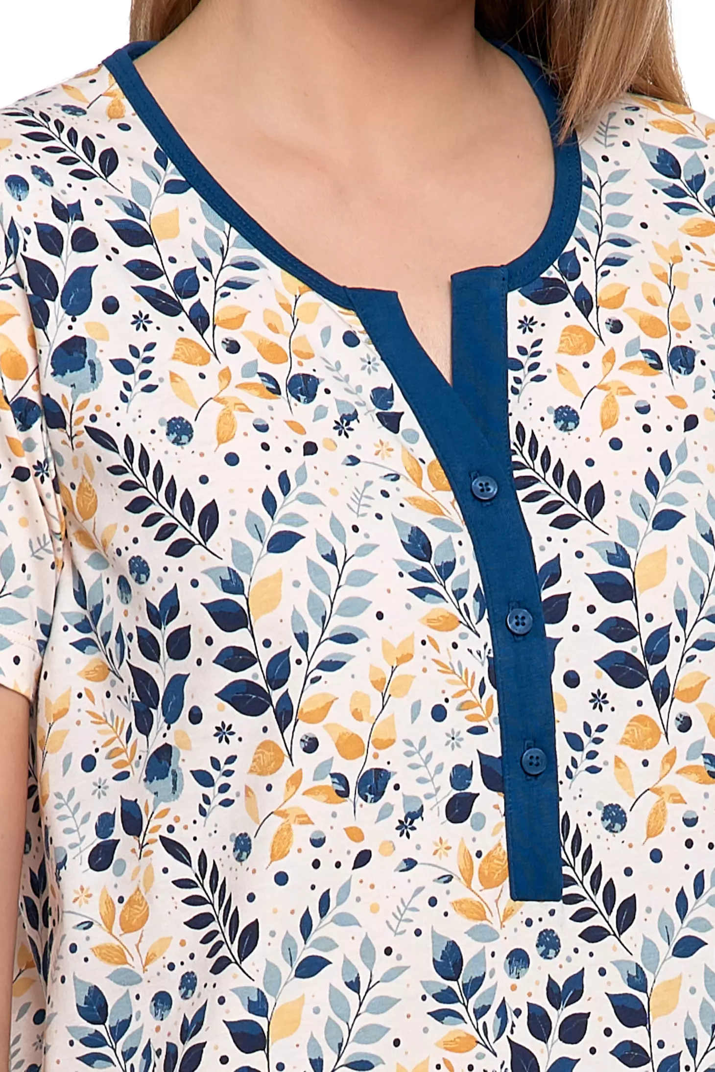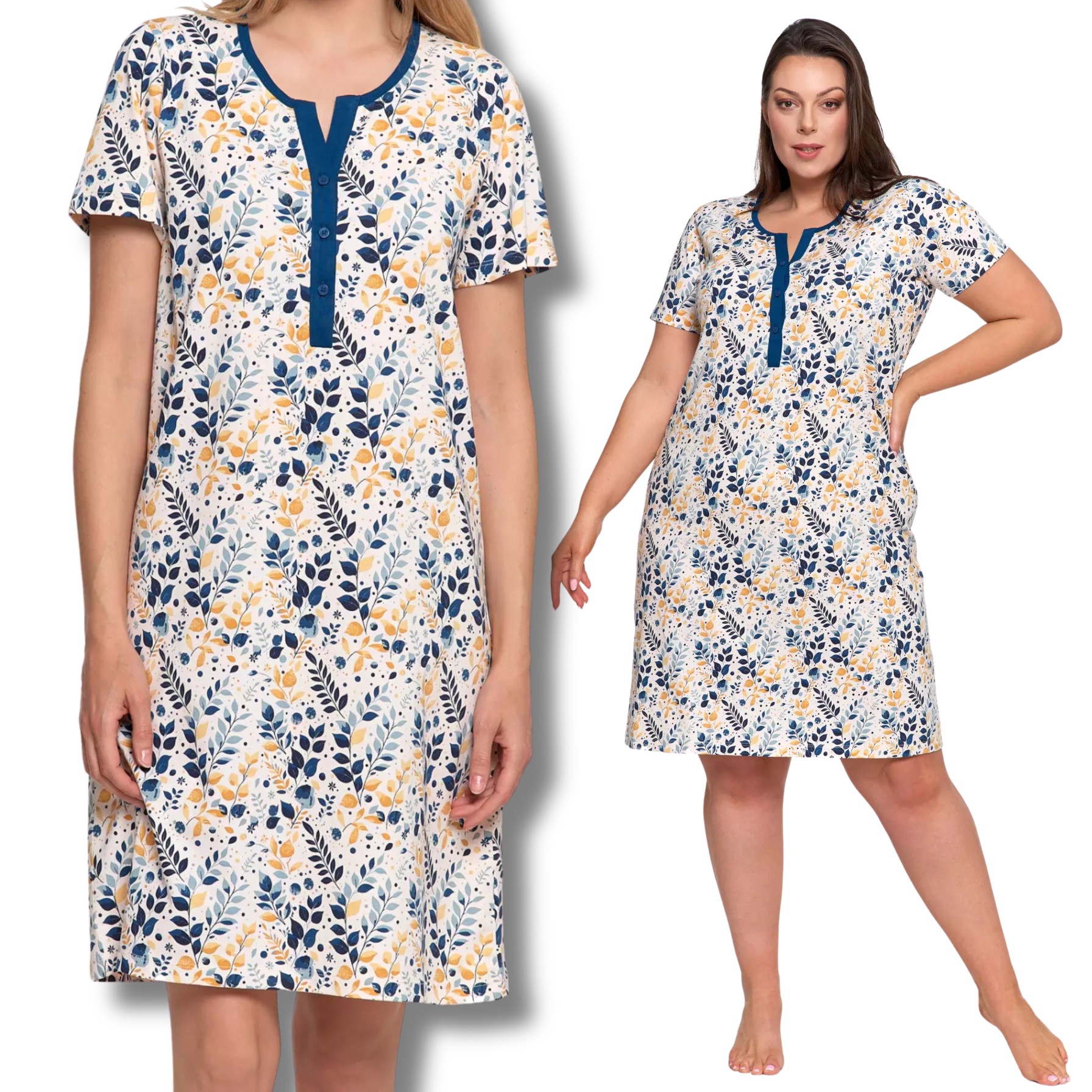 KOSZULA NOCNA UROCZA W KWIATY PIŻAMA DAMSKA Z KRÓTKIM RĘKAWEM MORAJ
