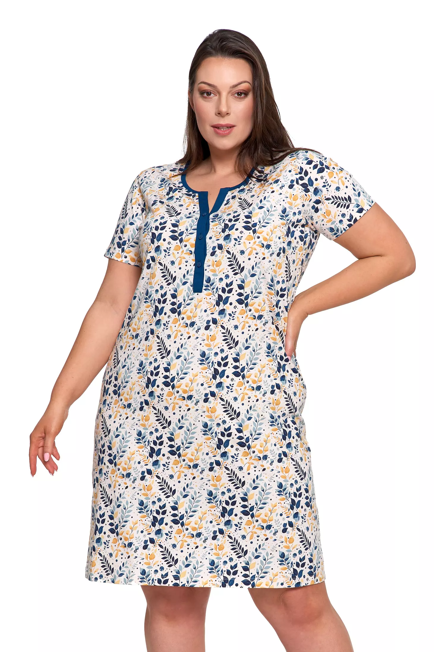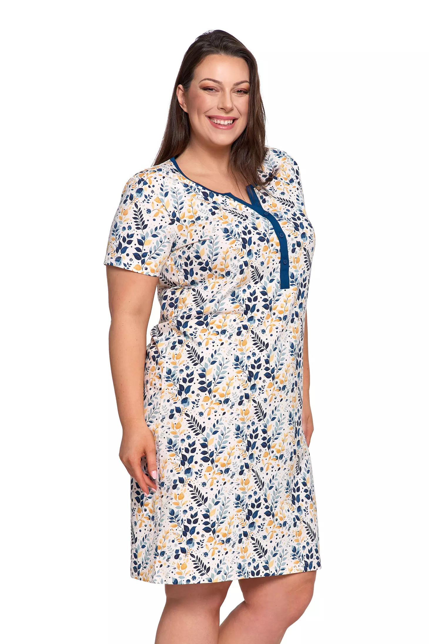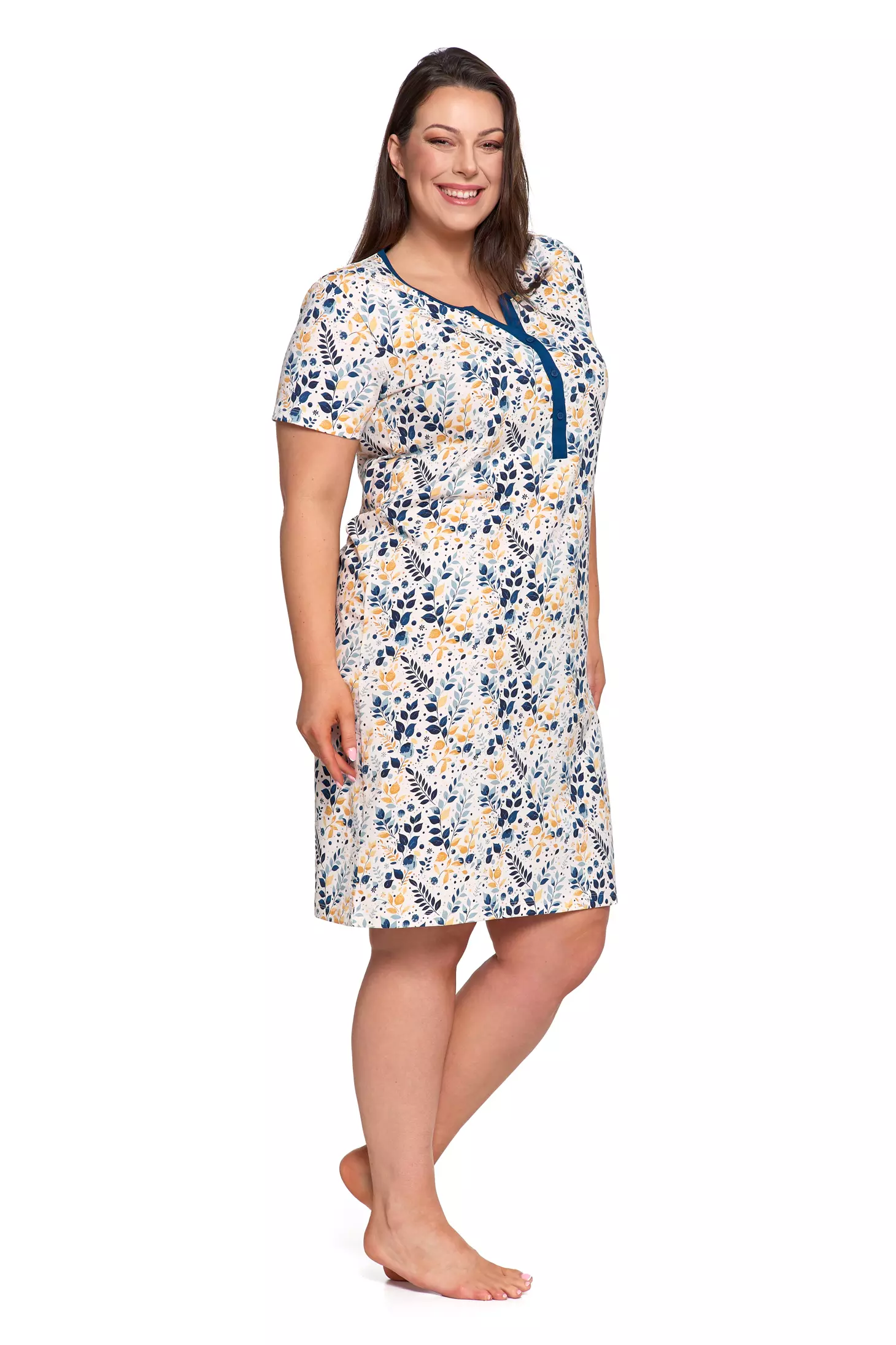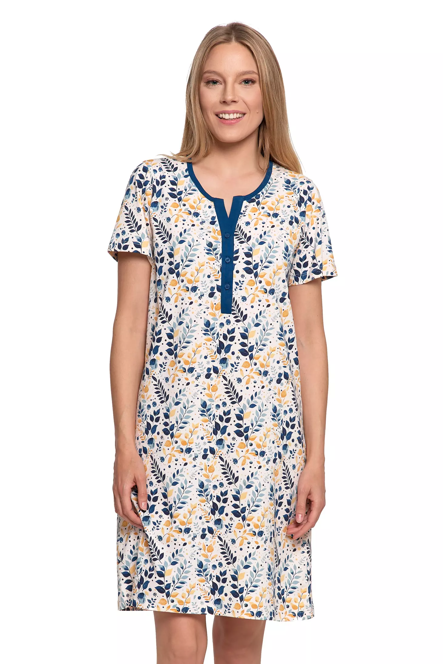 KOSZULA NOCNA UROCZA W KWIATY PIŻAMA DAMSKA Z KRÓTKIM RĘKAWEM MORAJ