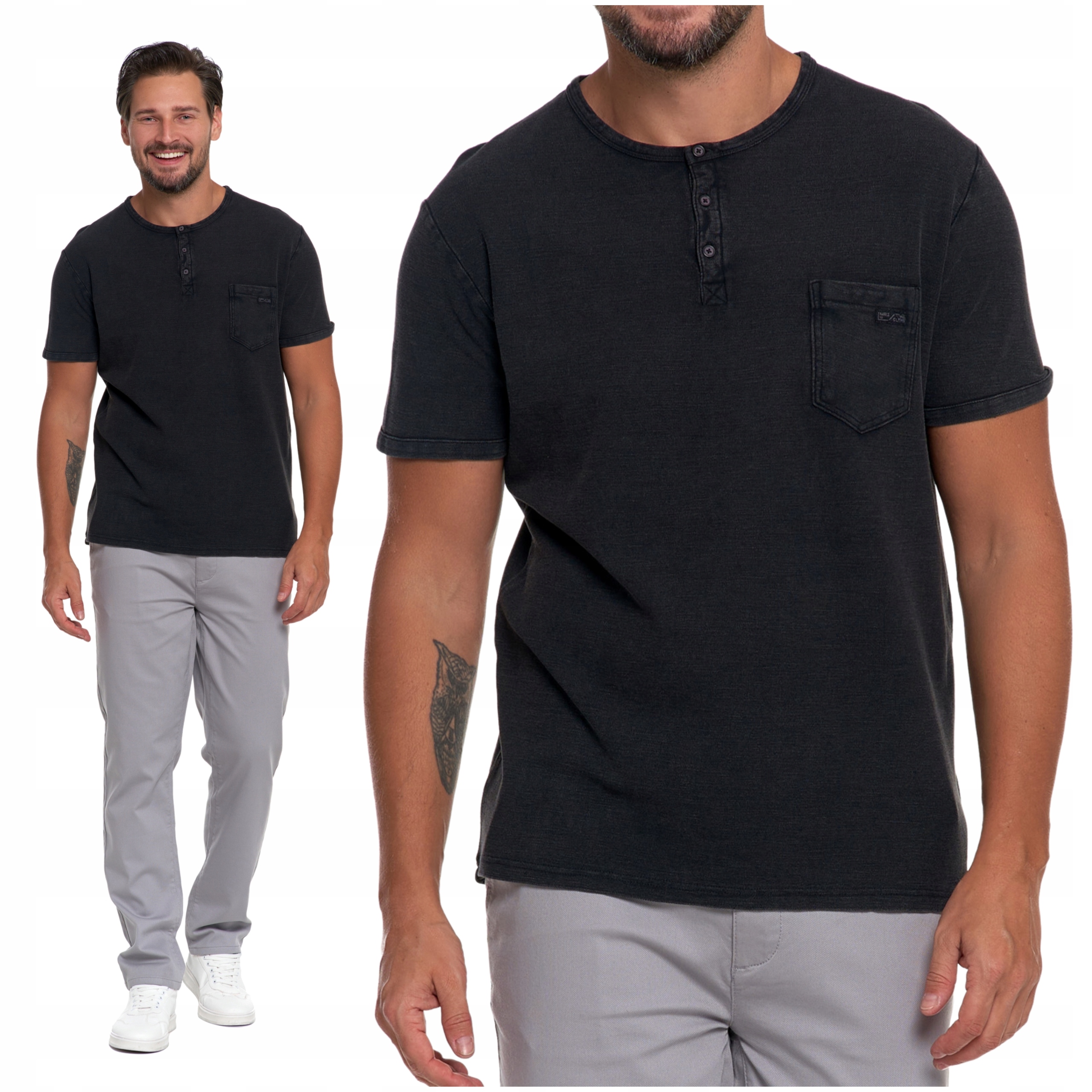 Koszulka Męska Elegancki T-Shirt z Guzikami Kieszonka Krótki Rękaw MORAJ