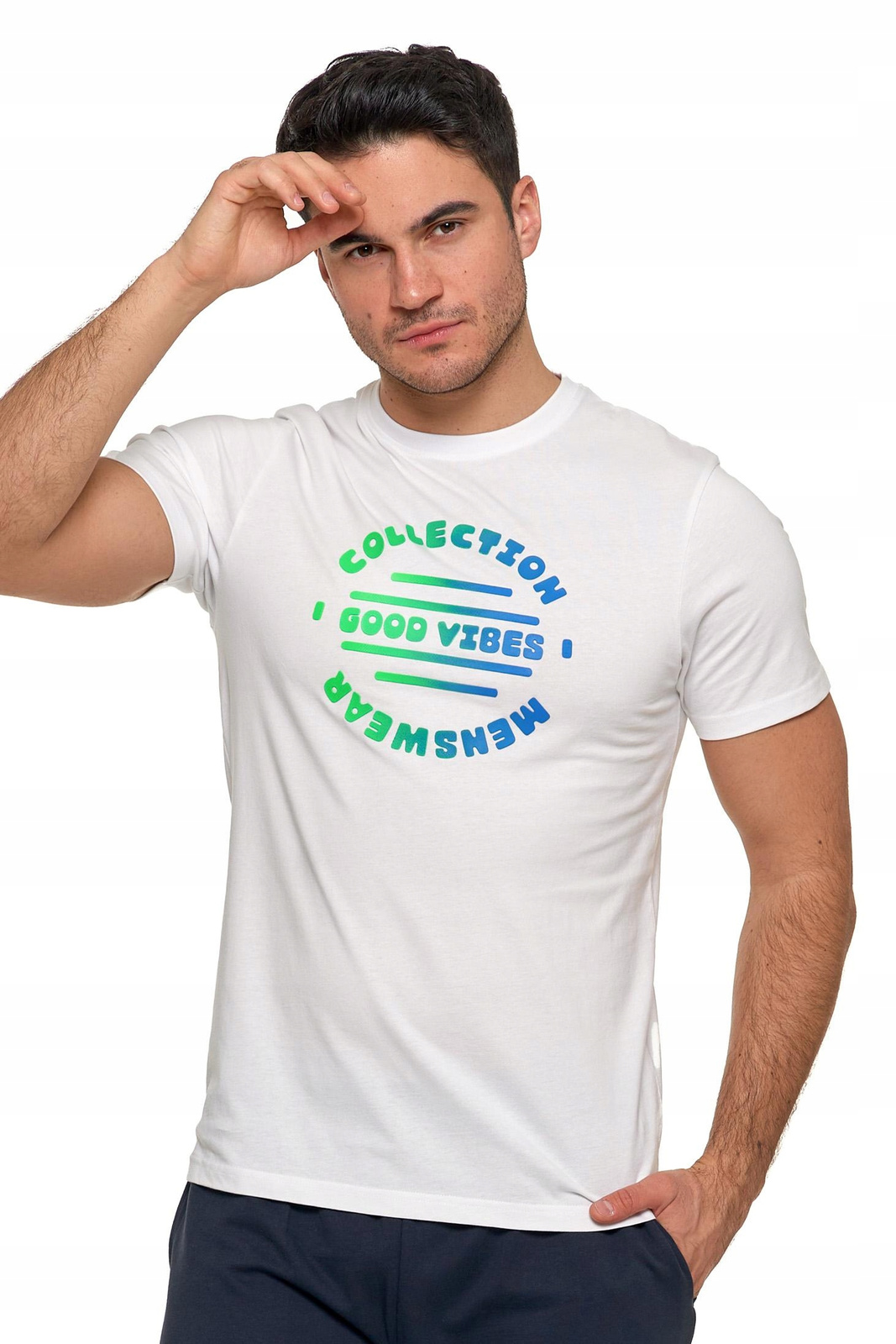 Koszulka Męska MORAJ T-Shirt na krótki Rękaw Biała z Nadrukiem Bawełna