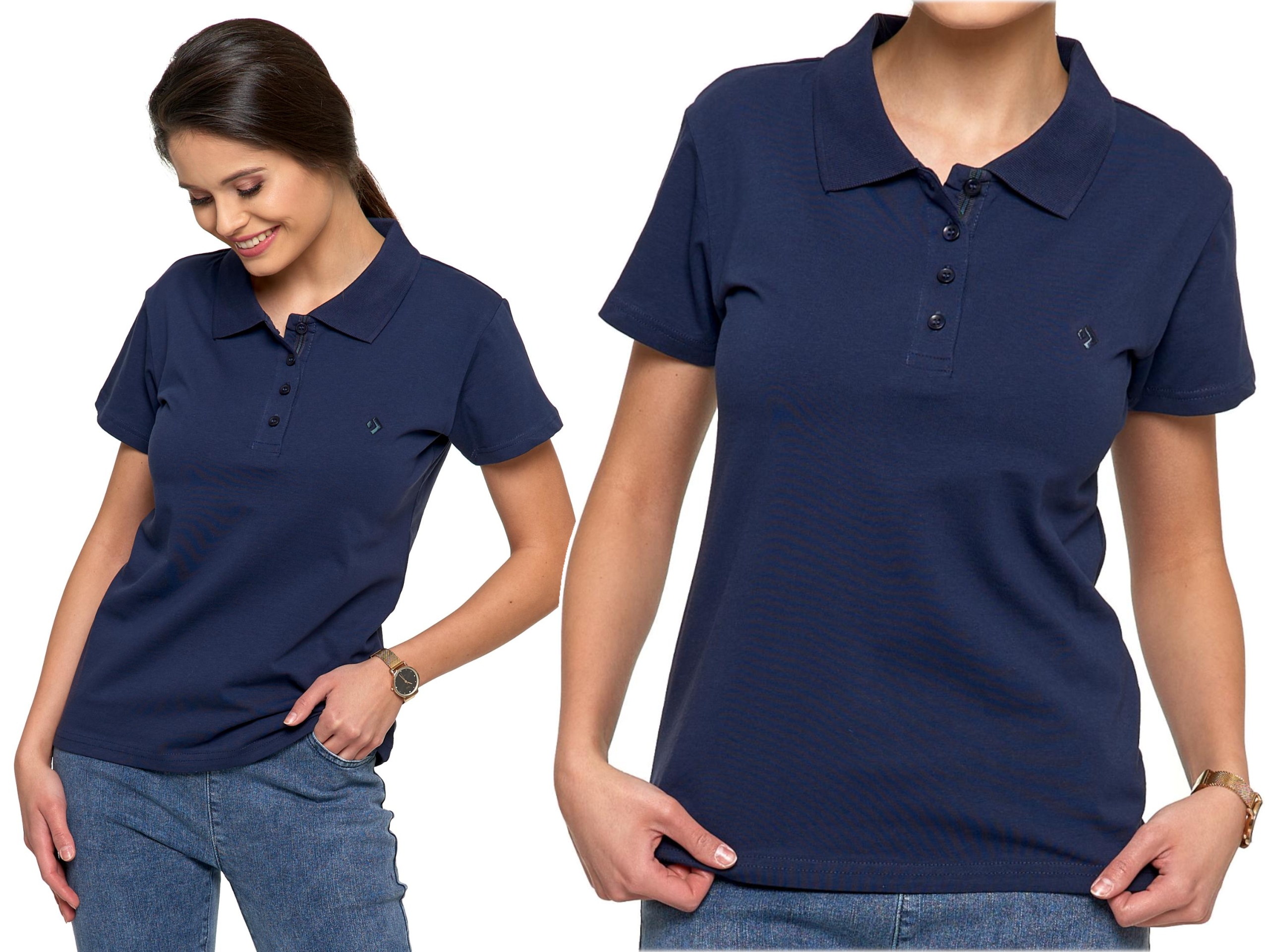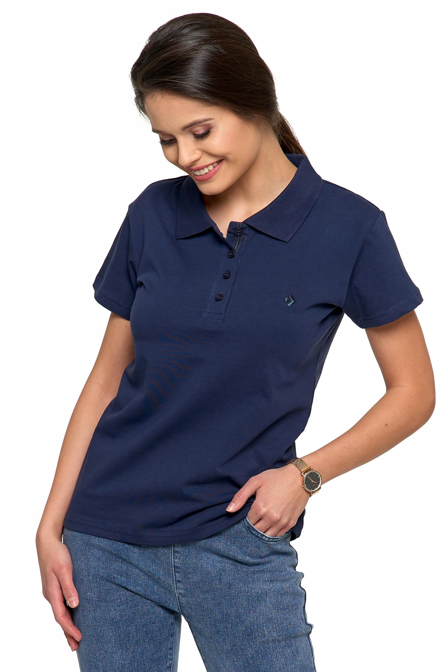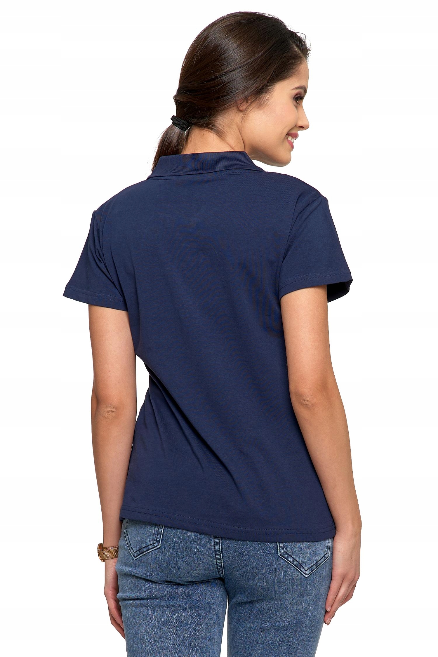 Koszulka Polo Damska PREMIUM Klasyczna Bawełniana Granatowa Modna MORAJ