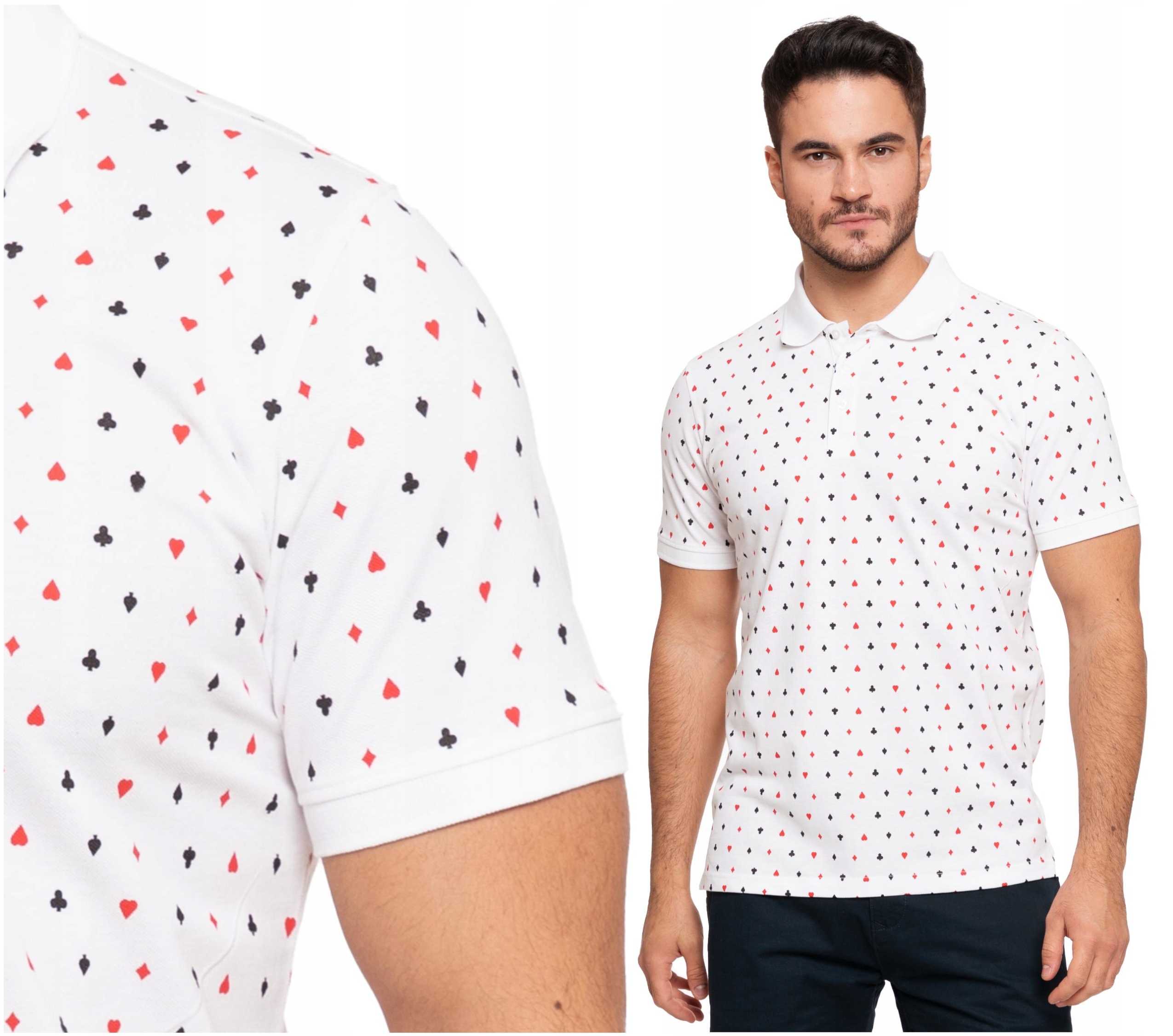 ✅ Unikalnym elementem tej koszulki polo jest elegancki, karciany wzór, który dodaje jej wyjątkowego charakteru i wyróżnia z tłumu. Motywy karciane są subtelne, ale zarazem wyraźne, co czyni tę koszulkę idealnym wyborem dla mężczyzn, którzy cenią sobie oryginalność i chcą dodać odrobinę zabawy do swojego codziennego ubioru.
