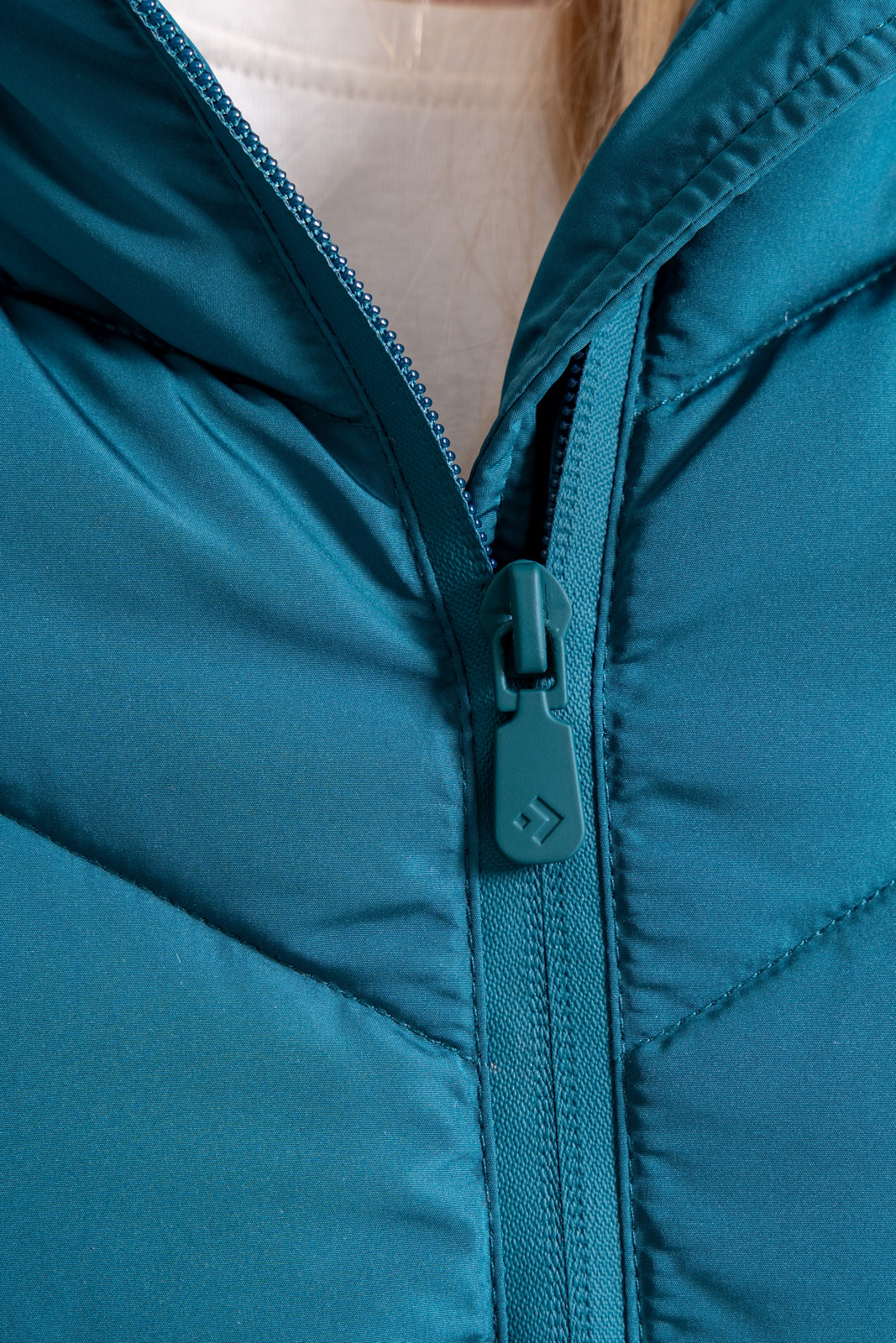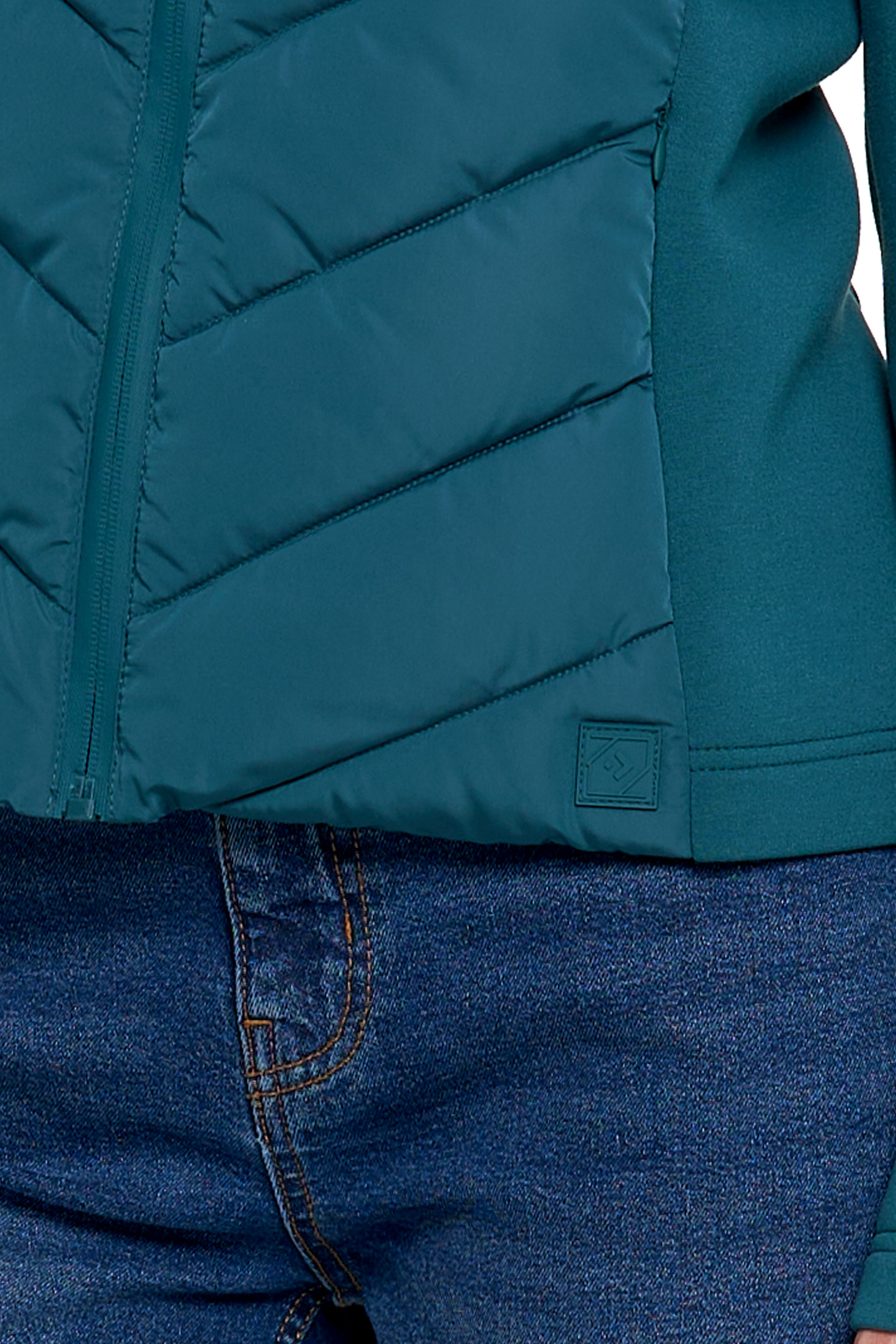 - Konstrukcja Hybrydowa: Pikowany przód i tył chronią przed chłodem, a elastyczne, miękkie rękawy i boki gwarantują wygodę i swobodę ruchów.
