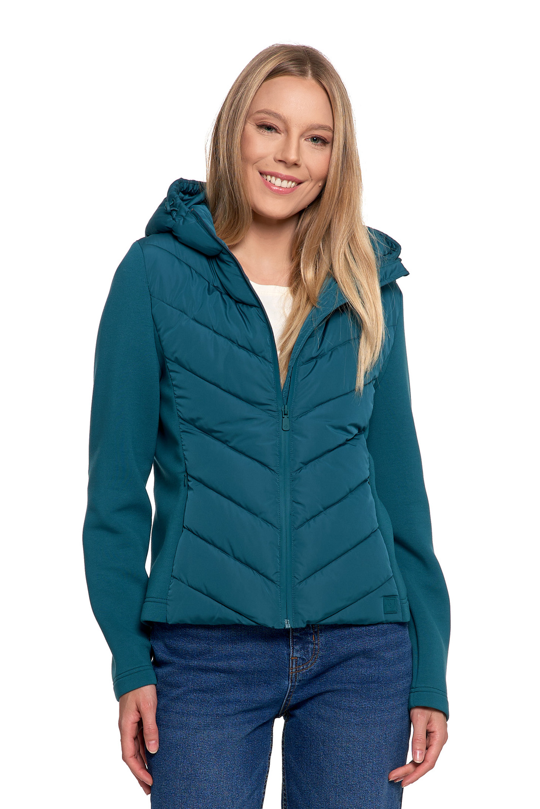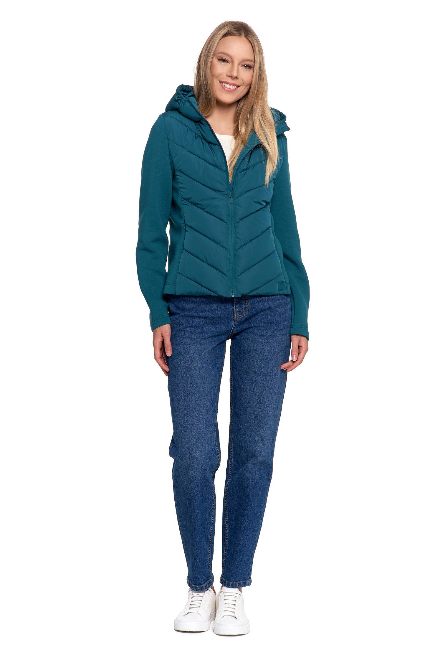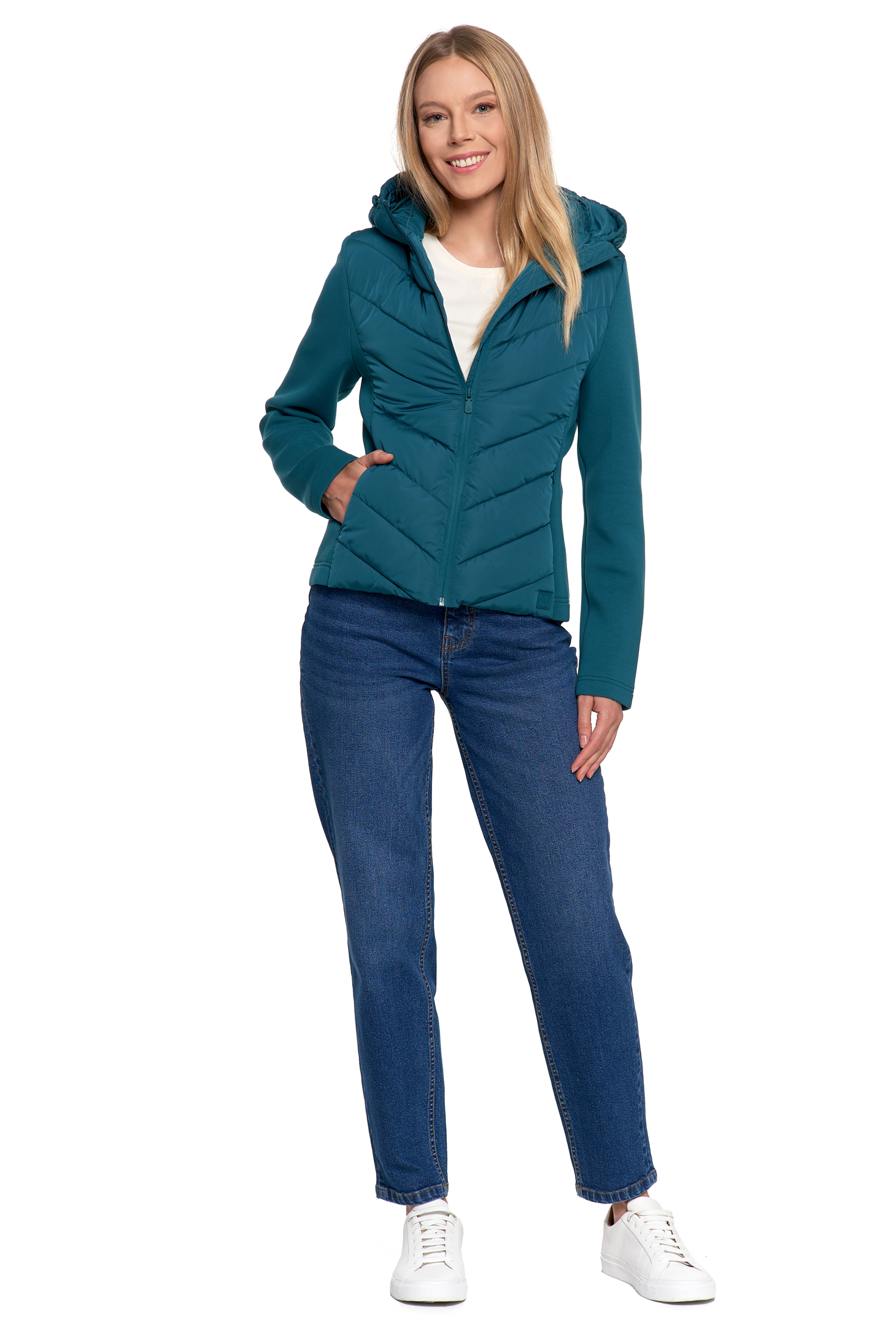 Ta damska kurtka przejściowa to idealne połączenie sportowej funkcjonalności i miejskiego stylu. Jej hybrydowa konstrukcja – łącząca pikowany korpus z miękkimi, elastycznymi rękawami – zapewnia optymalną ochronę przed chłodem i pełną swobodę ruchów.