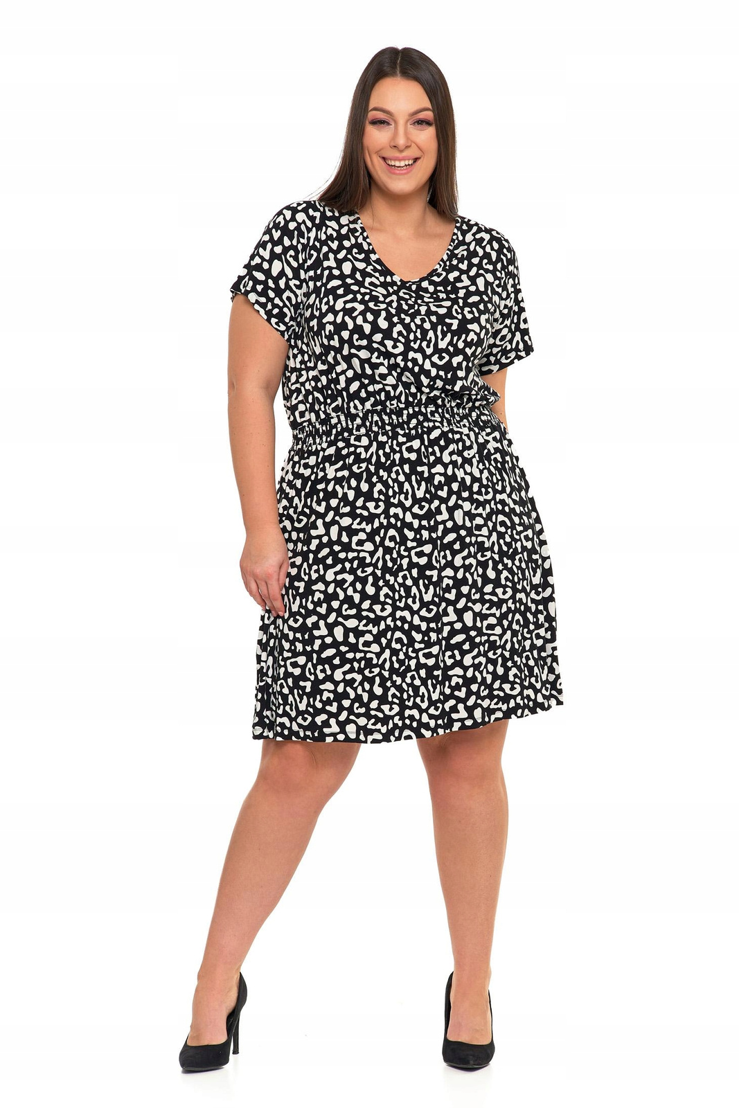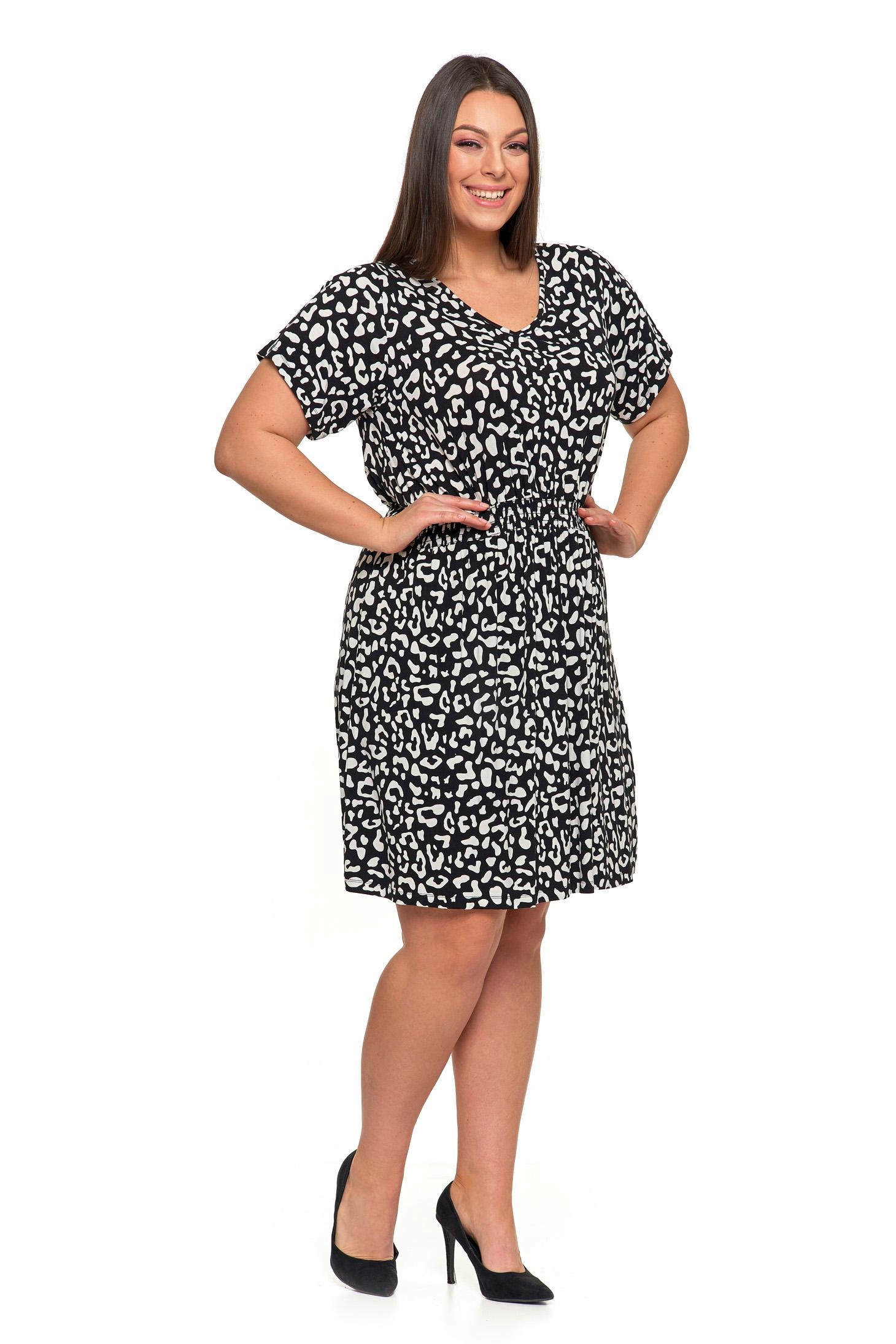 Krótka Sukienka Damska Do Kolan Modna Zwiewna Czarno Biała Panterka MORAJ