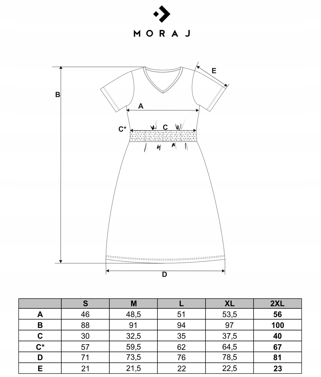 RozmiarSZEROKOŚĆ KLATKI PIERSIOWEJDŁUGOŚĆ CAŁKOWITASZEROKOŚĆ GUMKI (BEZ ROZCIĄGANIA/PO ROZCIĄGNIĘCIU)