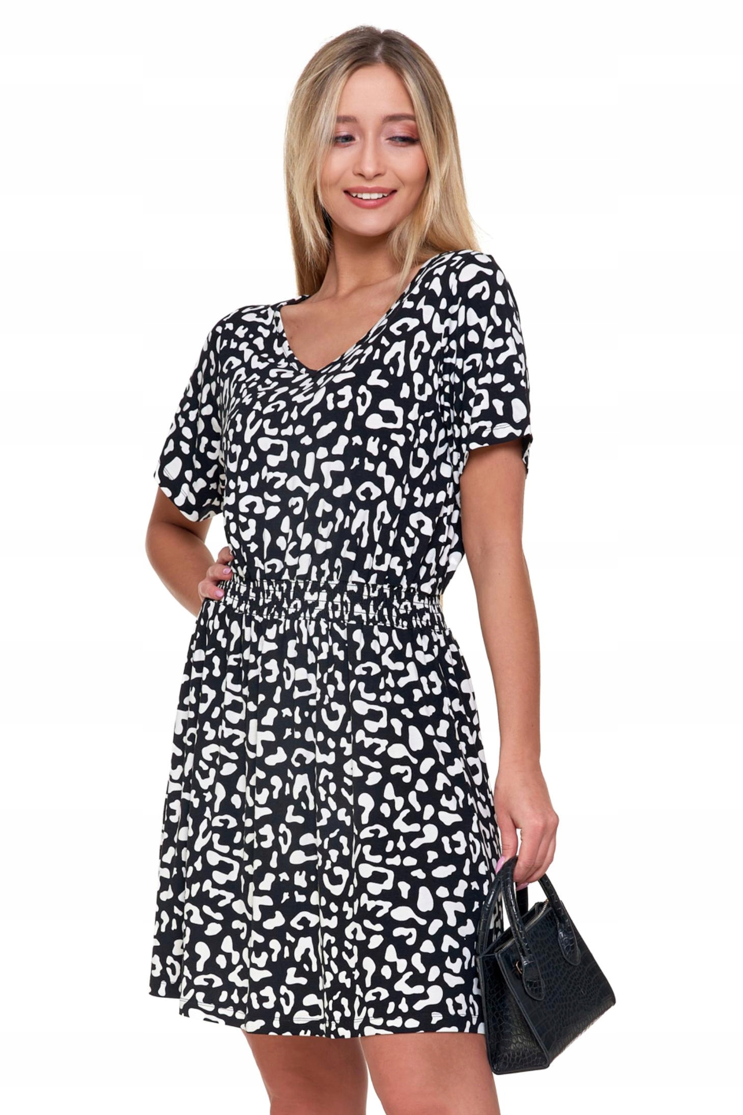 Opinie o Krótka Sukienka Damska Do Kolan Modna Zwiewna Czarno Biała Panterka MORAJ