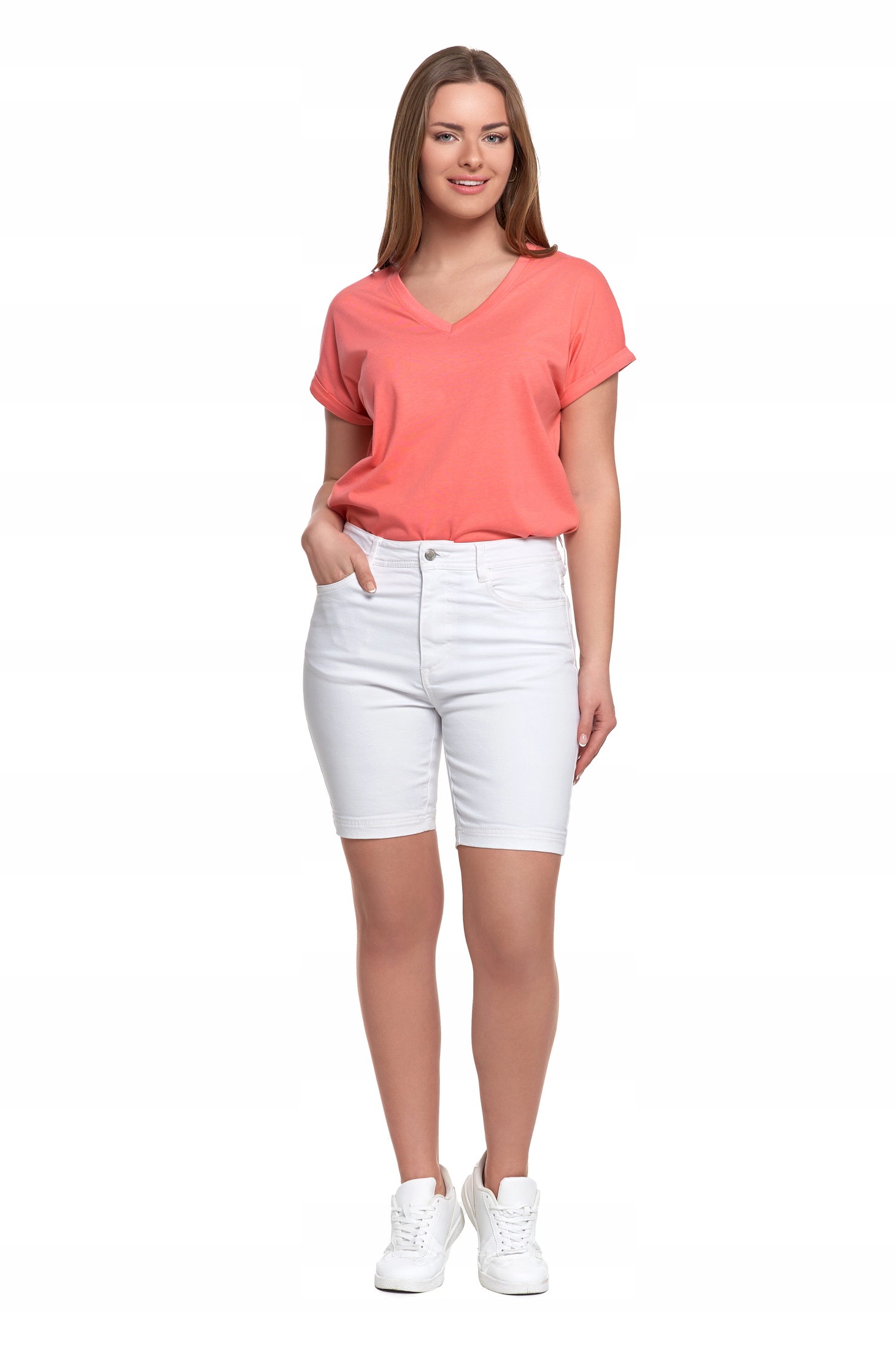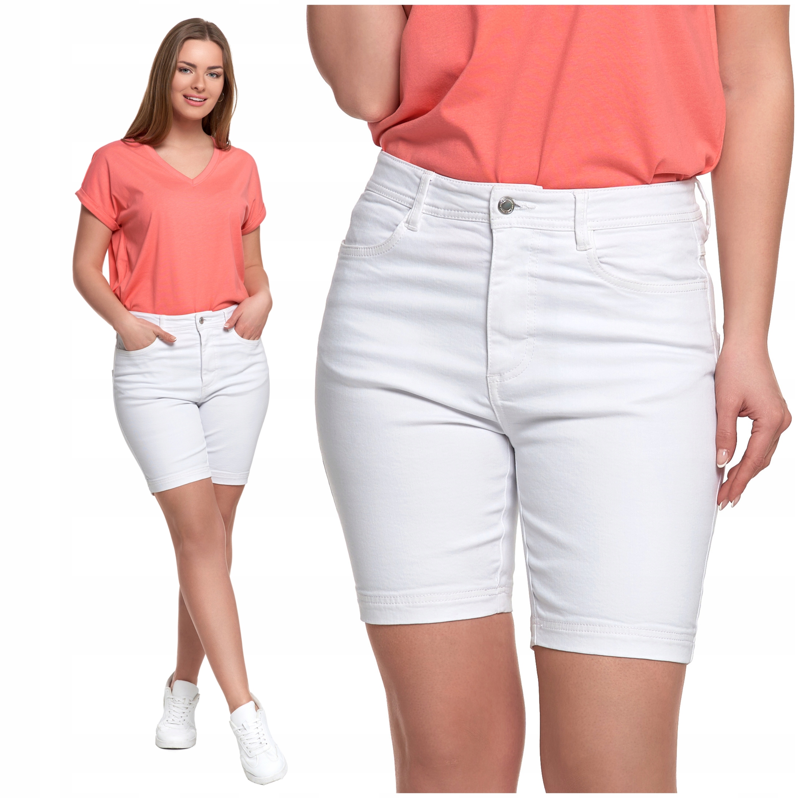 KRÓTKIE SPODENKI DAMSKIE PRZED KOLANO BIAŁE JEANSOWE WYGODNE MORAJ