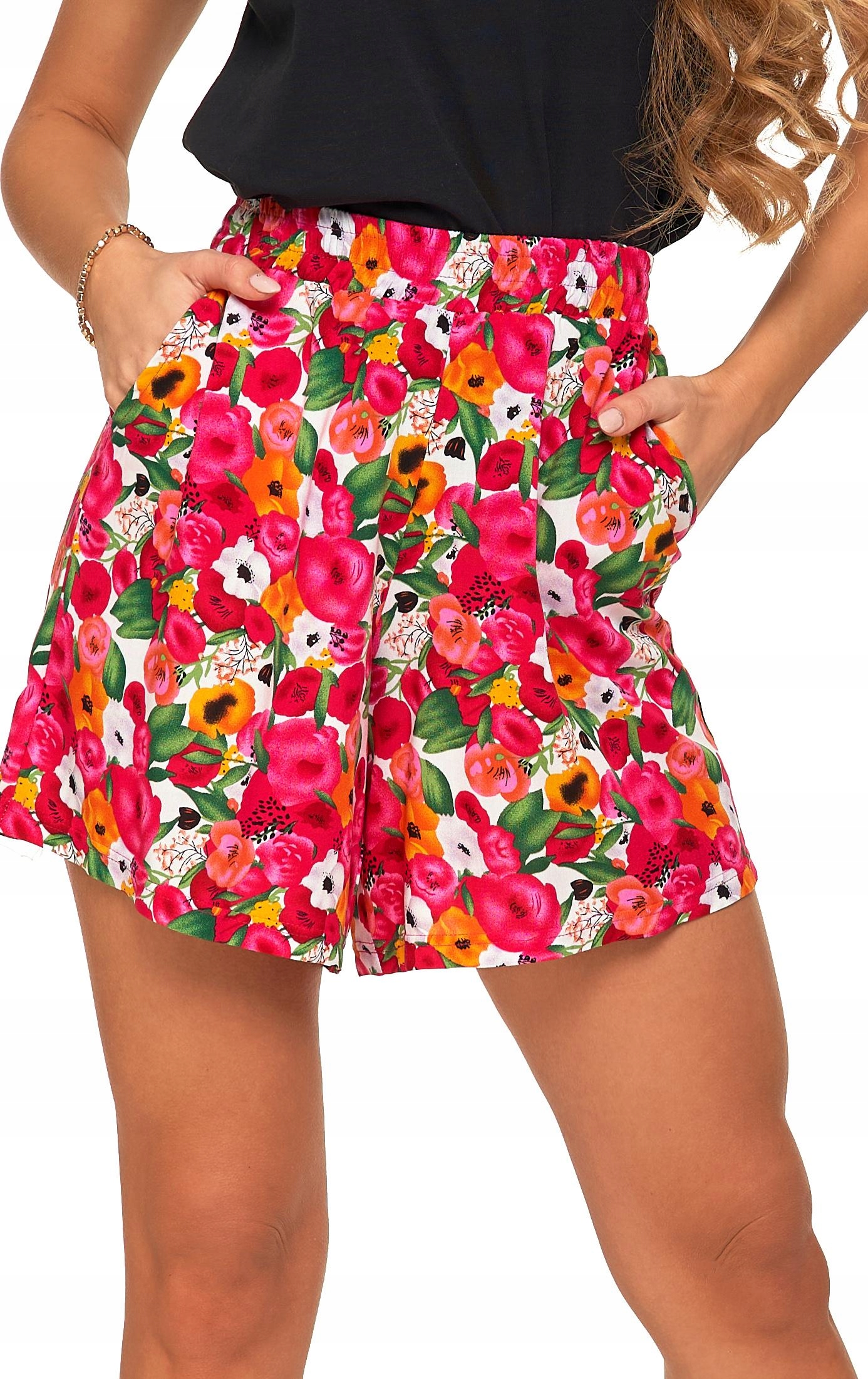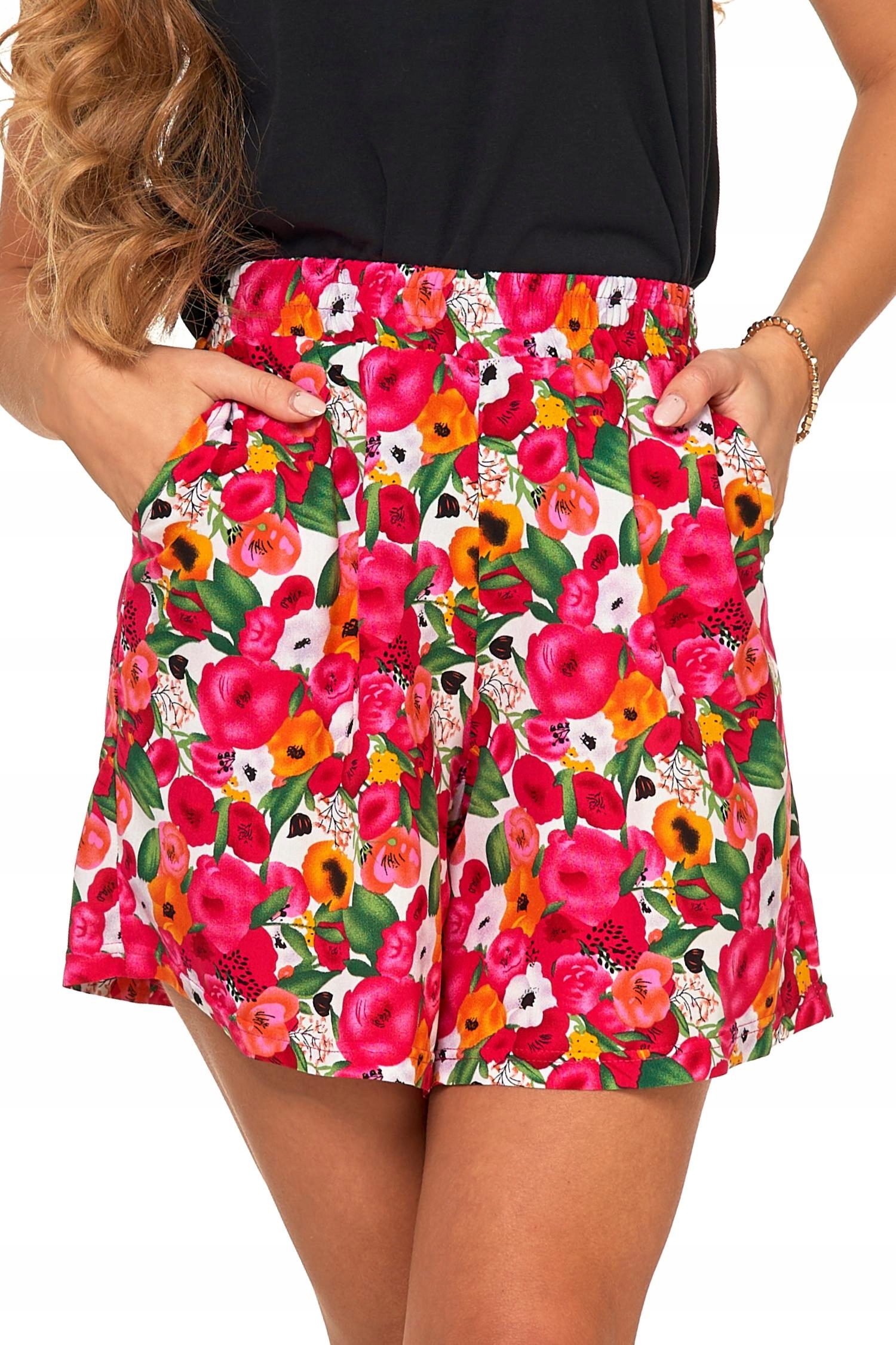 KRÓTKIE SPODENKI DAMSKIE Szorty z Wiskozy Na Lato Kolorowe Kwiaty MORAJ