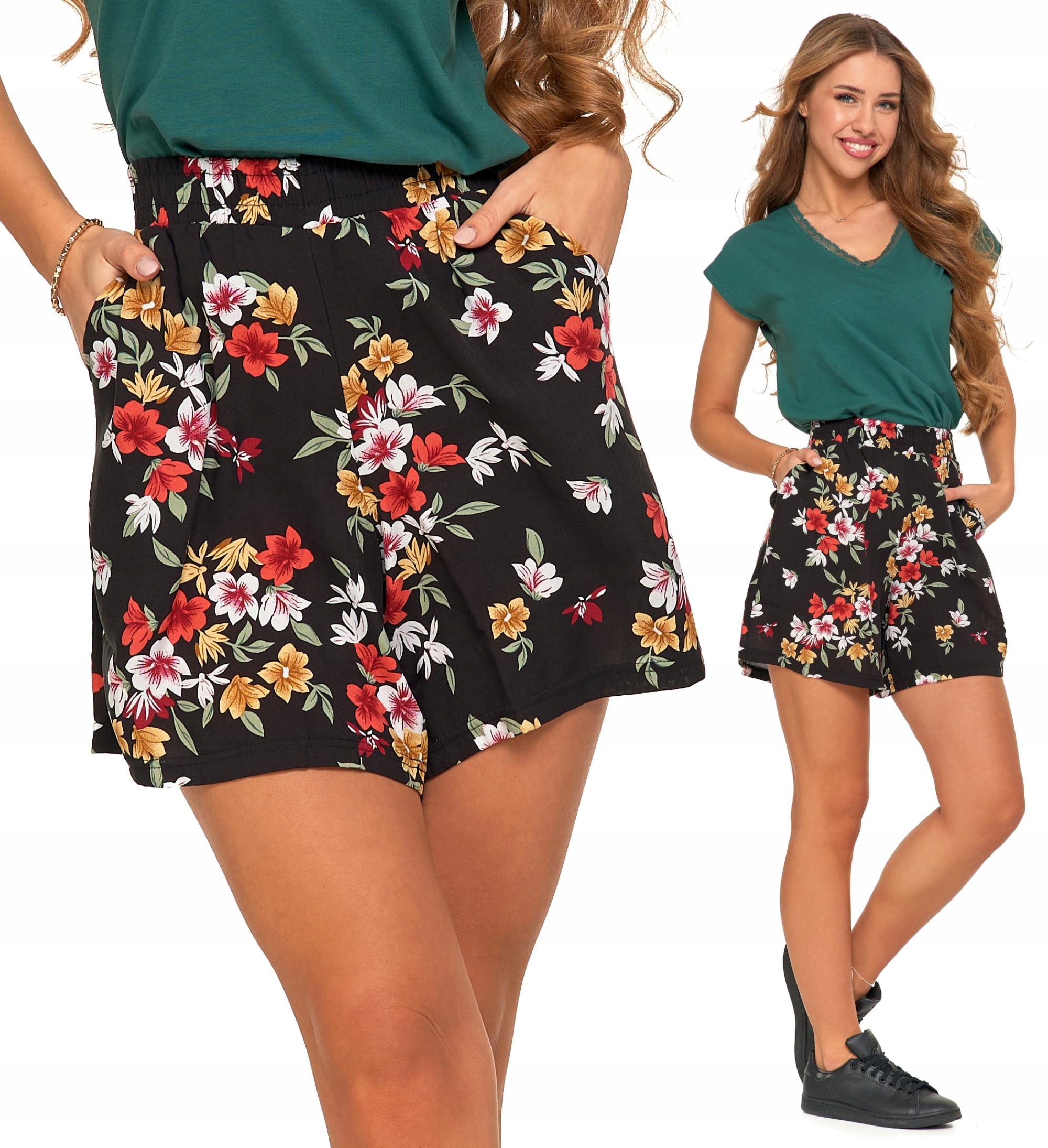 KRÓTKIE SPODENKI DAMSKIE Szorty z Wiskozy Na Lato Modne w Kwiaty MORAJ
