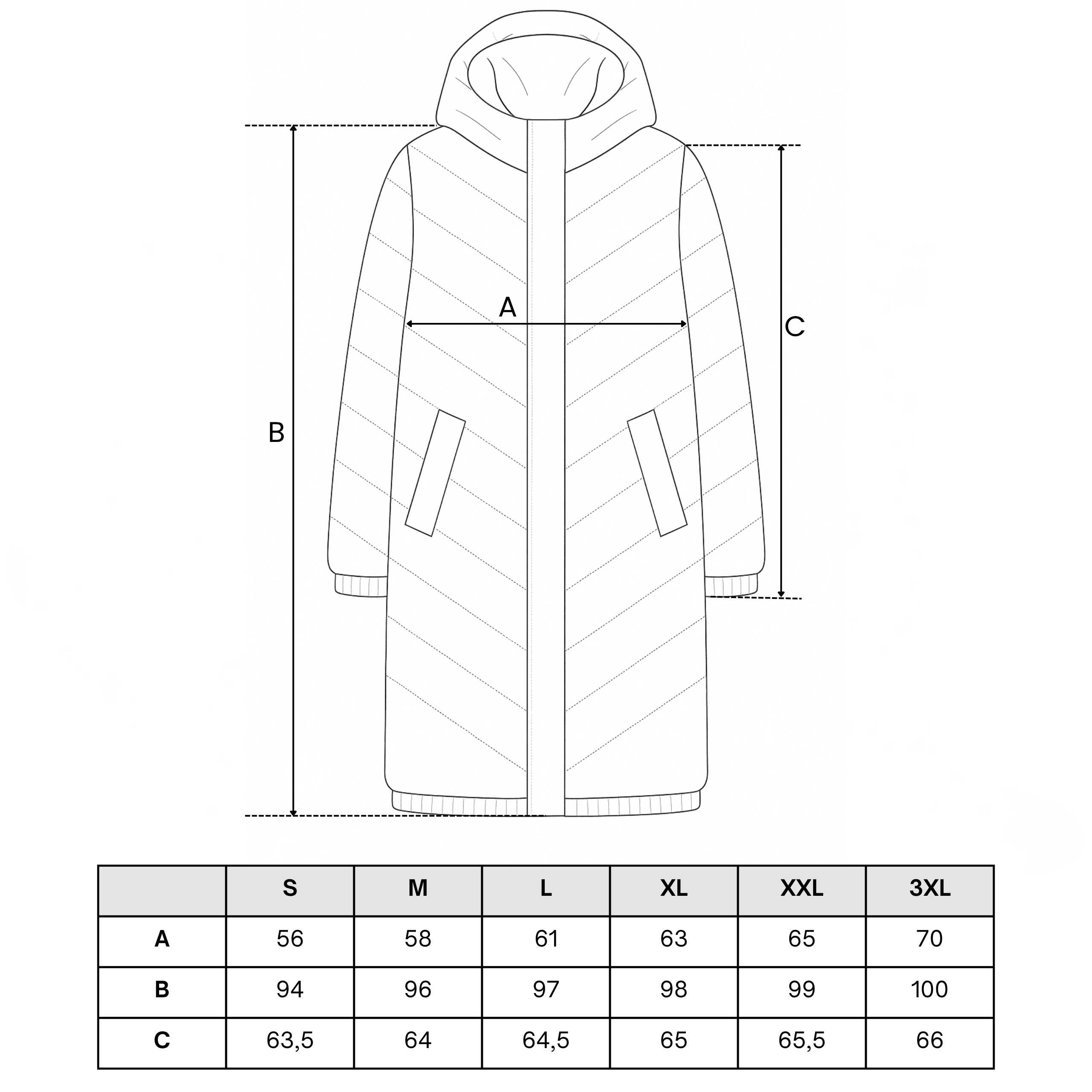 Otul się komfortem i wygodą na zimowe dni! Ta długa kurtka damska typu płaszcz pikowany to świetny wybór dla kobiet, które szukają maksymalnego ciepła i modnego, miejskiego wyglądu.
