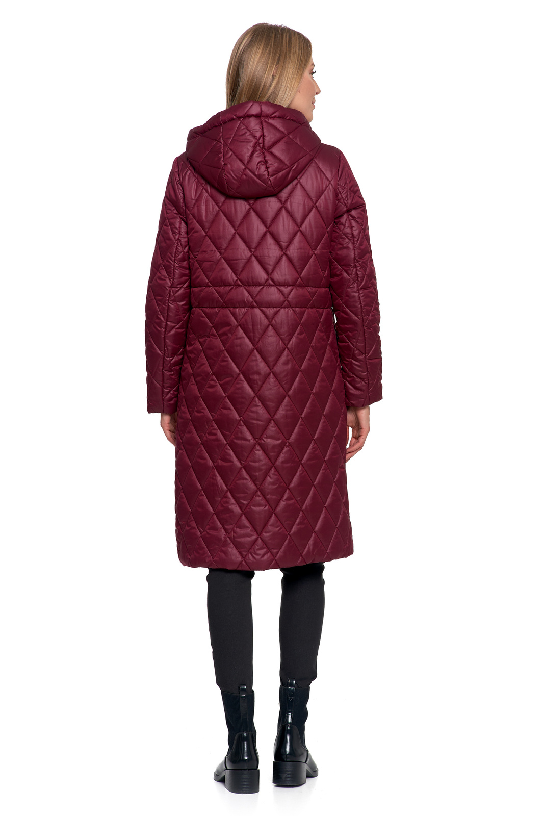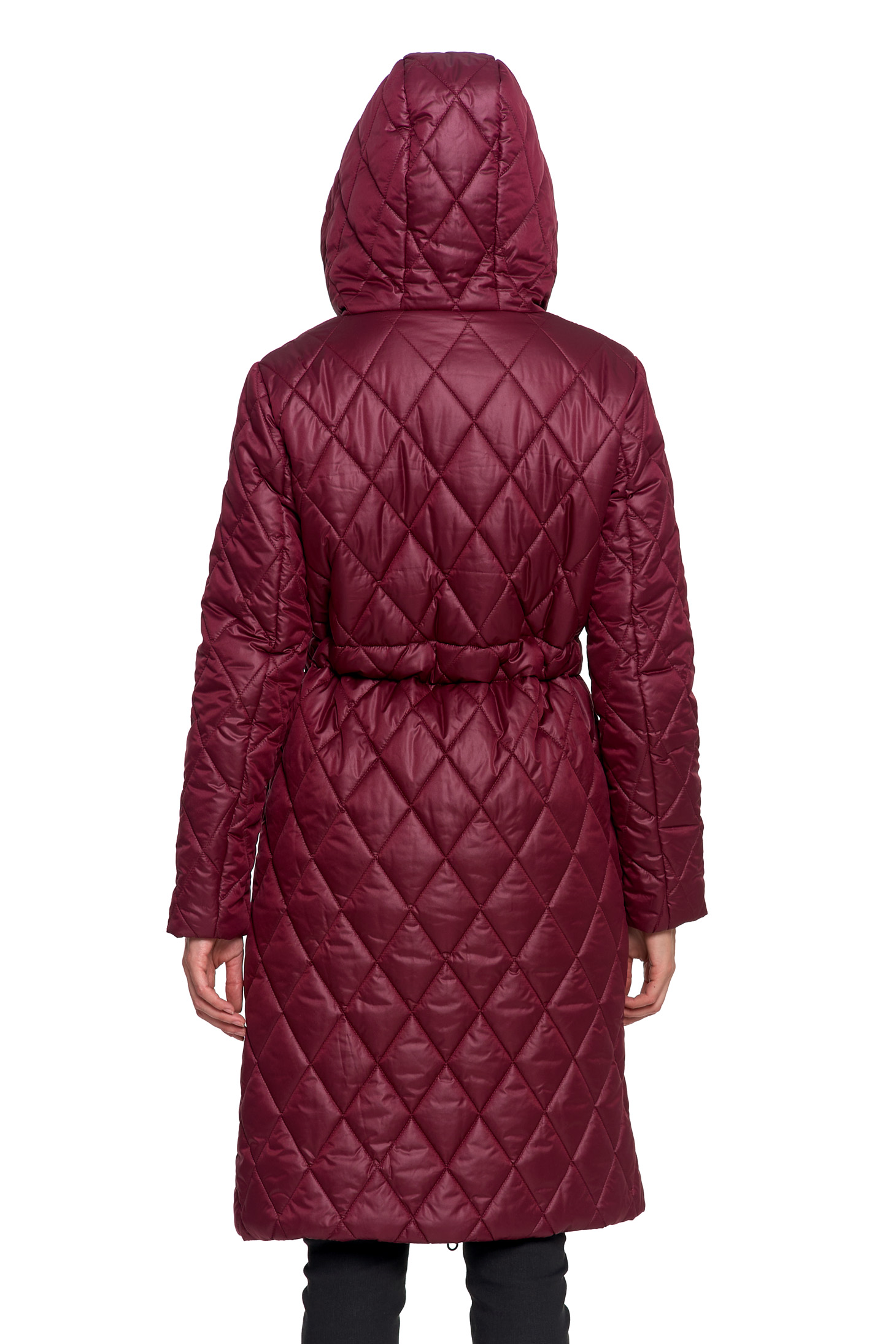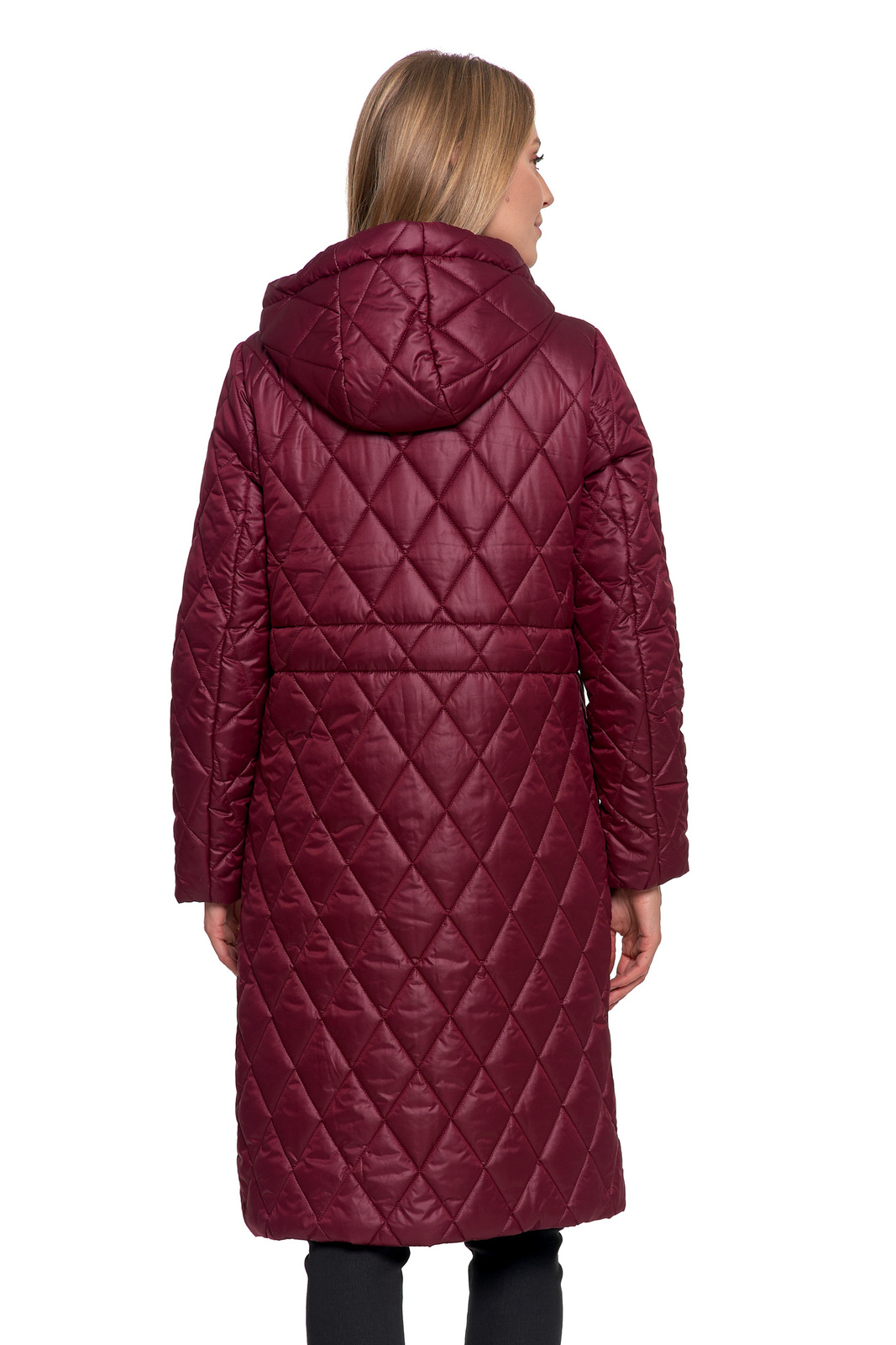 Elegancja i Komfort: Długa Pikowana Kurtka w Romby z Regulacją Talii