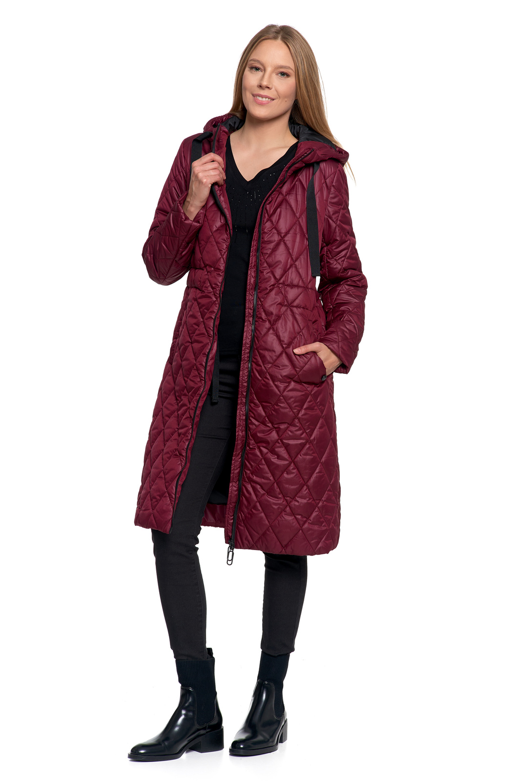 Ta długa pikowana kurtka damska to idealne połączenie klasyki i nowoczesnego stylu, które doskonale sprawdzi się w chłodniejsze dni. Jest lekka, ciepła i zaprojektowana, by pięknie podkreślać kobiecą sylwetkę.