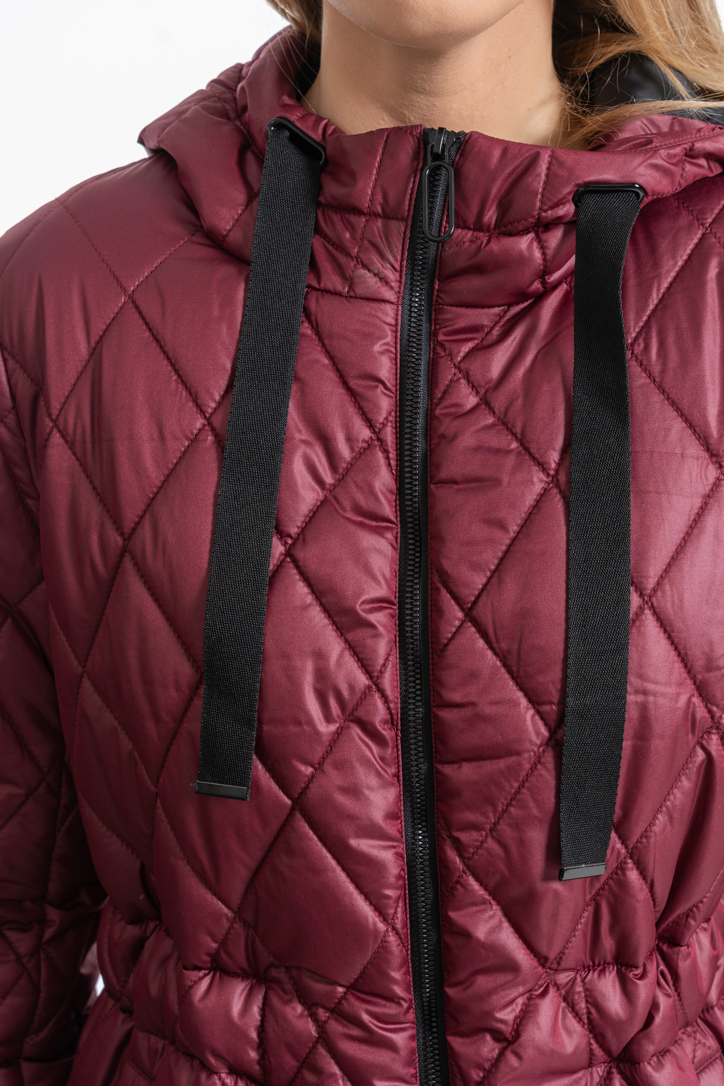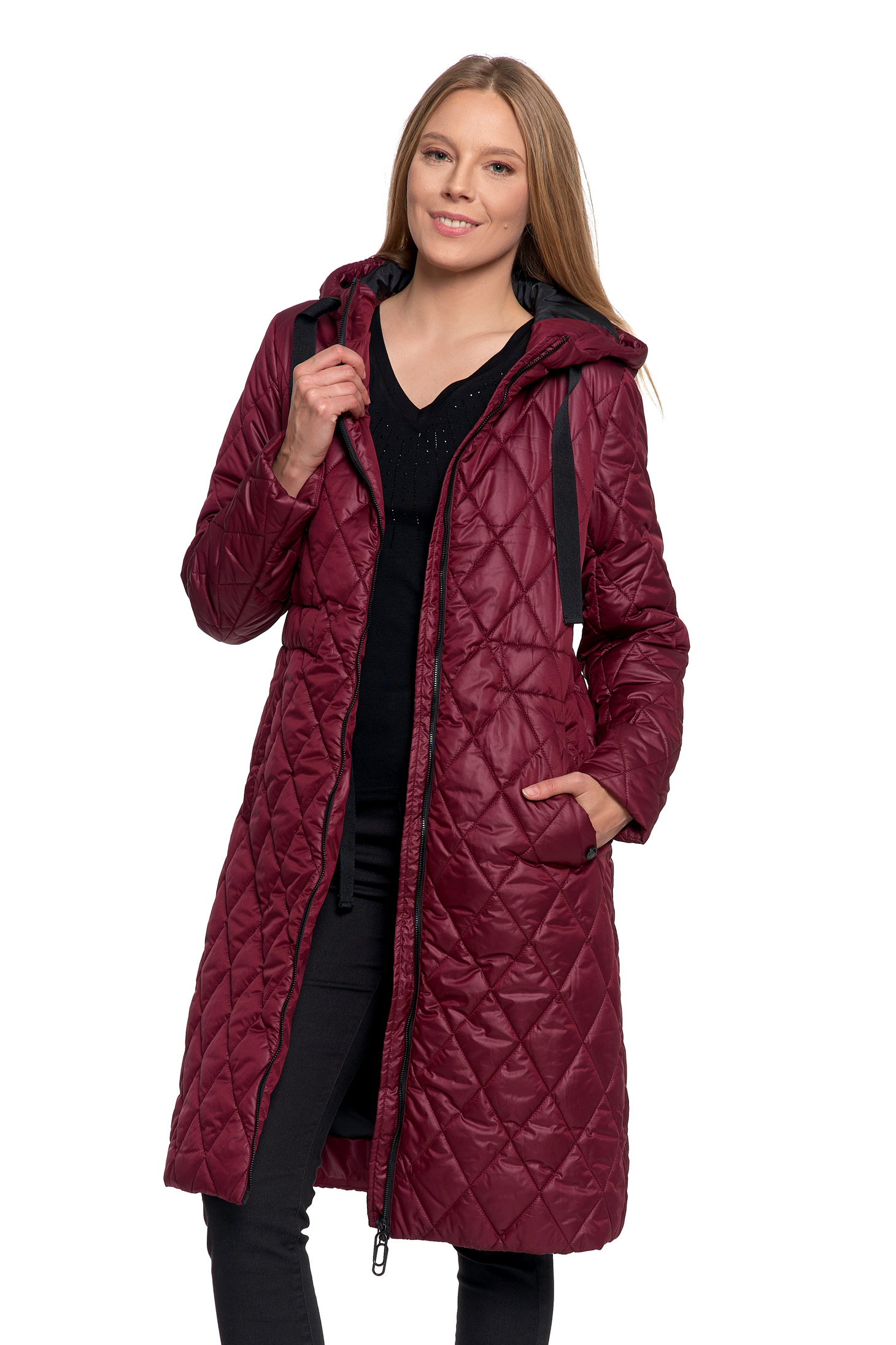 KURTKA DAMSKA DŁUGA PŁASZCZ Z KAPTUREM PIKOWANY NA JESIEŃ MODNY MORAJ