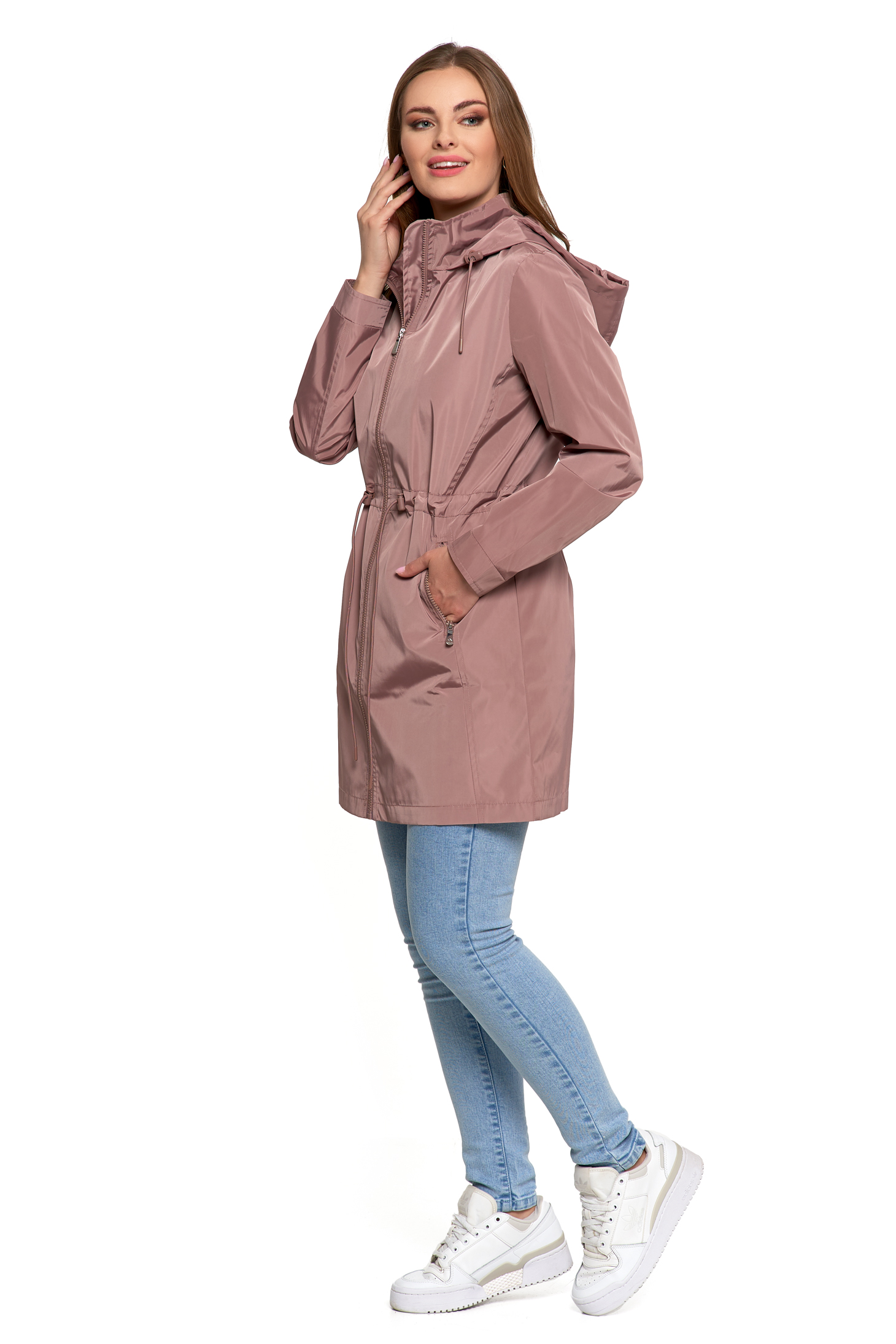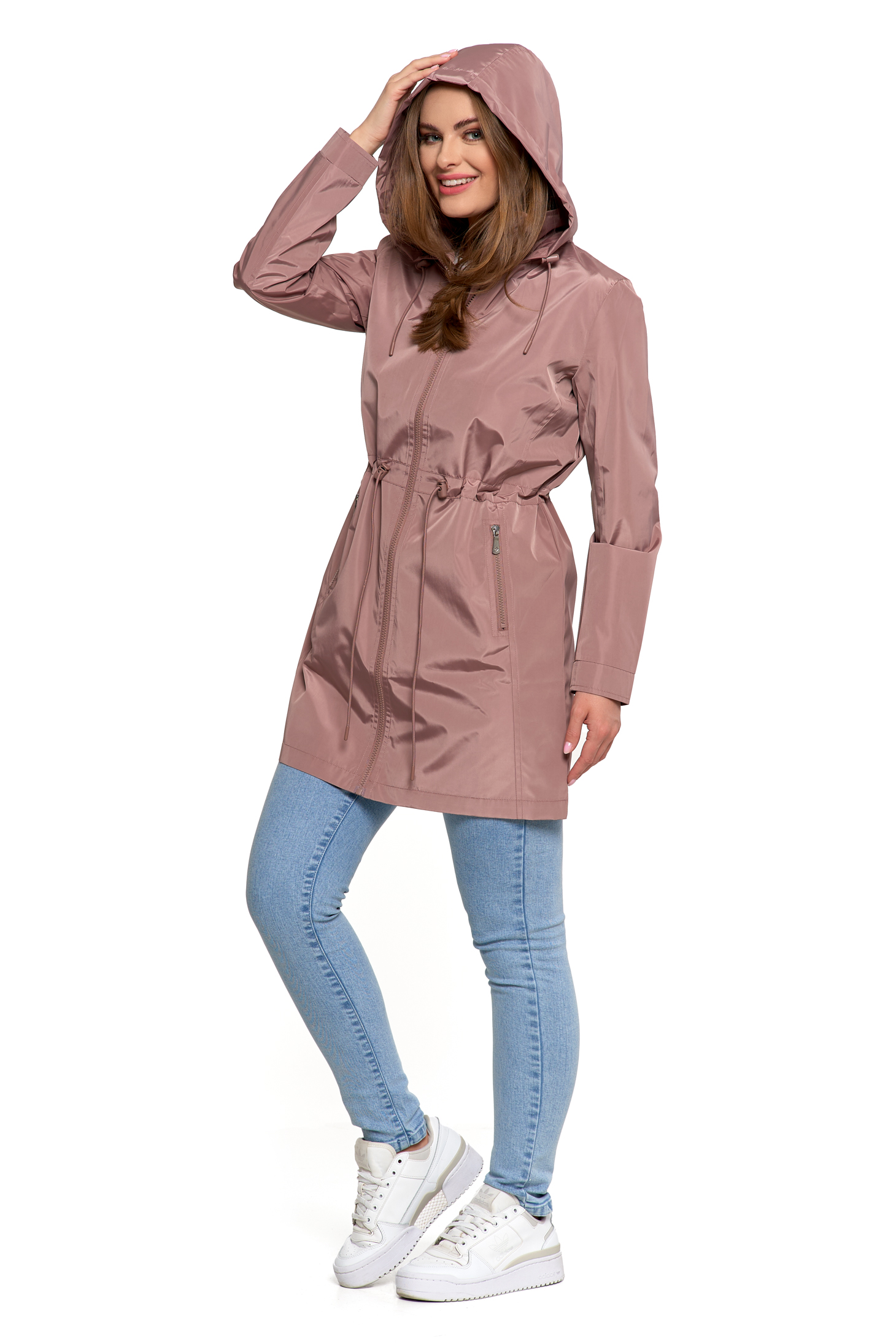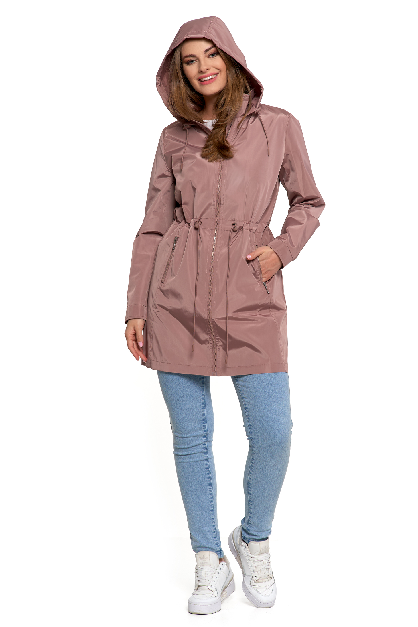 Ta klasyczna parka to idealny wybór na wiosnę i jesień – lekka, praktyczna i stylowa. Dłuższy fason z subtelnym wcięciem w talii pięknie podkreśla sylwetkę, zapewniając jednocześnie ochronę przed chłodem i wiatrem. Regulowany kaptur sprawdzi się podczas nieprzewidywalnej pogody, a dwie zapinane na suwak kieszenie pomieszczą wszystkie najpotrzebniejsze drobiazgi.