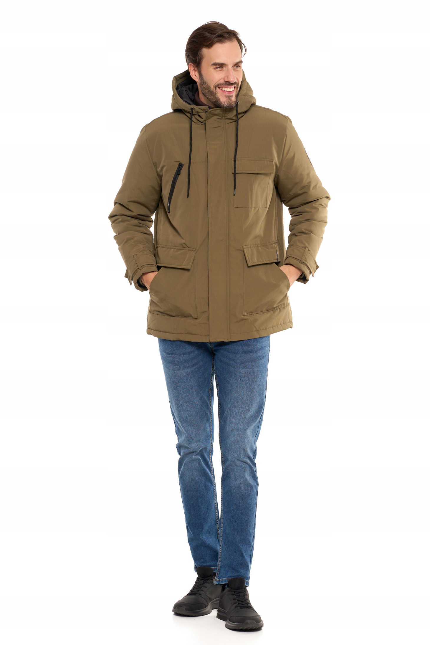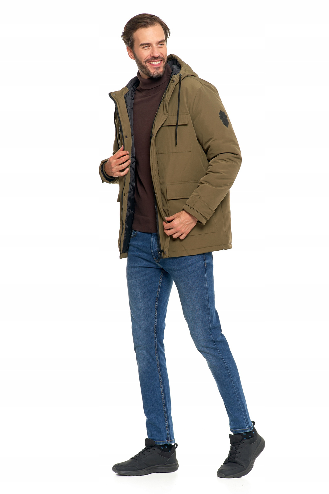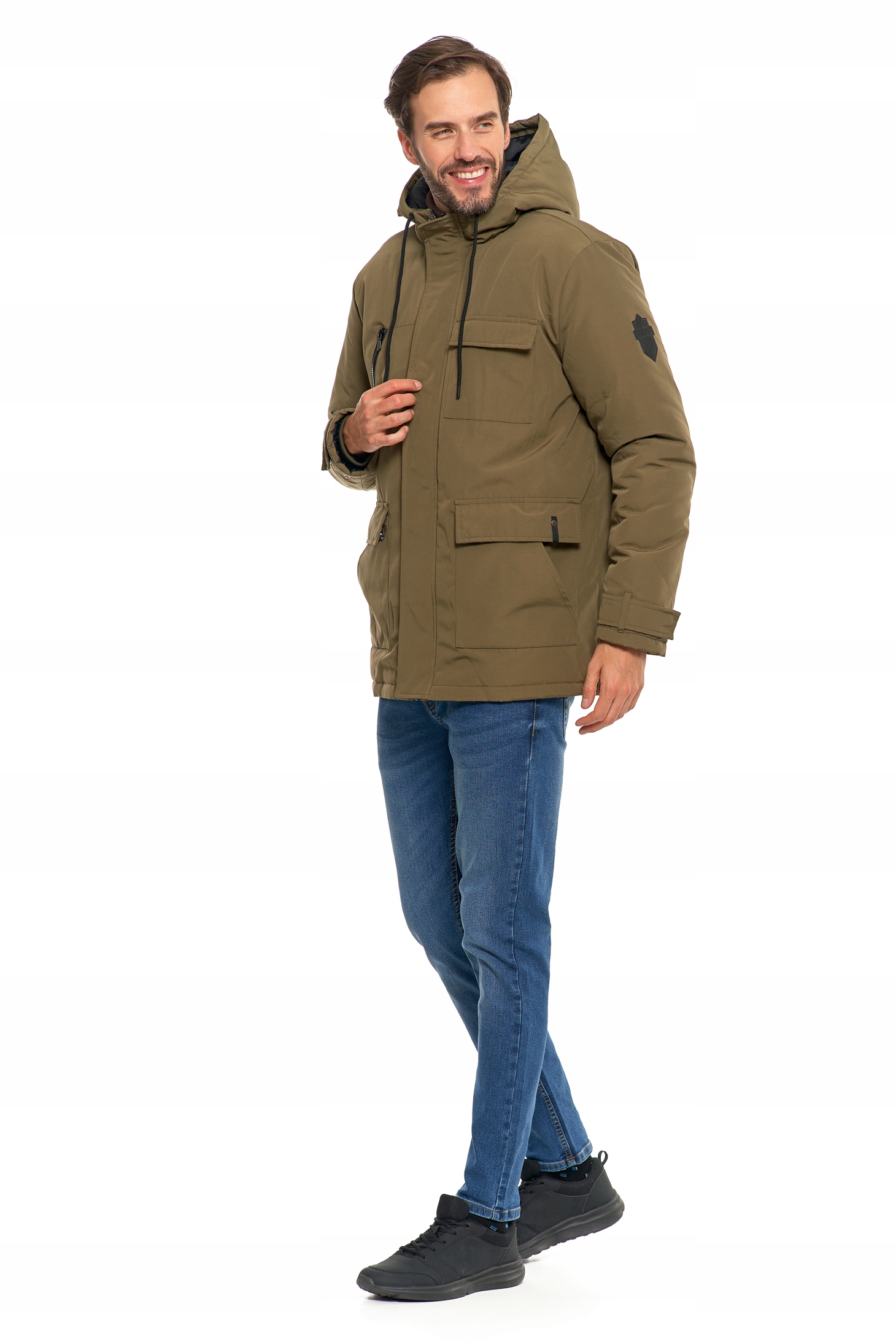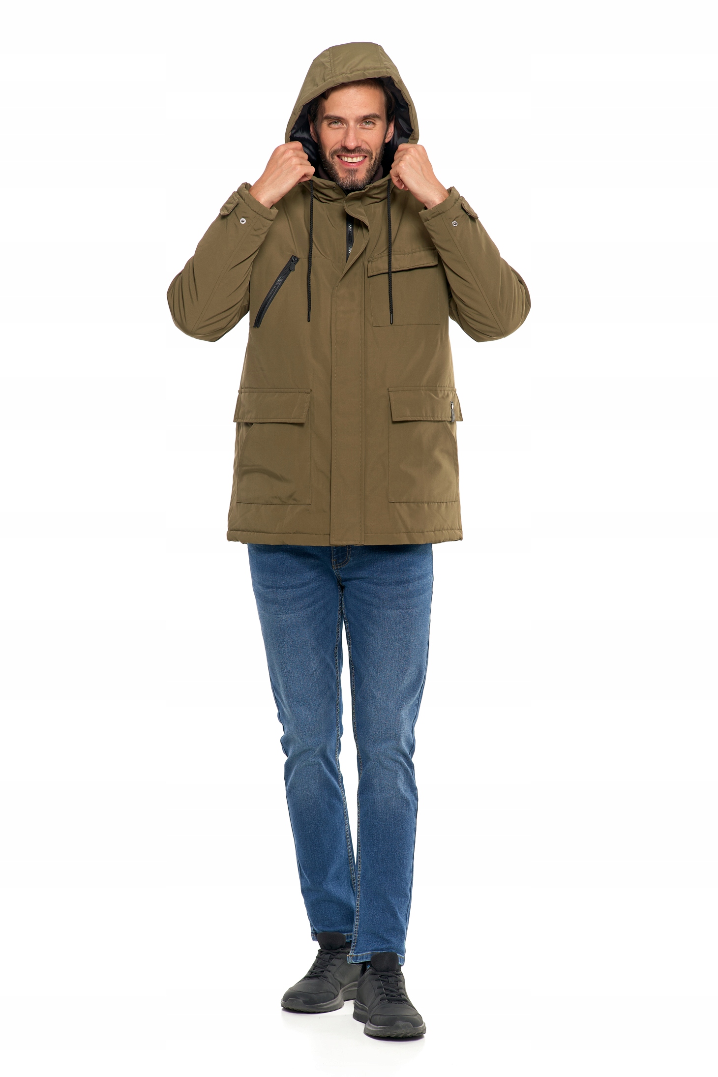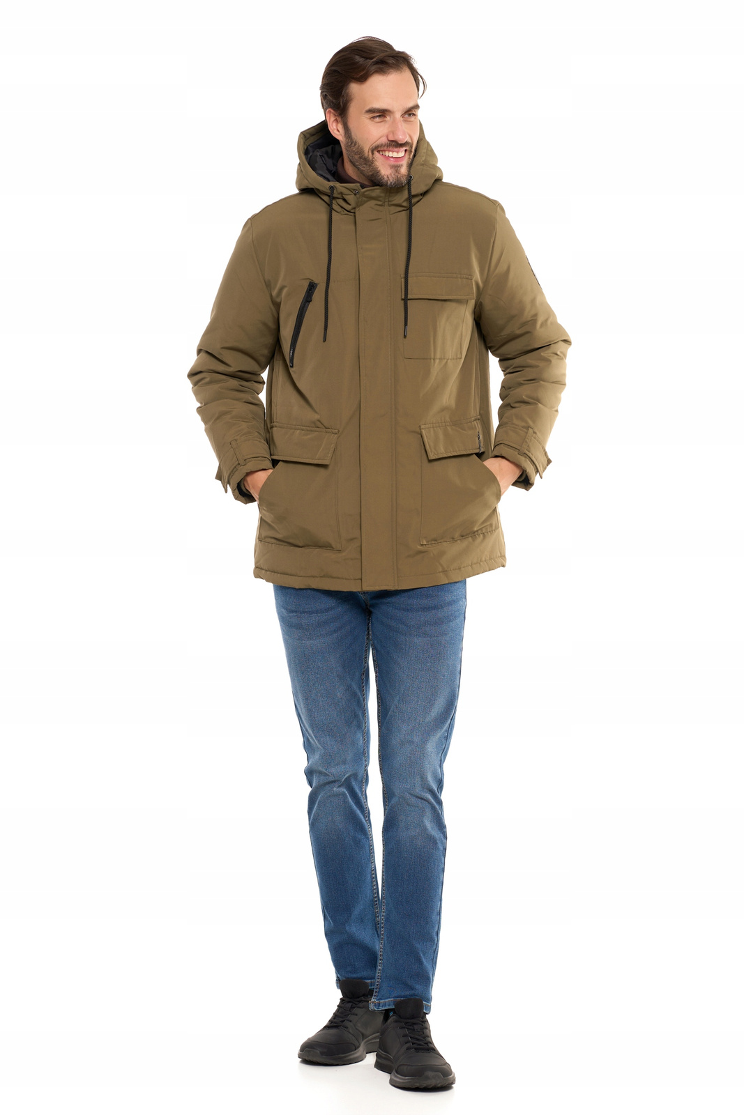 Kurtka posiada praktyczny kaptur chroniący przed wiatrem, który można regulować za pomocą ściągaczy. Dodatkowo, wyróżnia ją zestaw funkcjonalnych kieszeni typu cargo - zapinanych, pojemnych i idealnych do przechowywania najpotrzebniejszych rzeczy, takich jak telefon, portfel czy rękawiczki. Wygodne kieszenie boczne oraz kieszeń na piersi dodają jej jeszcze większej praktyczności. Regulowane mankiety oraz zamek błyskawiczny z dodatkową patką zapinaną na rzepy i guziki zapewniają dodatkową ochronę przed zimnem.