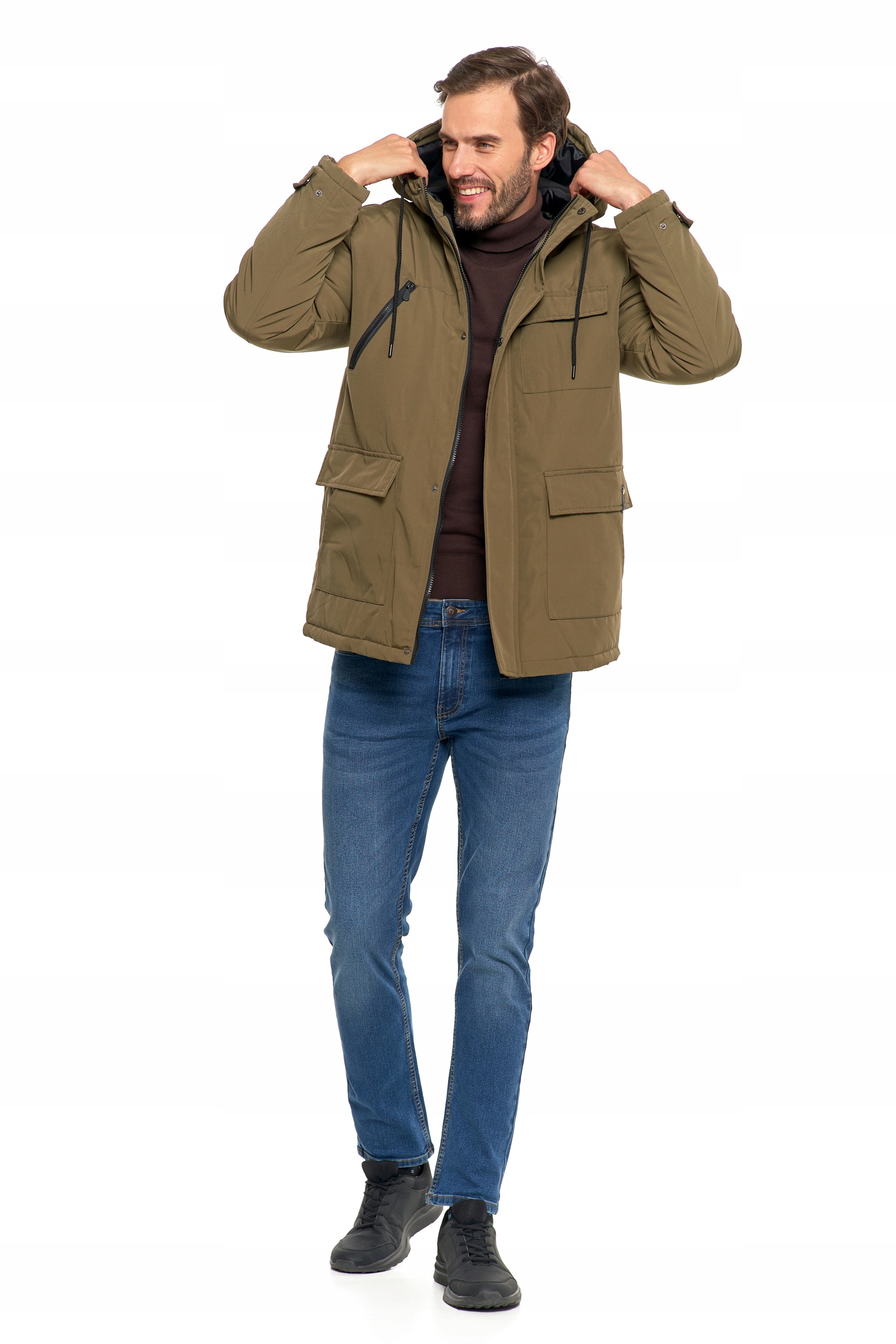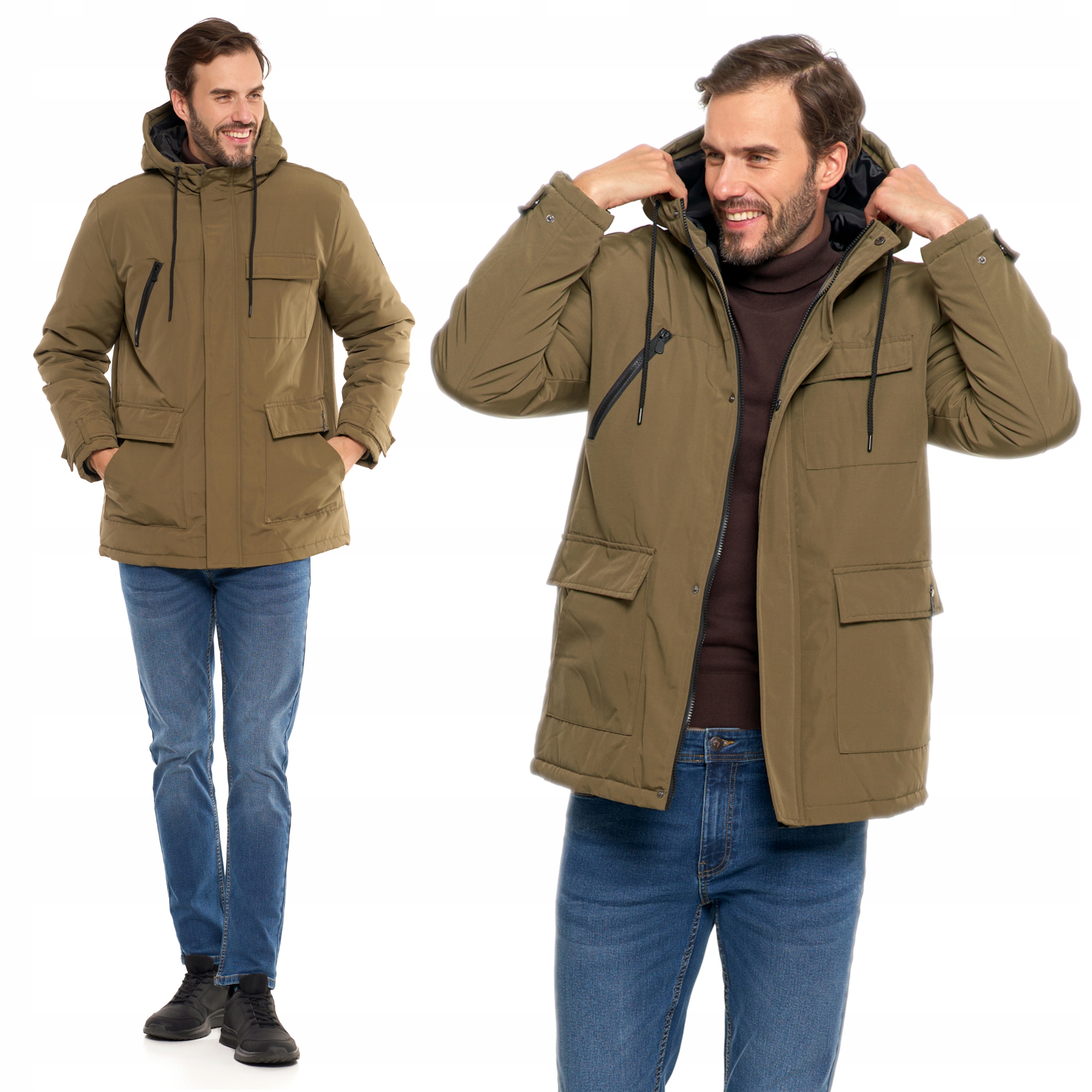 Kurtka Zimowa Męska z Kieszeniami i Kapturem Ciepła Modna Wygodna MORAJ
