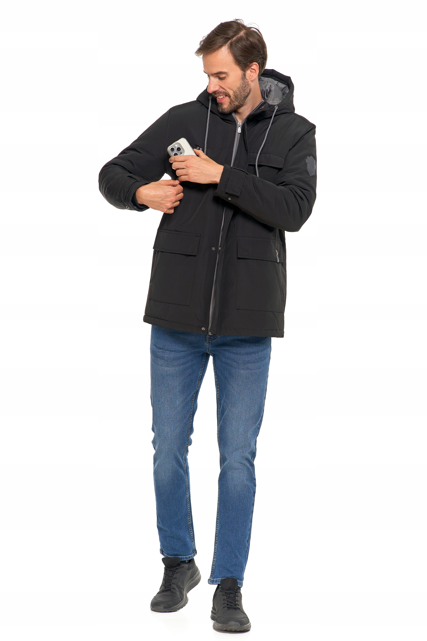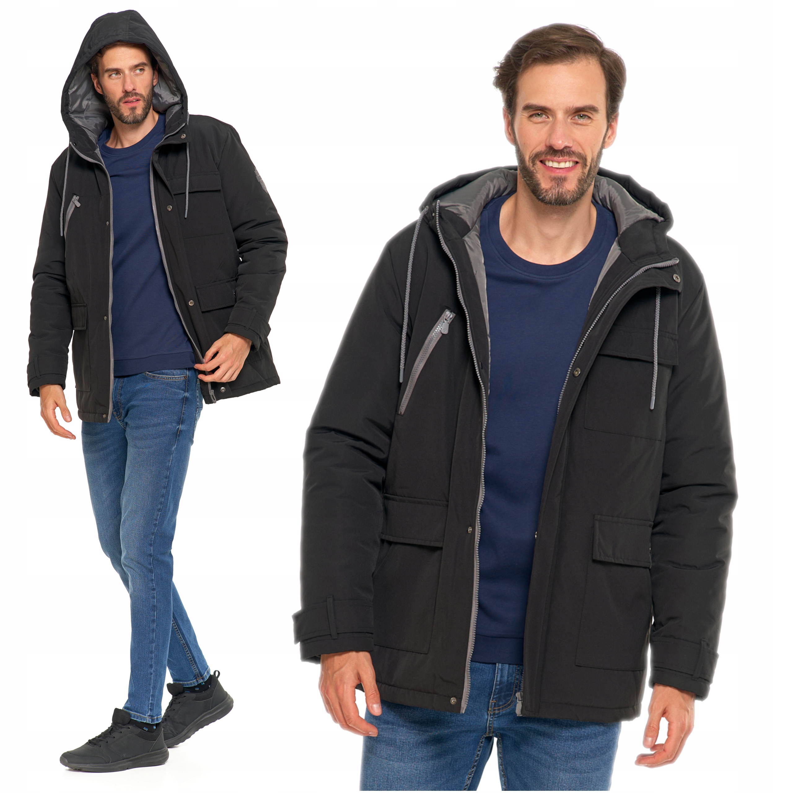Kurtka Zimowa Męska z Kieszeniami i Kapturem Ciepła Modna Wygodna MORAJ