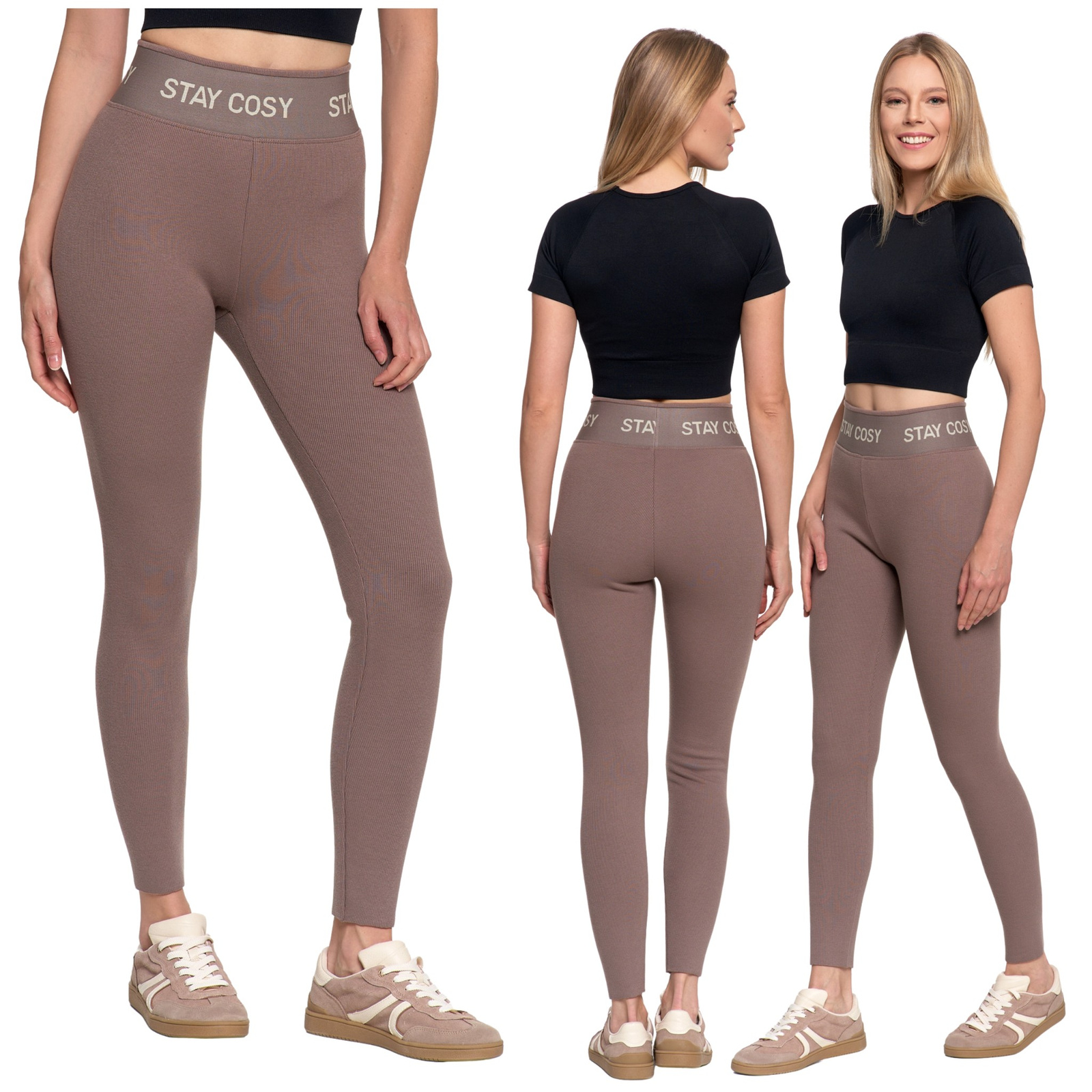 Ciepło, Styl i Komfort: Damskie Legginsy Ocieplane w Prążek z Wysokim Stanem