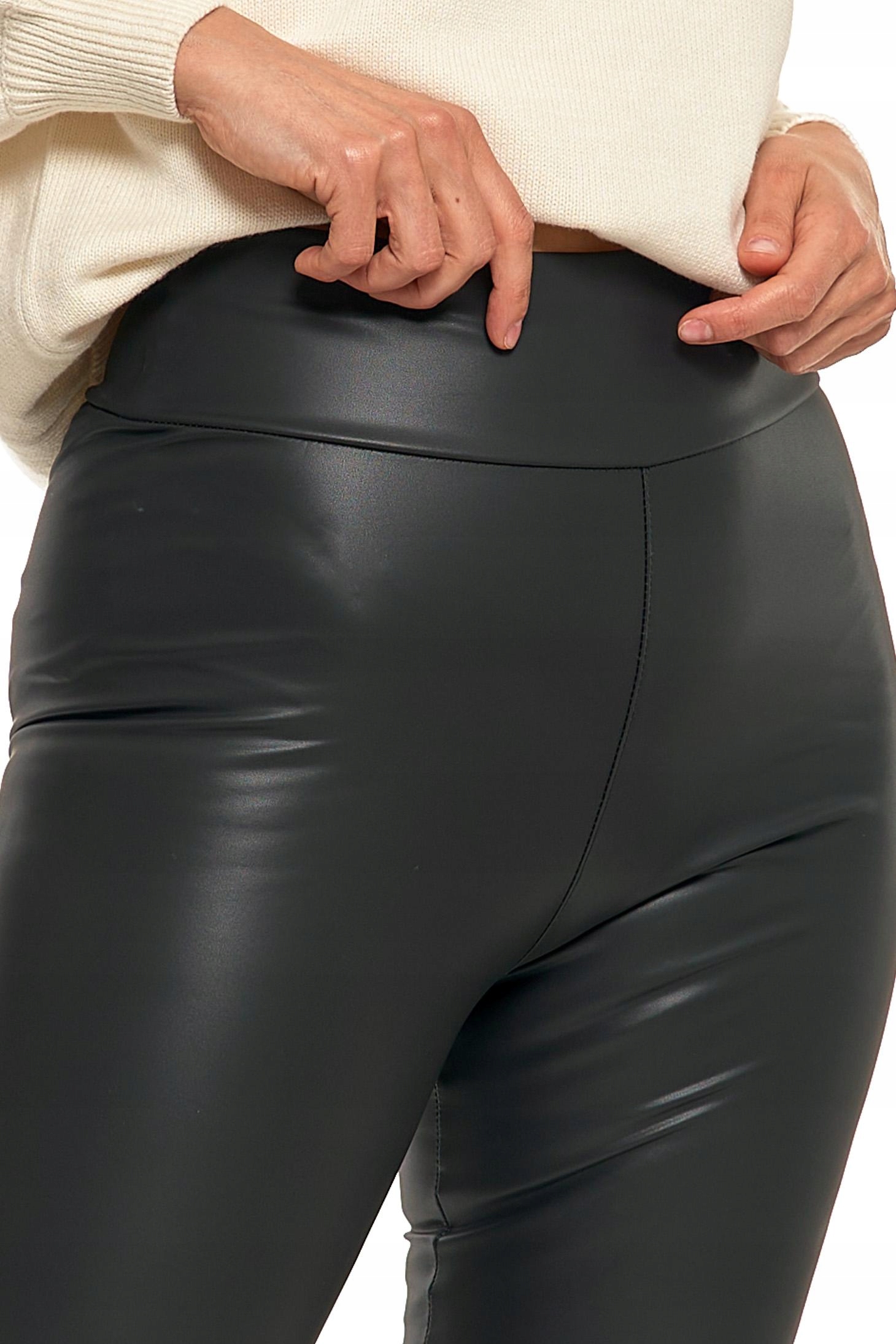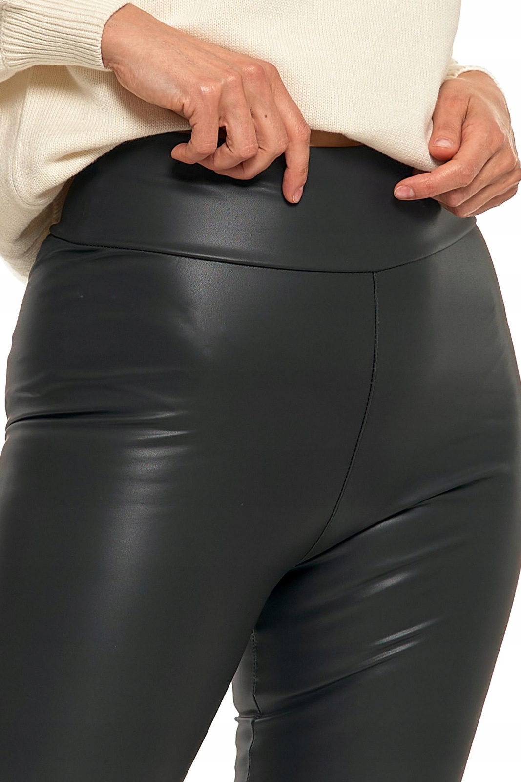 Legginsy Damskie Ocieplane z Eko Skóry Spodnie z Wysokim Stanem MORAJ
