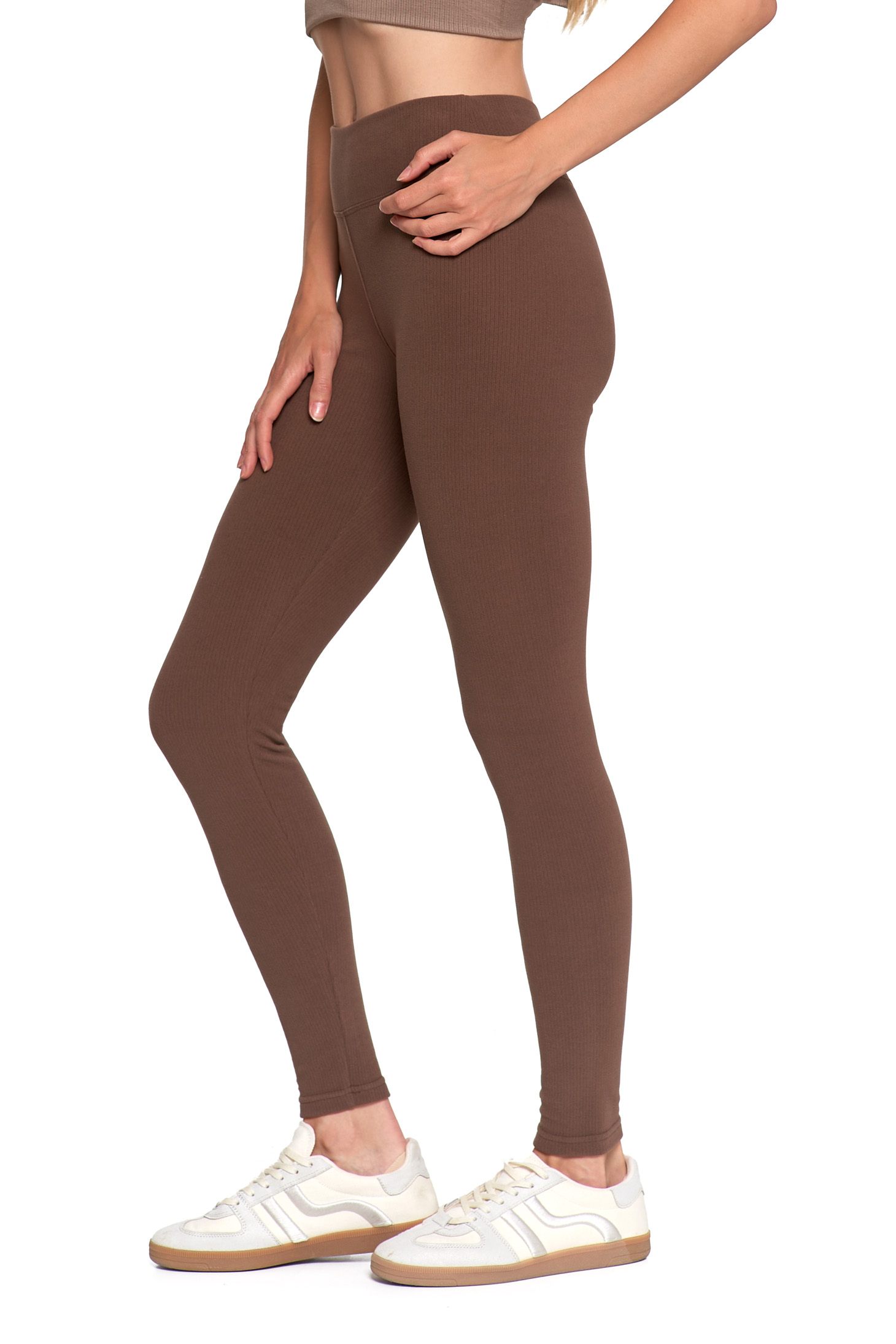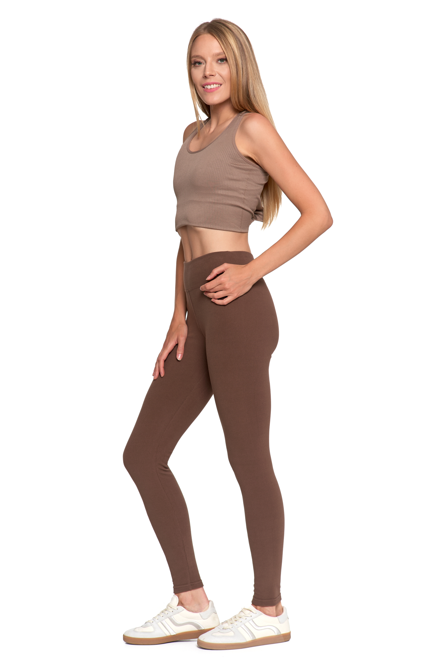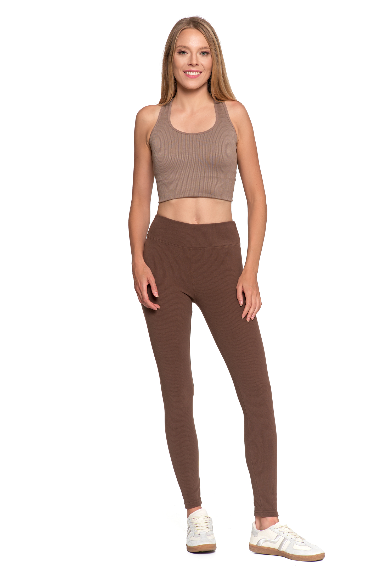 Te długie legginsy to idealny wybór, gdy szukasz maksymalnego komfortu w modnym wydaniu. Uszyte z miękkiej, elastycznej dzianiny prążkowanej, idealnie dopasowują się do sylwetki, zapewniając swobodę ruchu przez cały dzień.