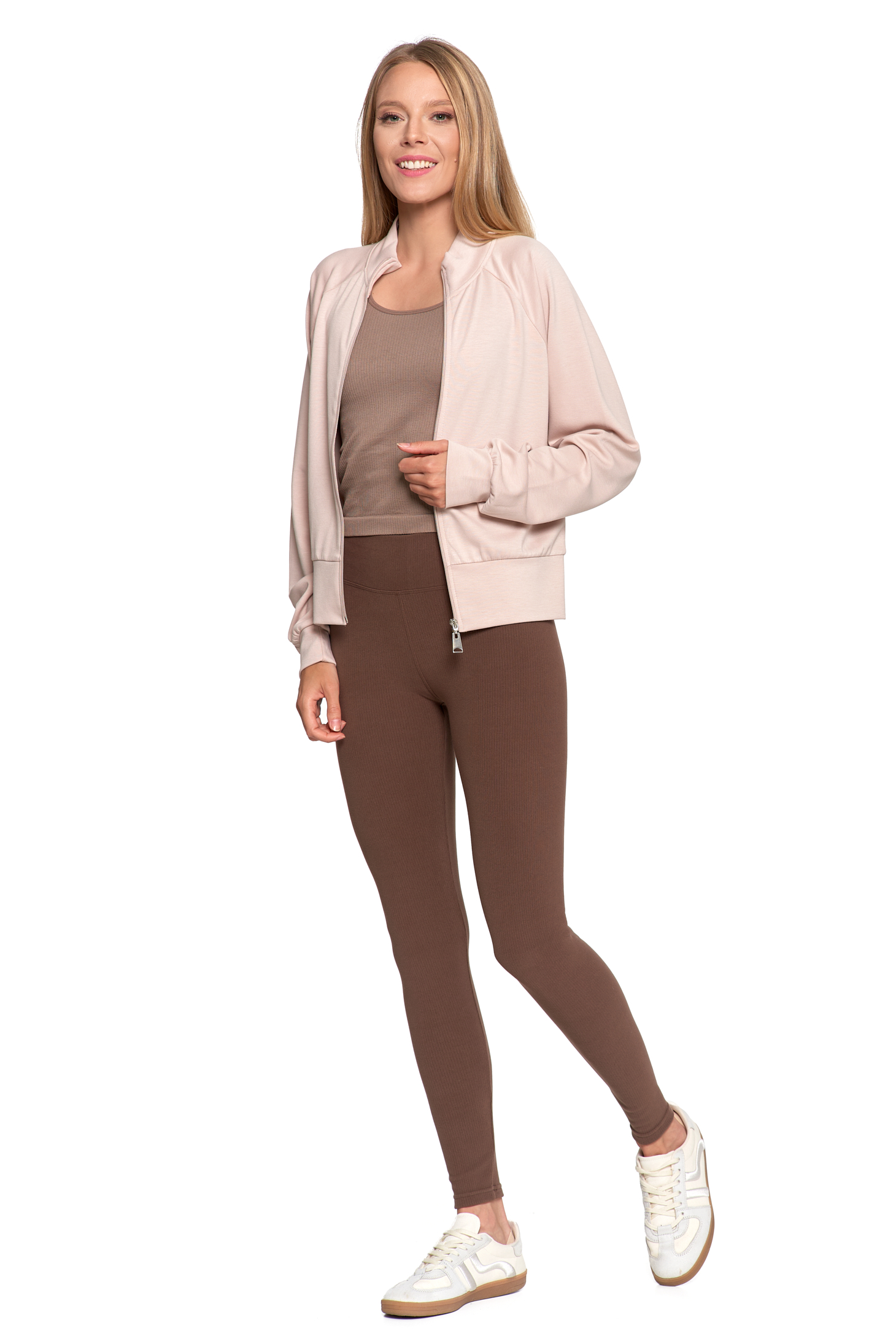 - Design: Jednolita struktura bez wzoru sprawia, że legginsy są uniwersalną bazą do wielu stylizacji.