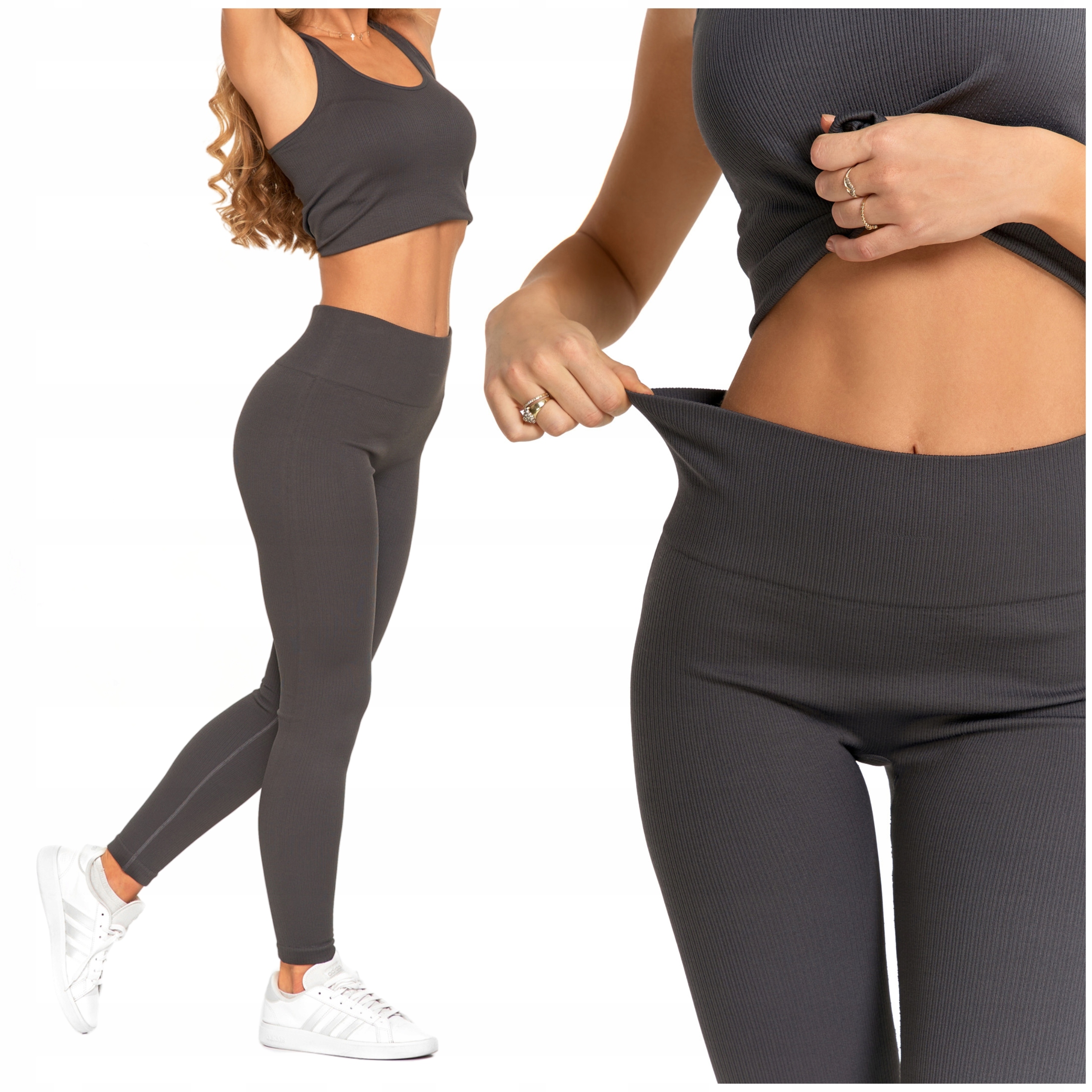 Legginsy Damskie Sportowe Wysoki Stan Kryjące Prążkowane Wygodne MORAJ