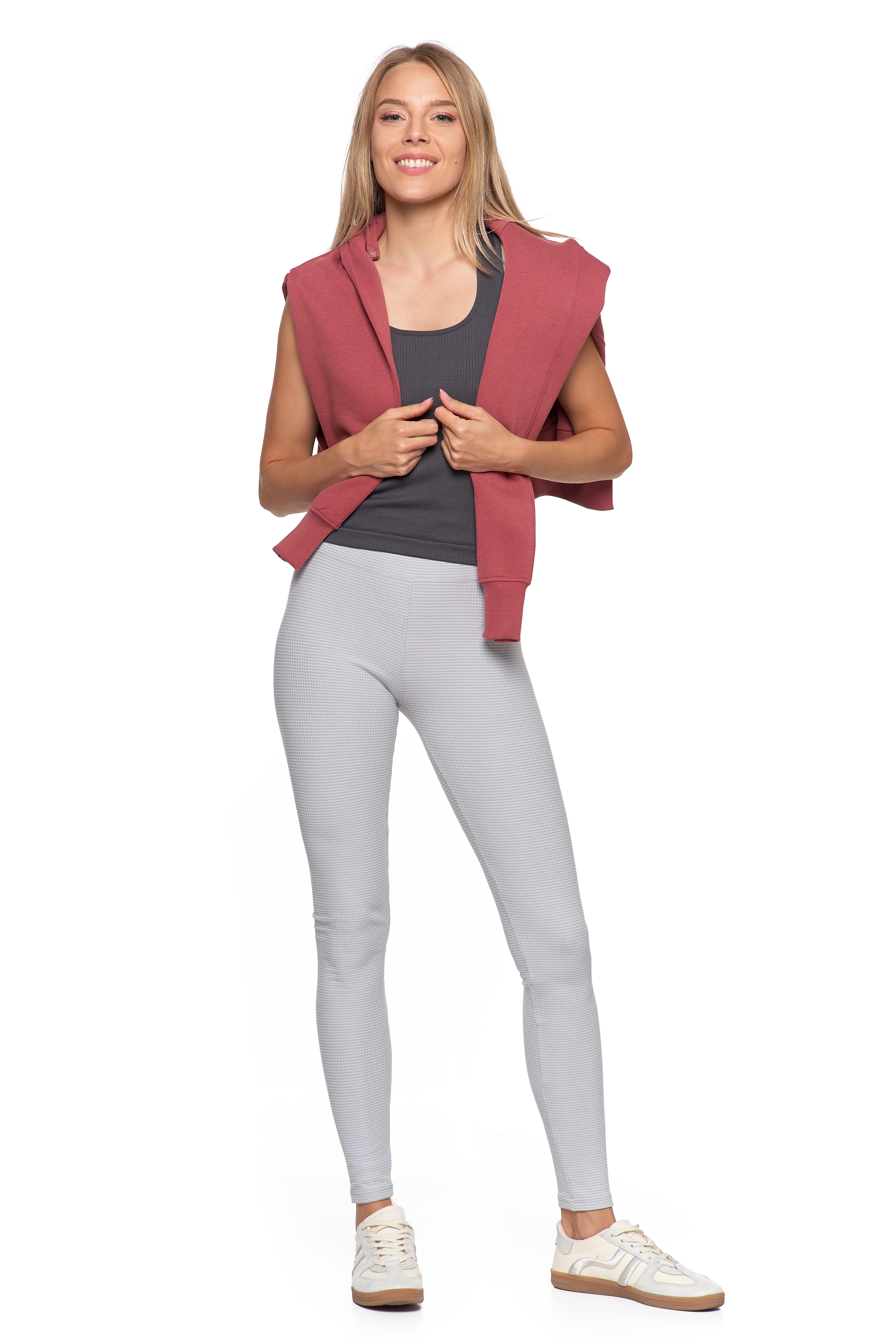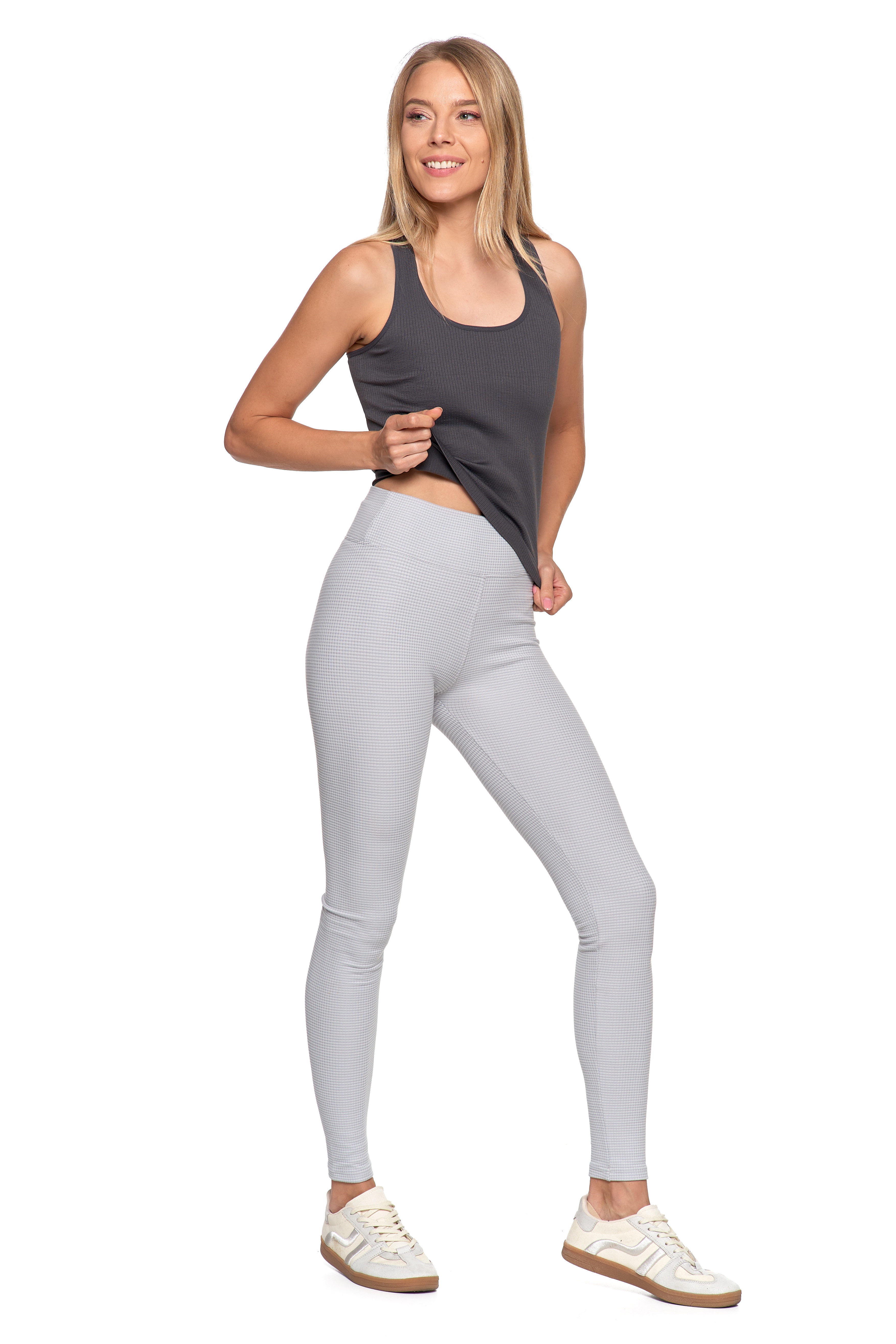 Te legginsy to idealny wybór na jesień i zimę. Wykonane z ciepłego, grubszego materiału o gramaturze 170 g/m², zapewniają komfort termiczny i wygodę noszenia, a jednocześnie prezentują się niezwykle stylowo. Prążkowana struktura z efektem gofrowym dodaje im modnego charakteru, sprawiając, że staną się bazą wielu codziennych stylizacji.