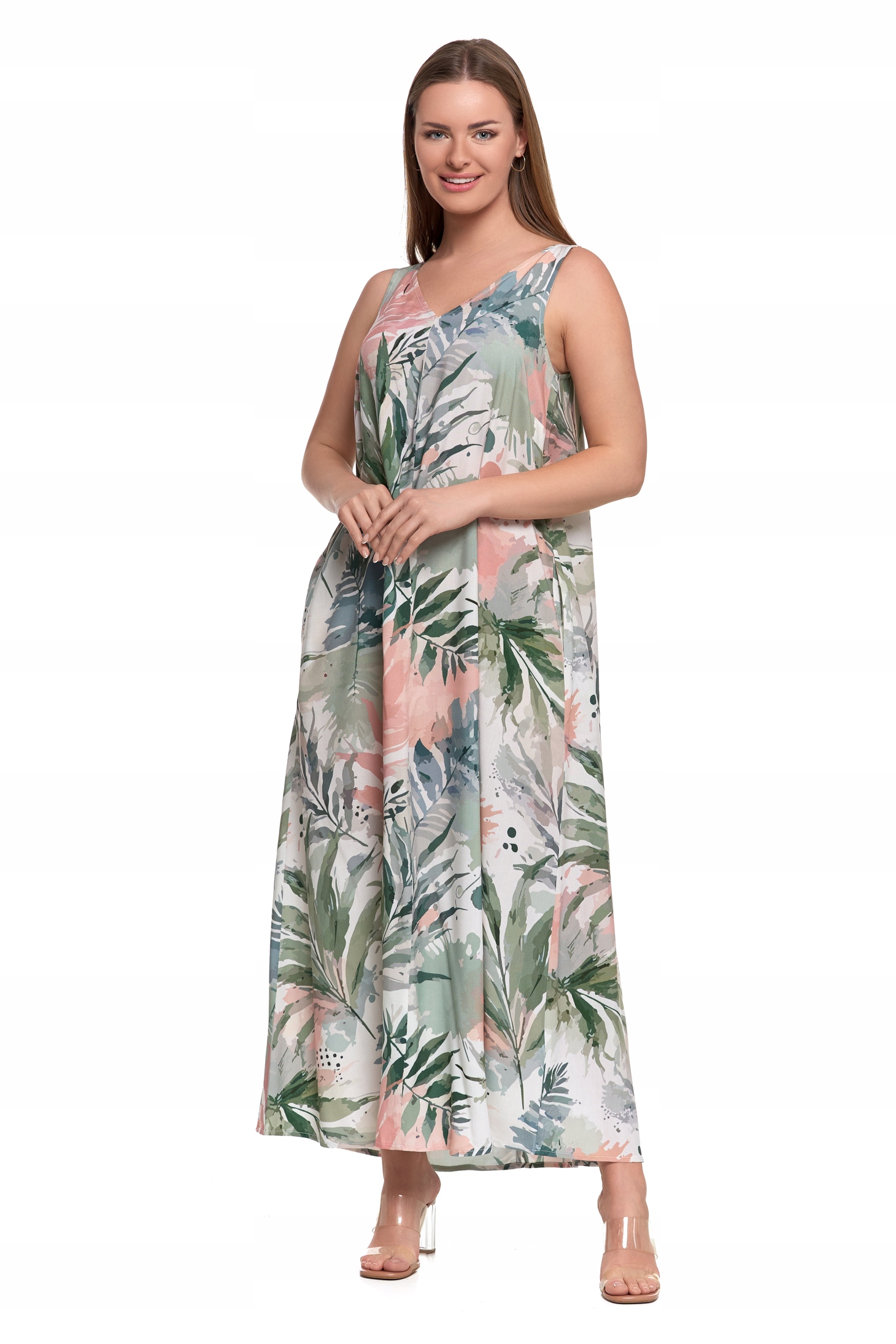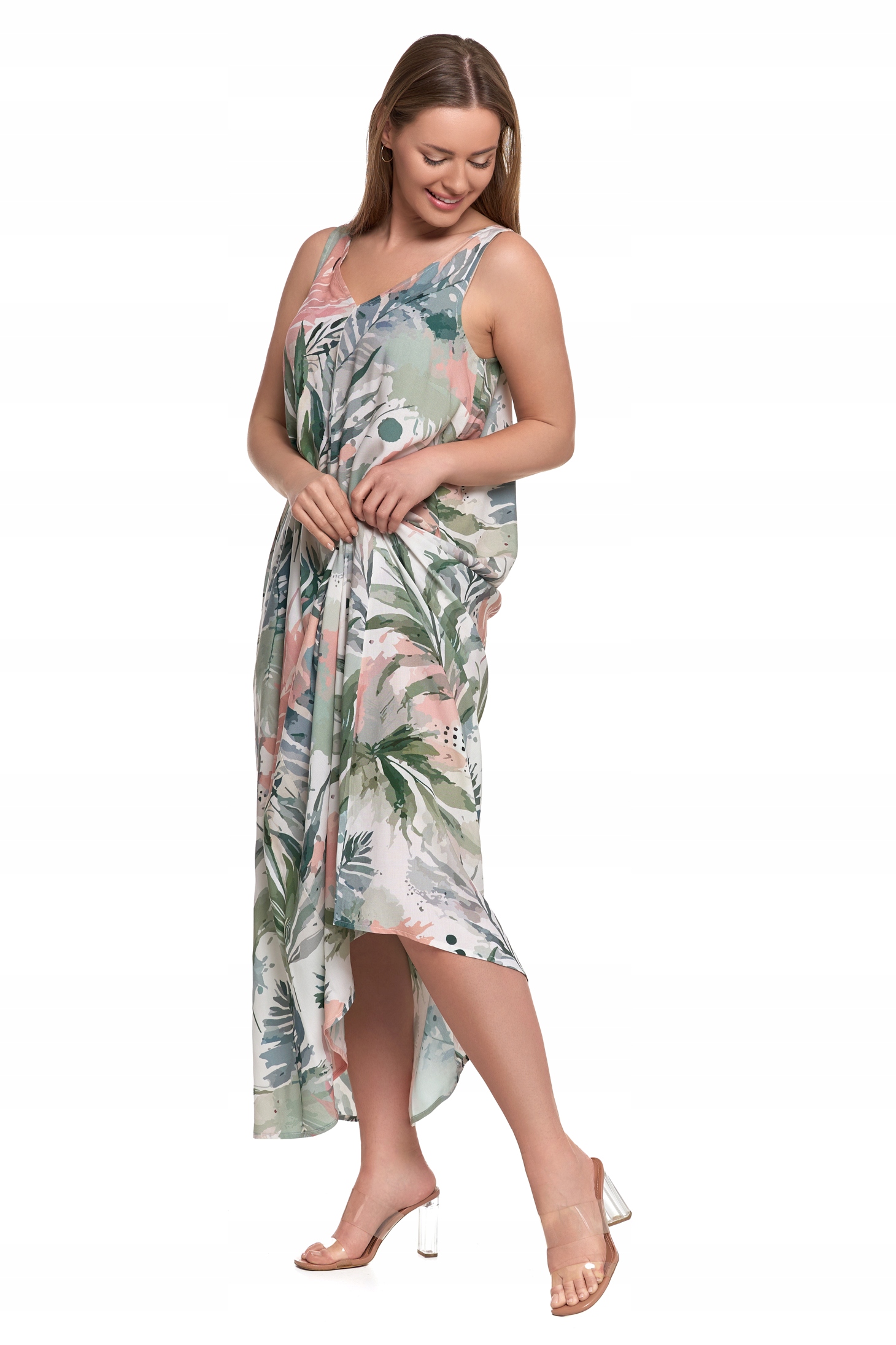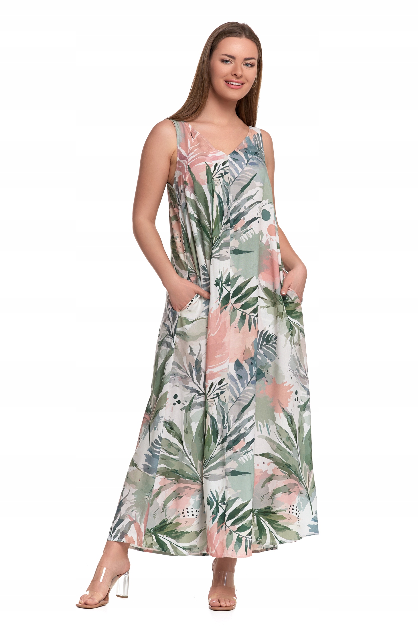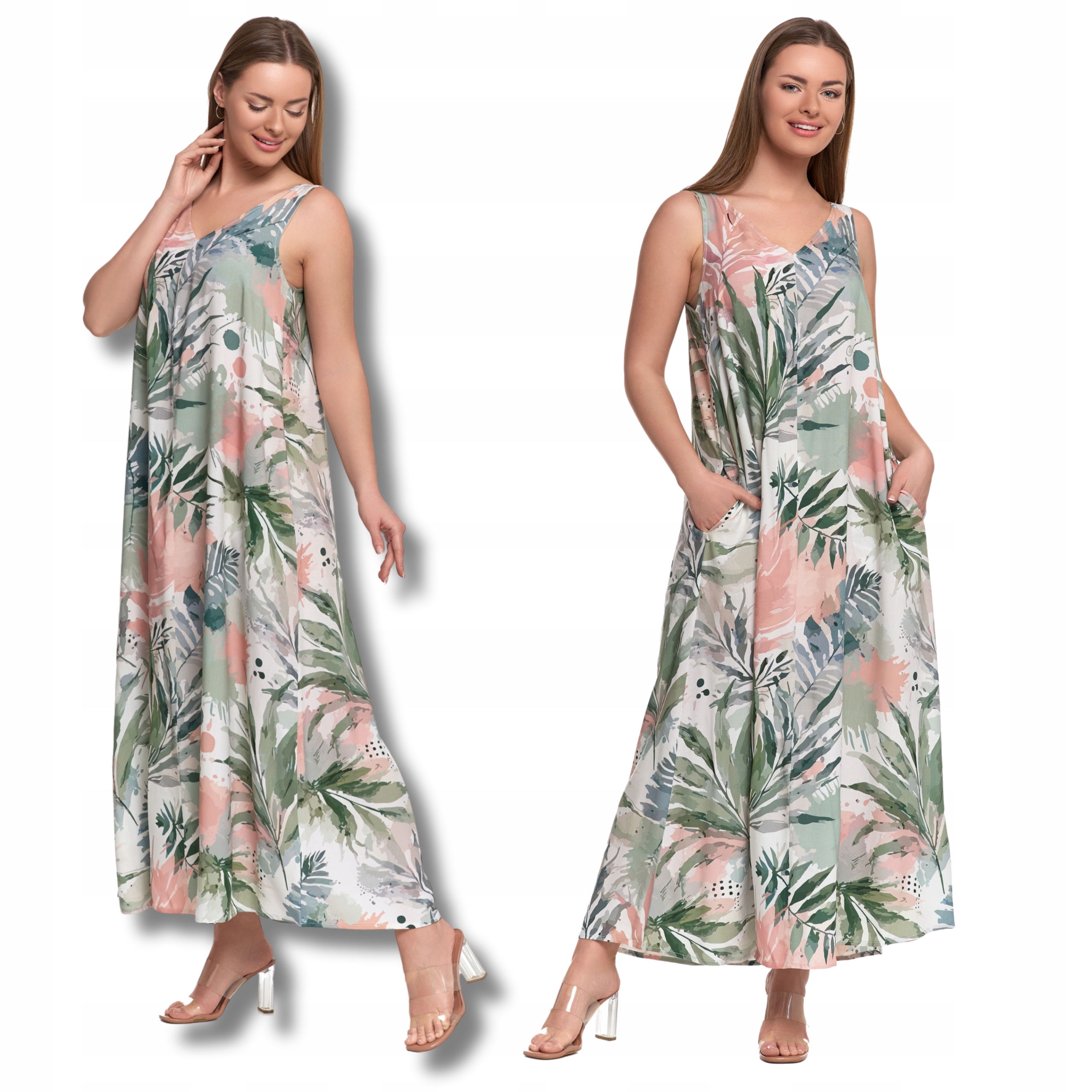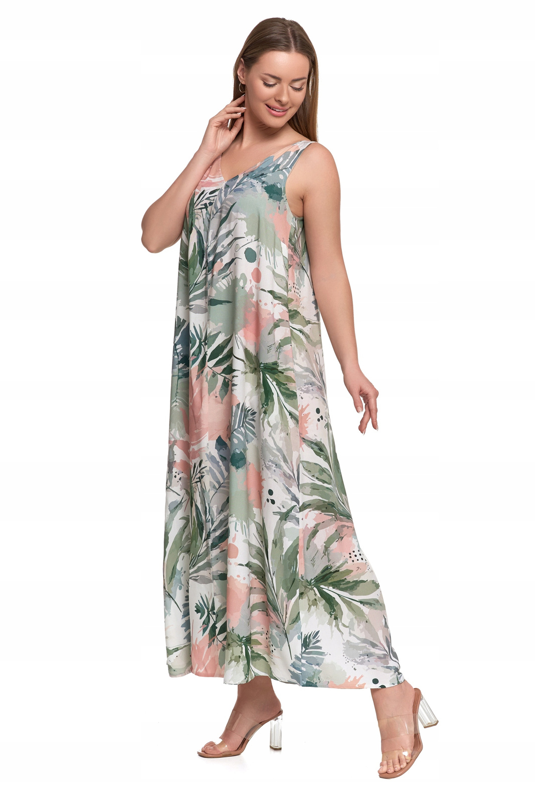 LETNIA SUKIENKA DAMSKA NA RAMIĄCZKACH MAXI LUŹNA KOLOROWA MORAJ