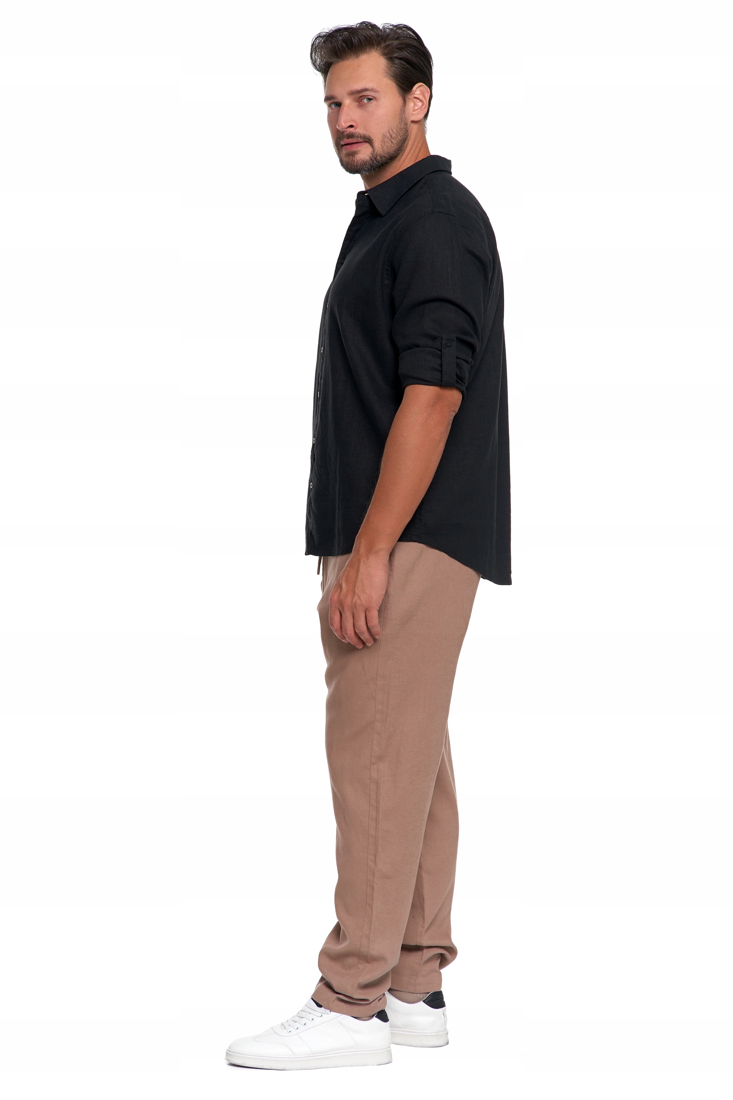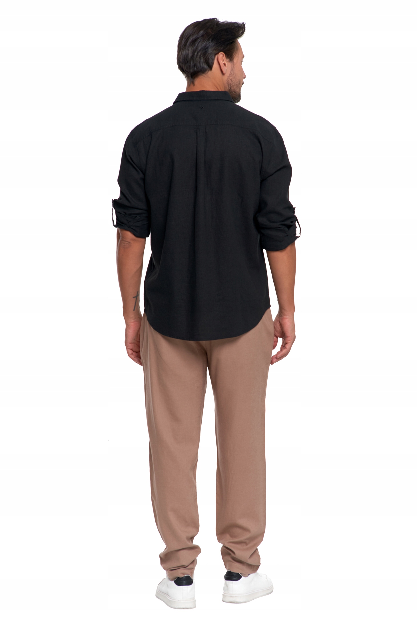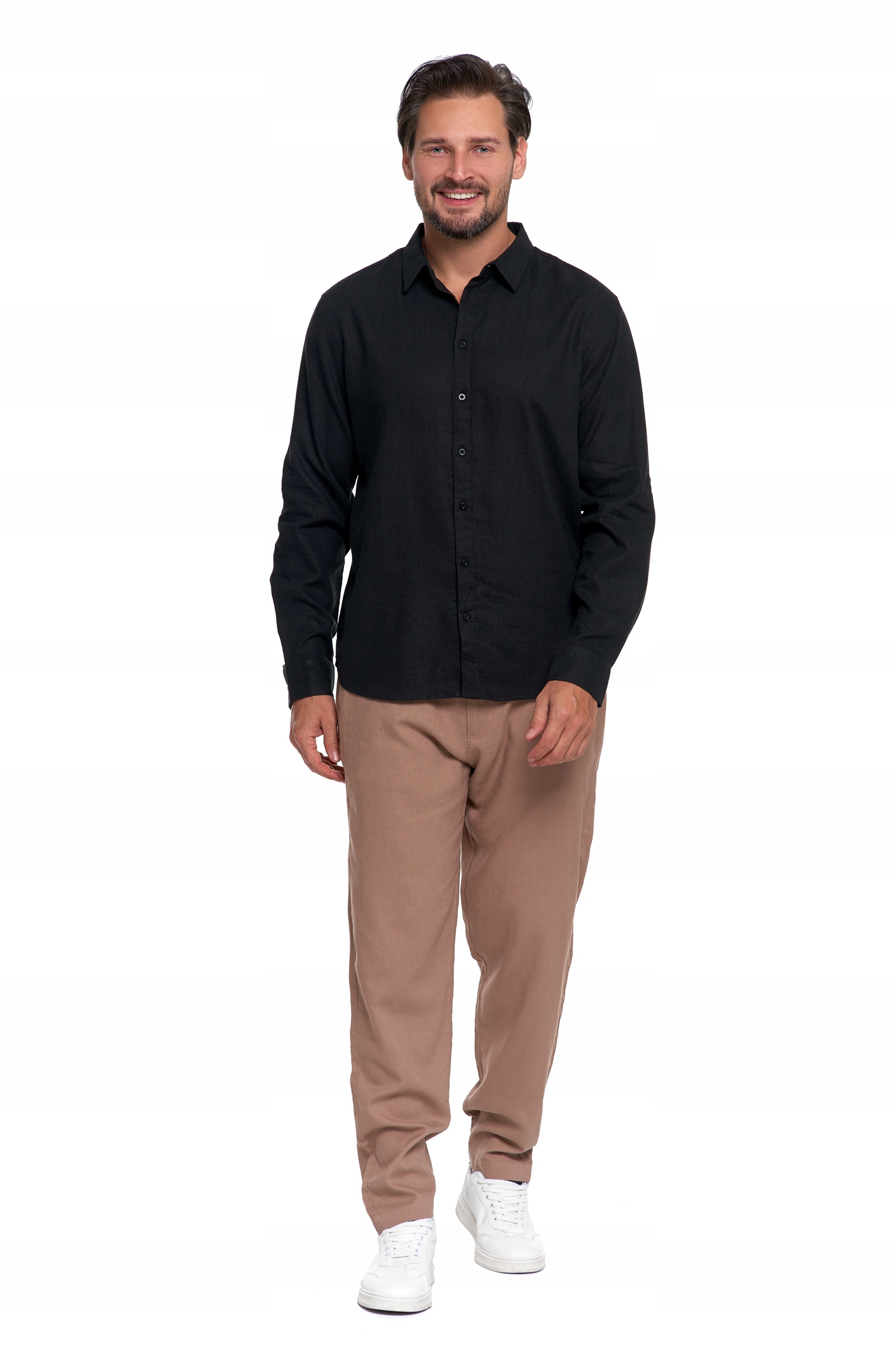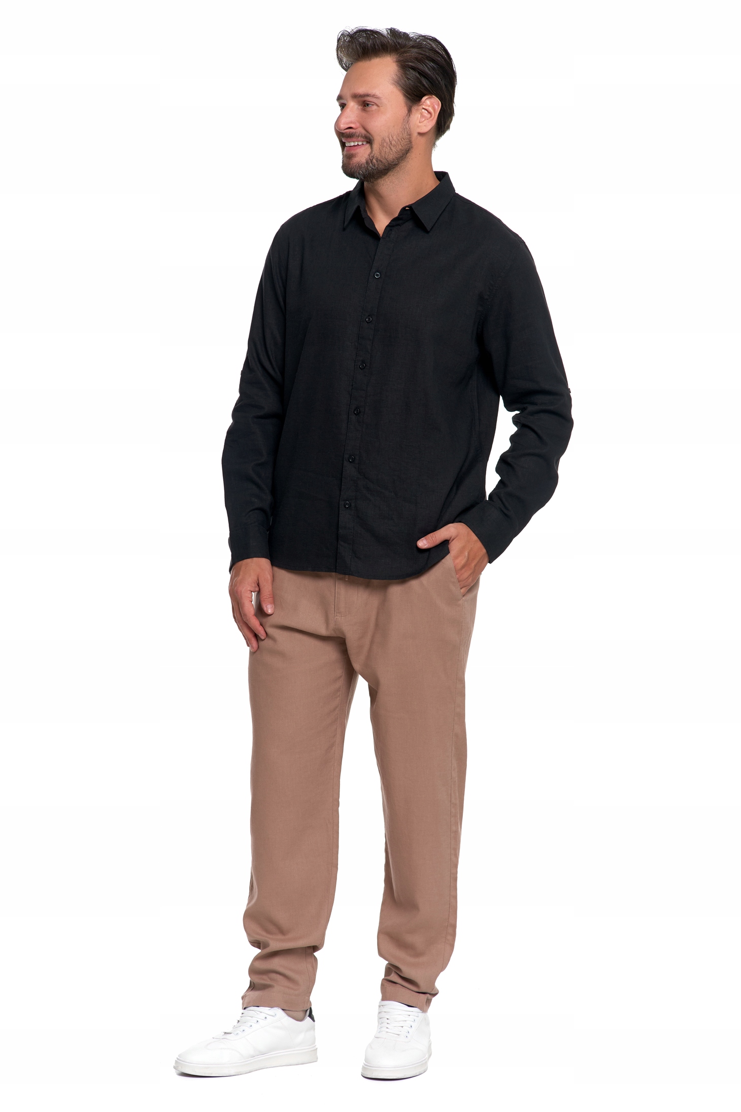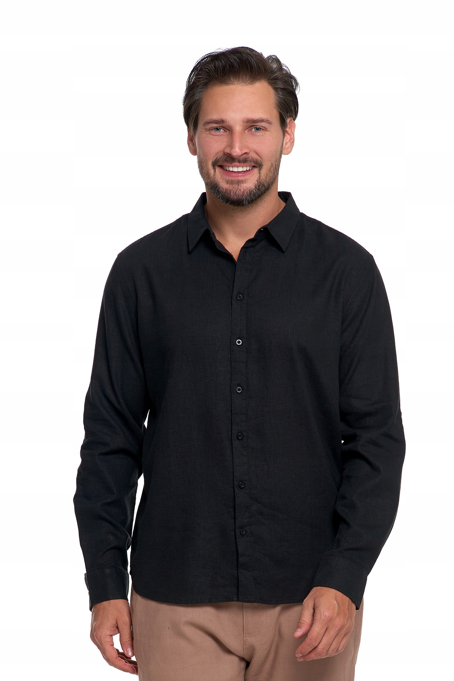 Lniana KOSZULA MĘSKA Czarna Elegancka Klasyczna Długi Rękaw Lekka MORAJ