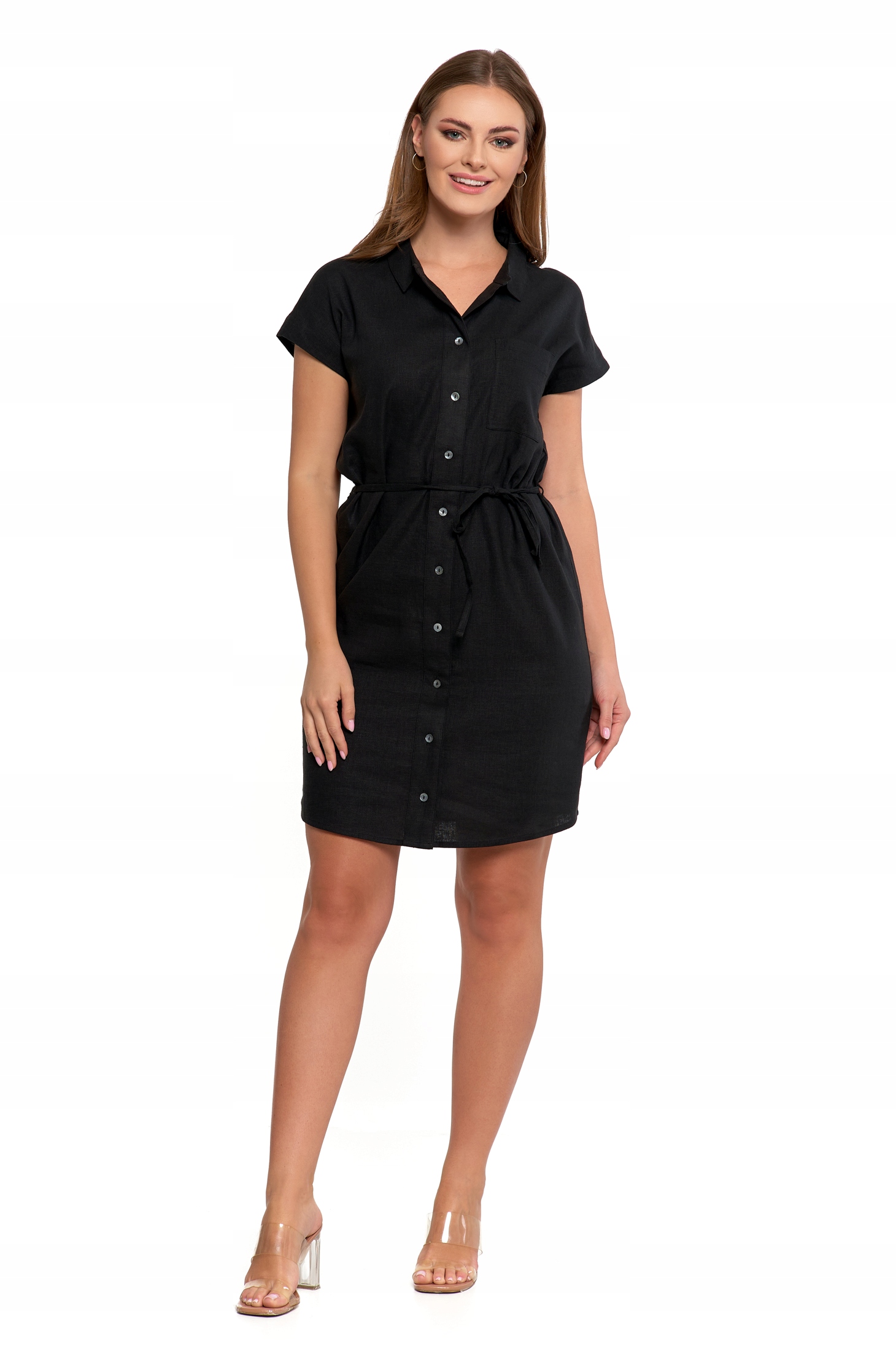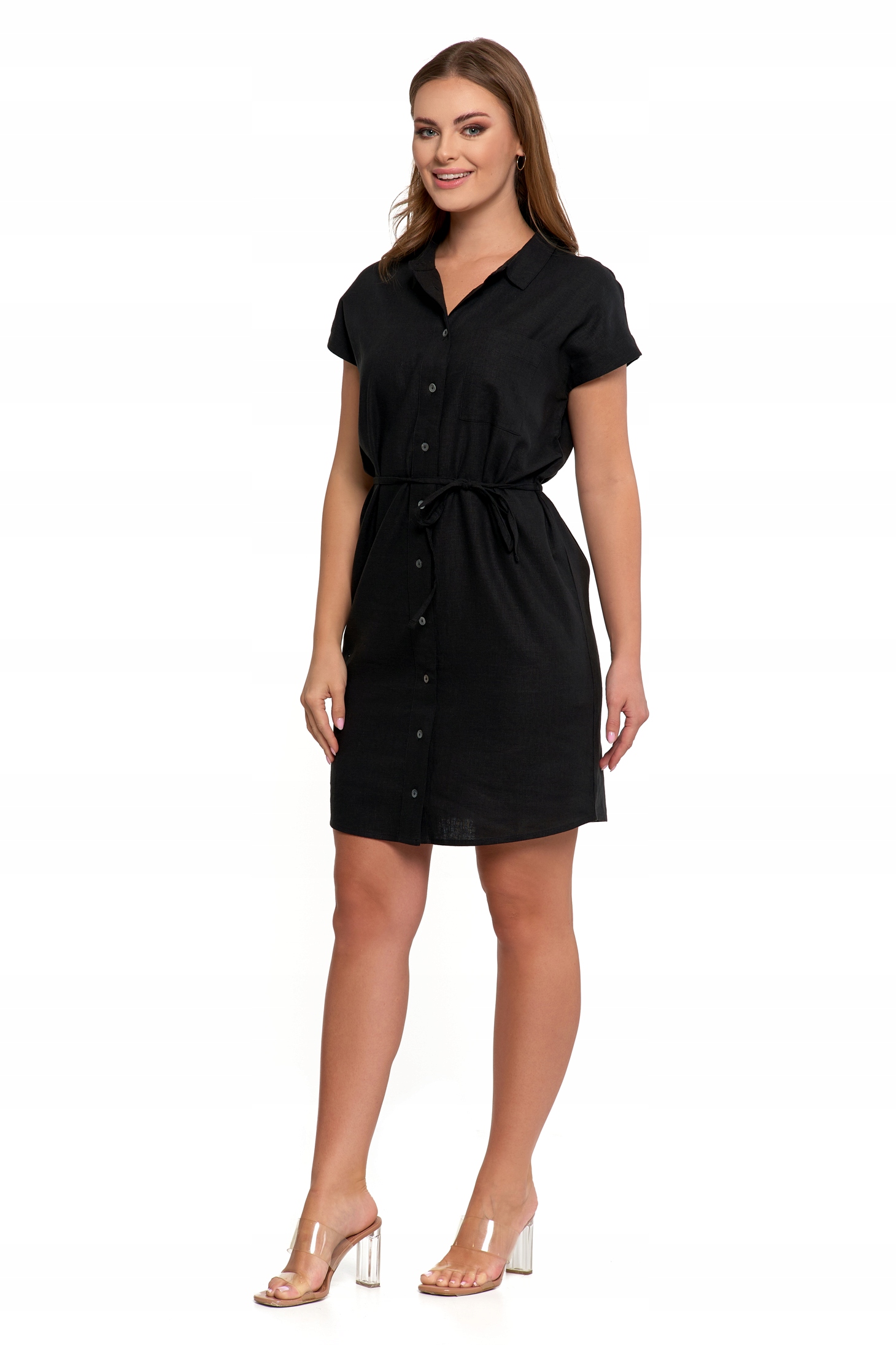 Lniana Szmizjerka SUKIENKA DAMSKA Elegancka Do Kolan Rozpinana MORAJ