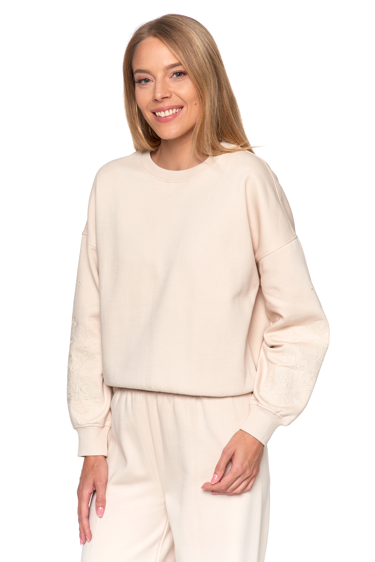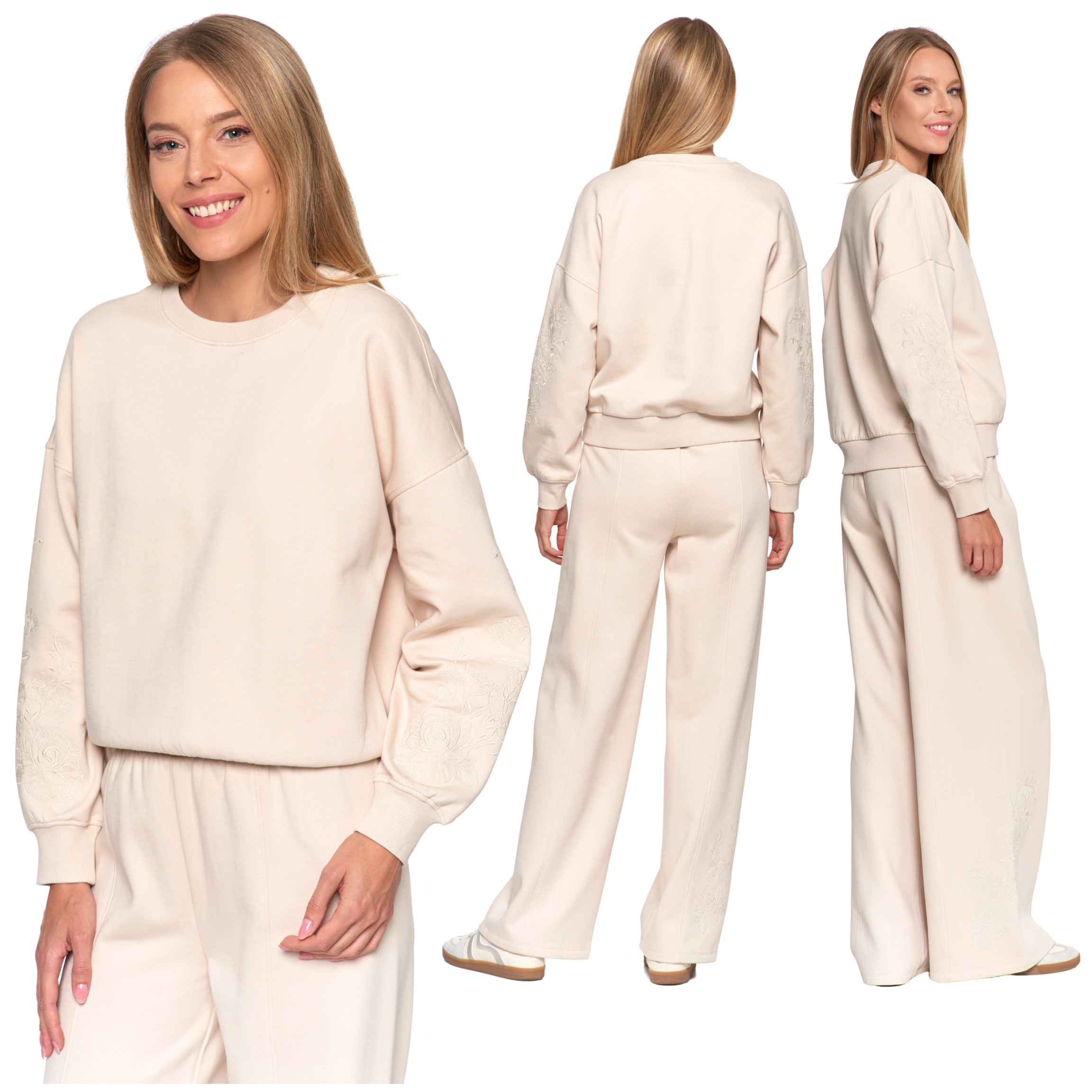 LUŹNA BLUZA DAMSKA DRESOWA OCIEPLANA CIEPŁA HAFT NA RĘKAWIE MORAJ